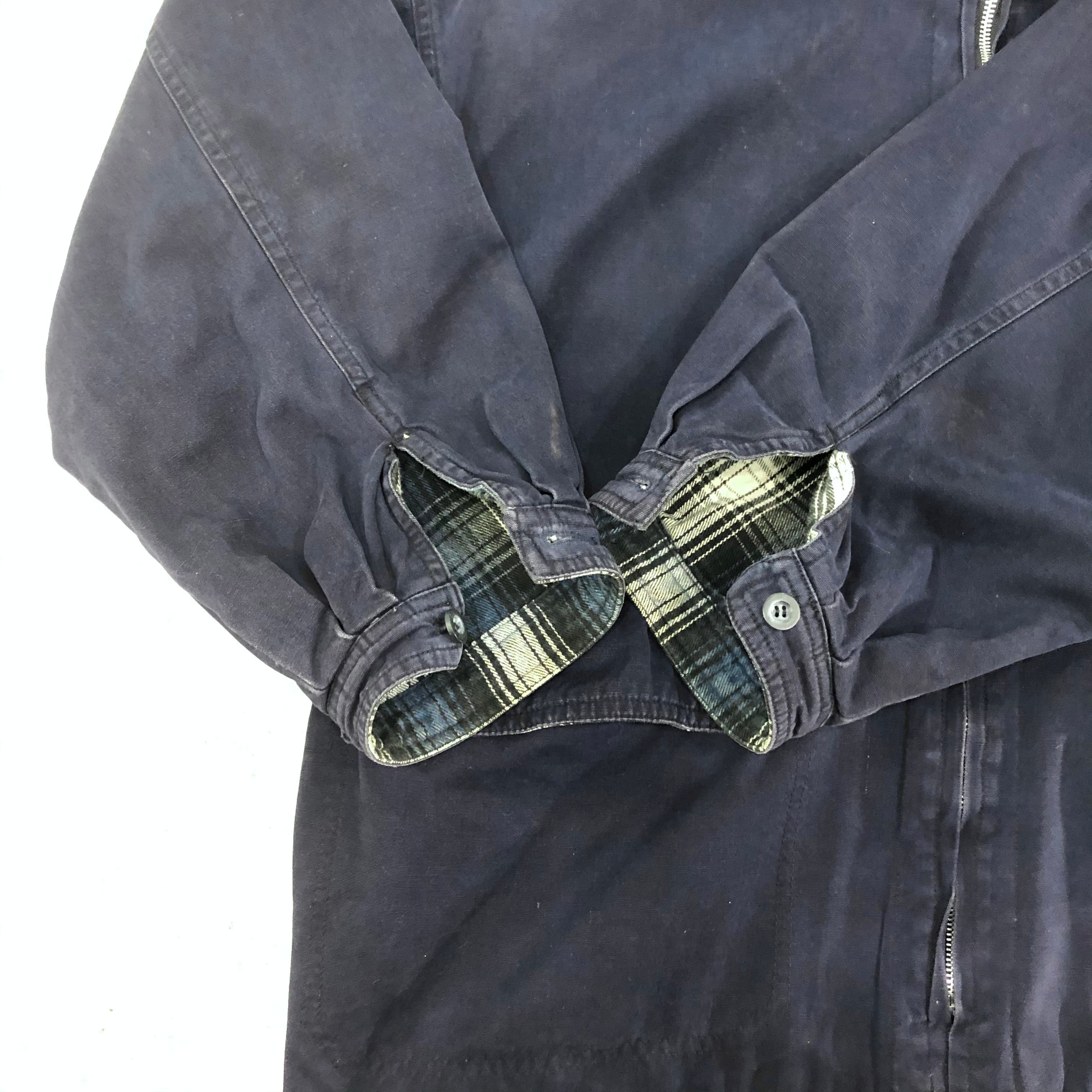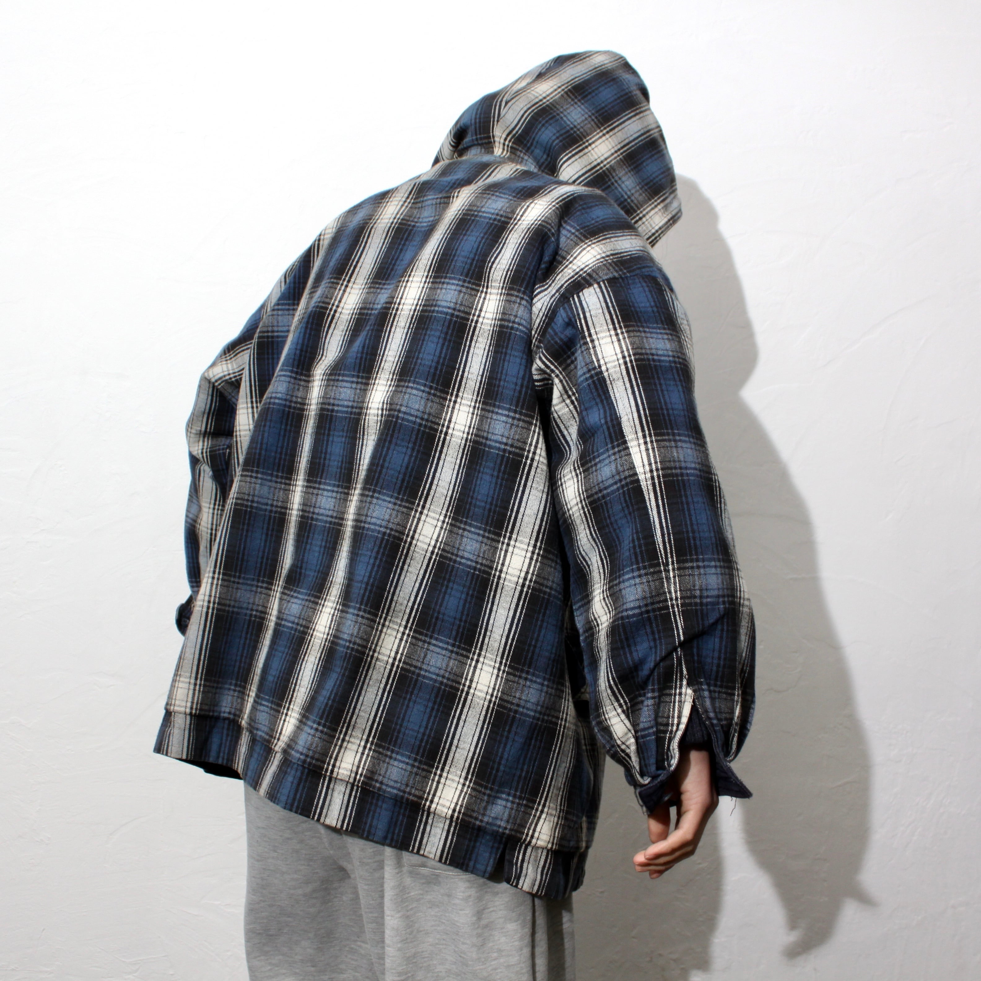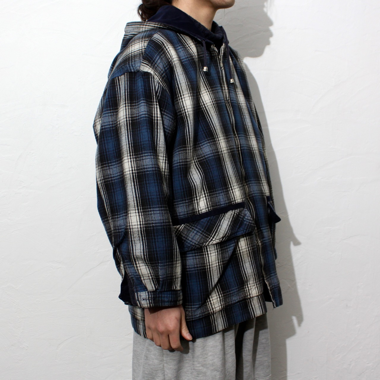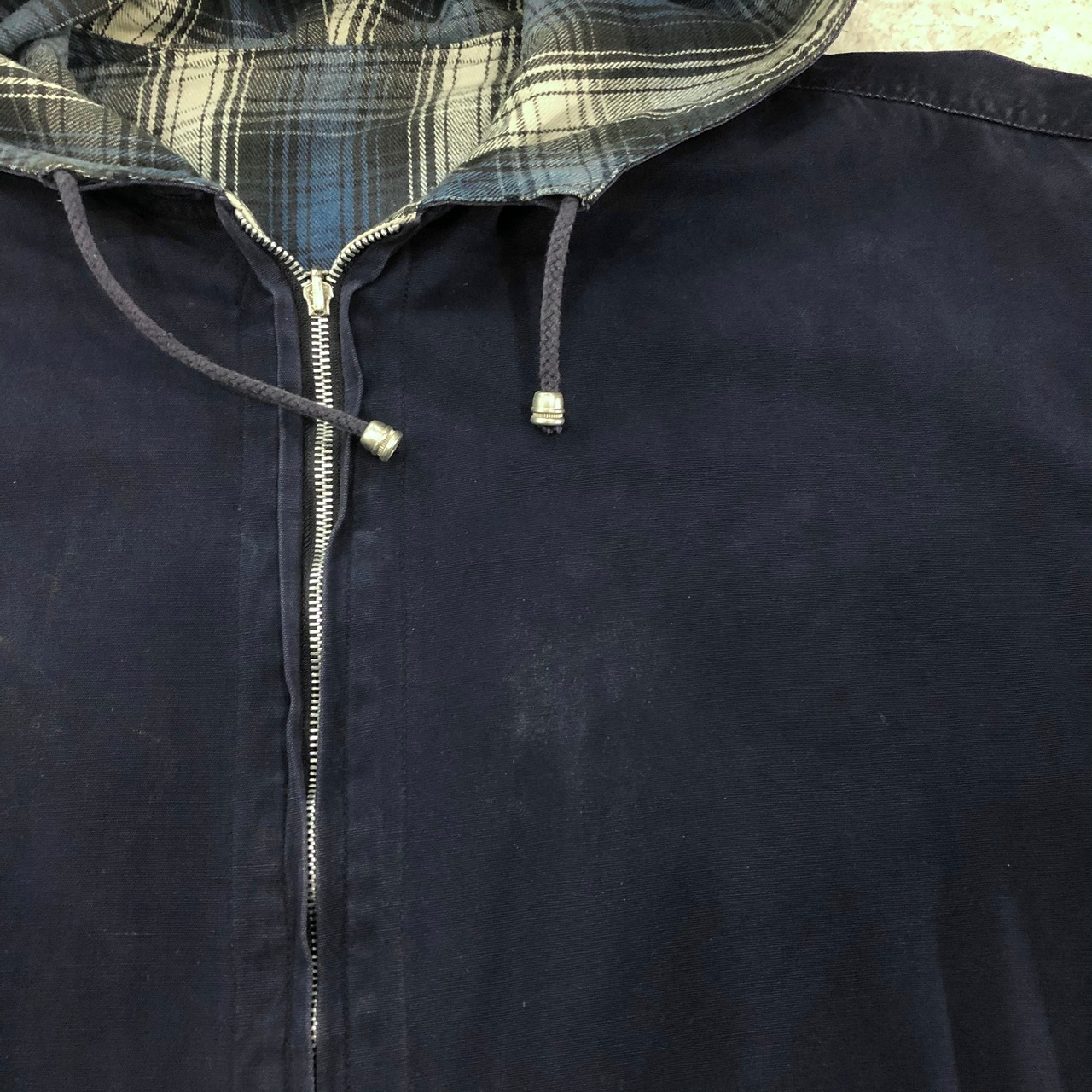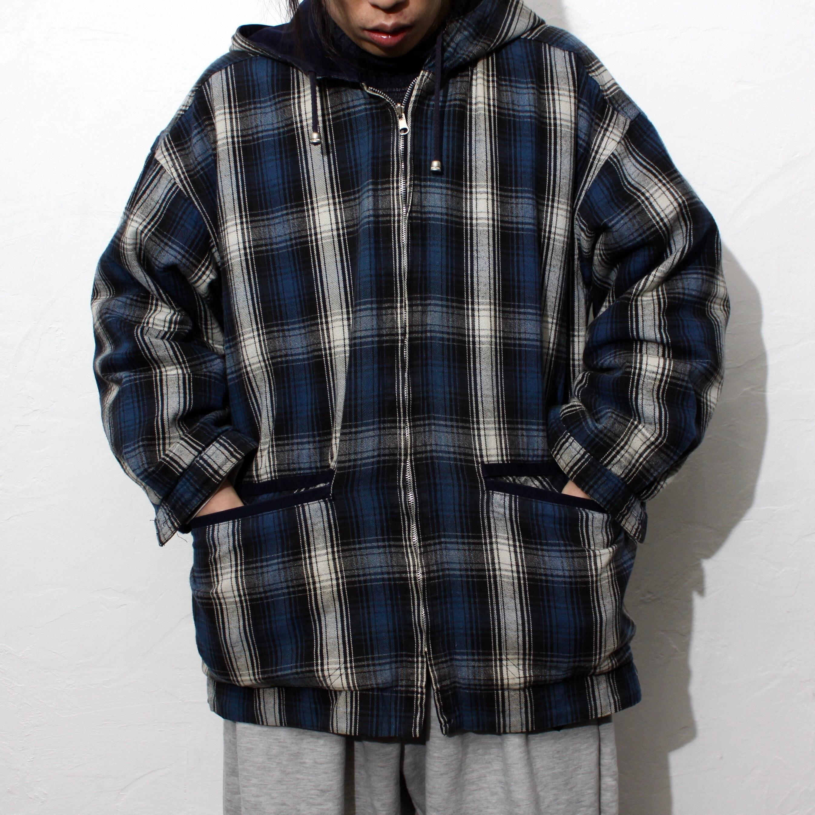 0856. 1990's cotton flannel parka ブルー チェック × ネイビー ジップパーカー フランネル リバーシブルジャケット 90s 90年代 vintage 古着