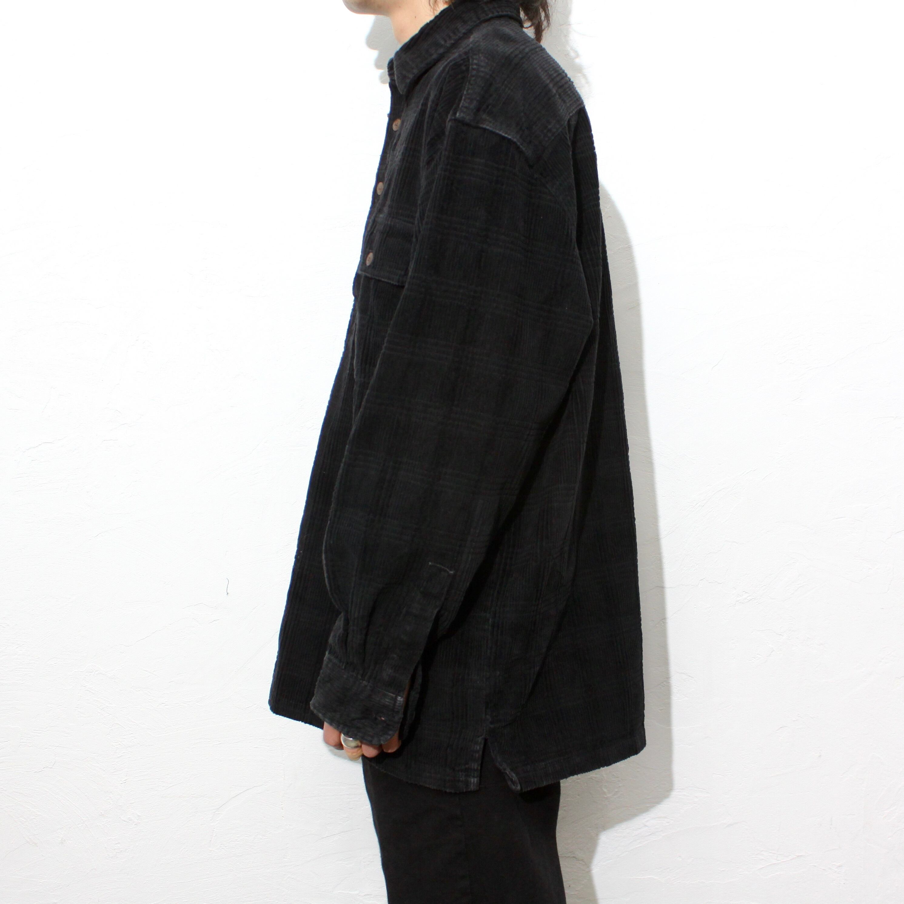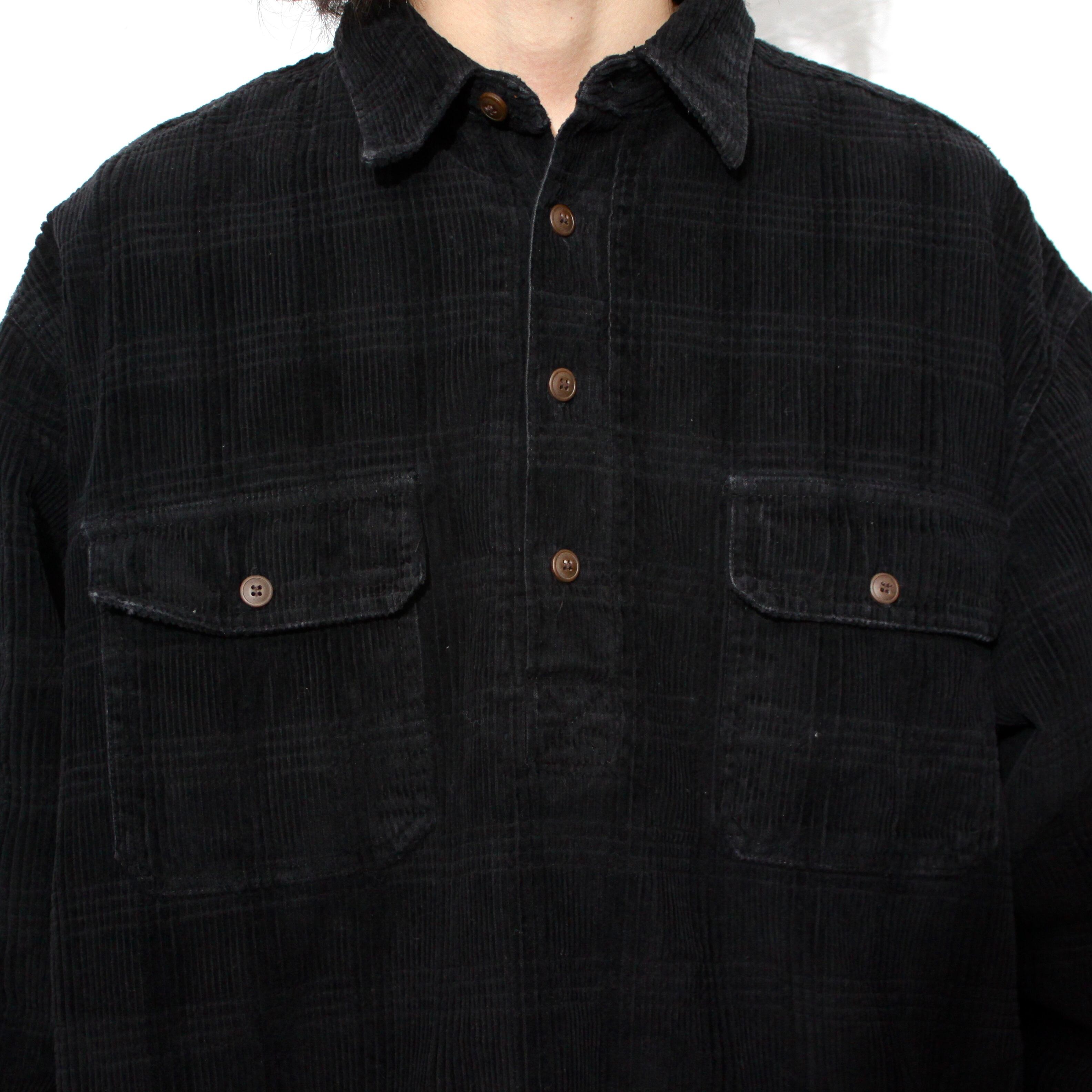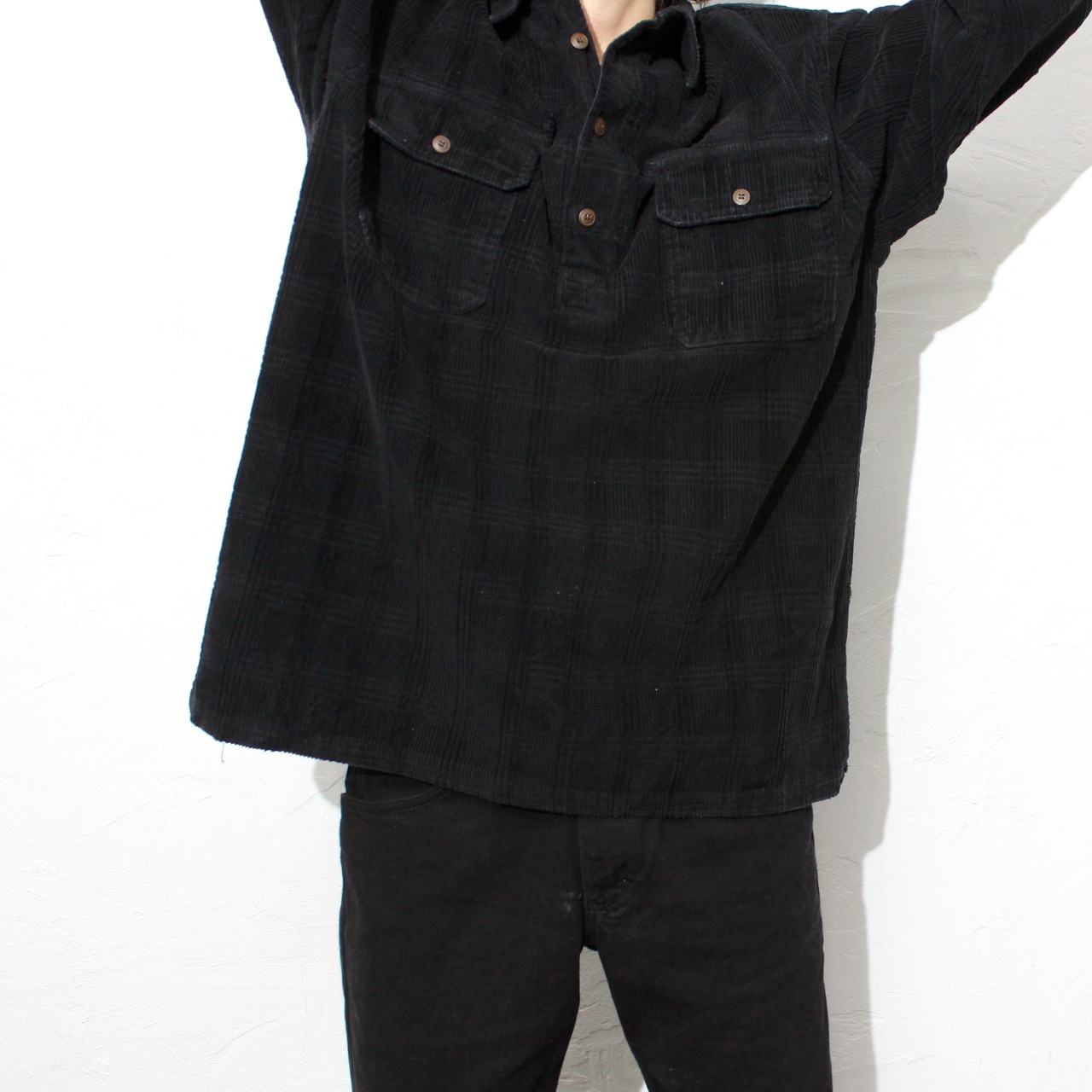 0854. 1990's checker corduroy pullover shirt ブラック コーデュロイ チェック柄 プルオーバー 長袖シャツ 90s 90年代 vintage 古着