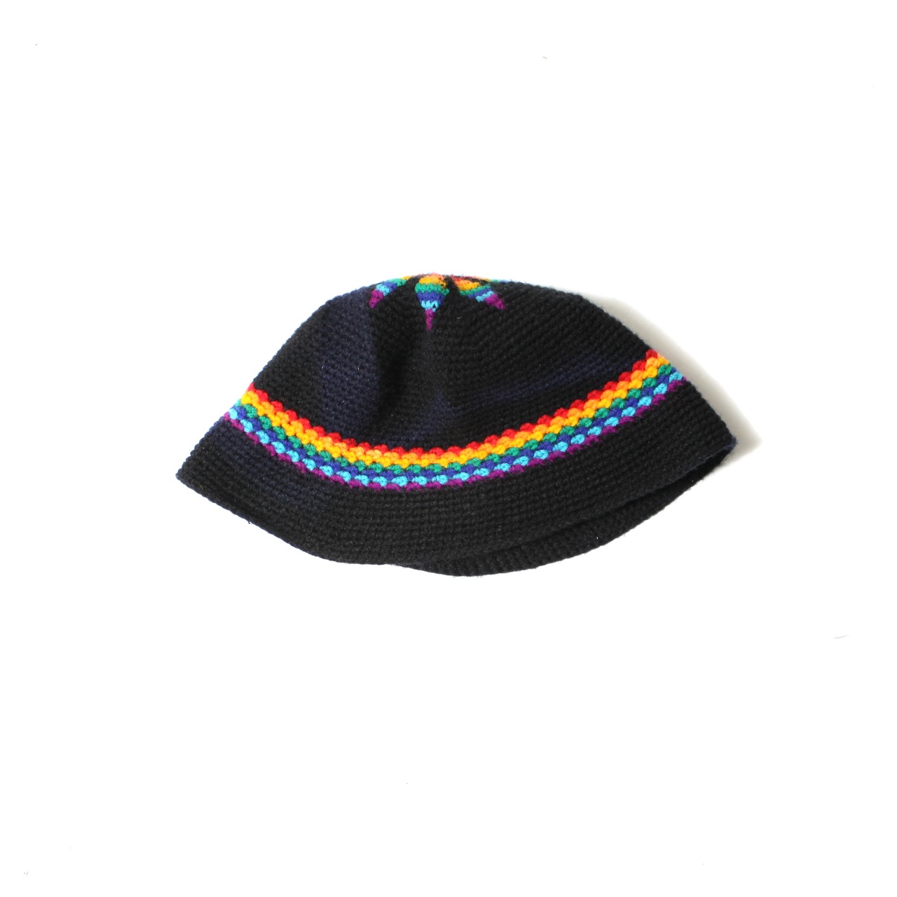 0876. hand knit hat ブラック × レインボー ハンドニットニット バケットハット 帽子 古着