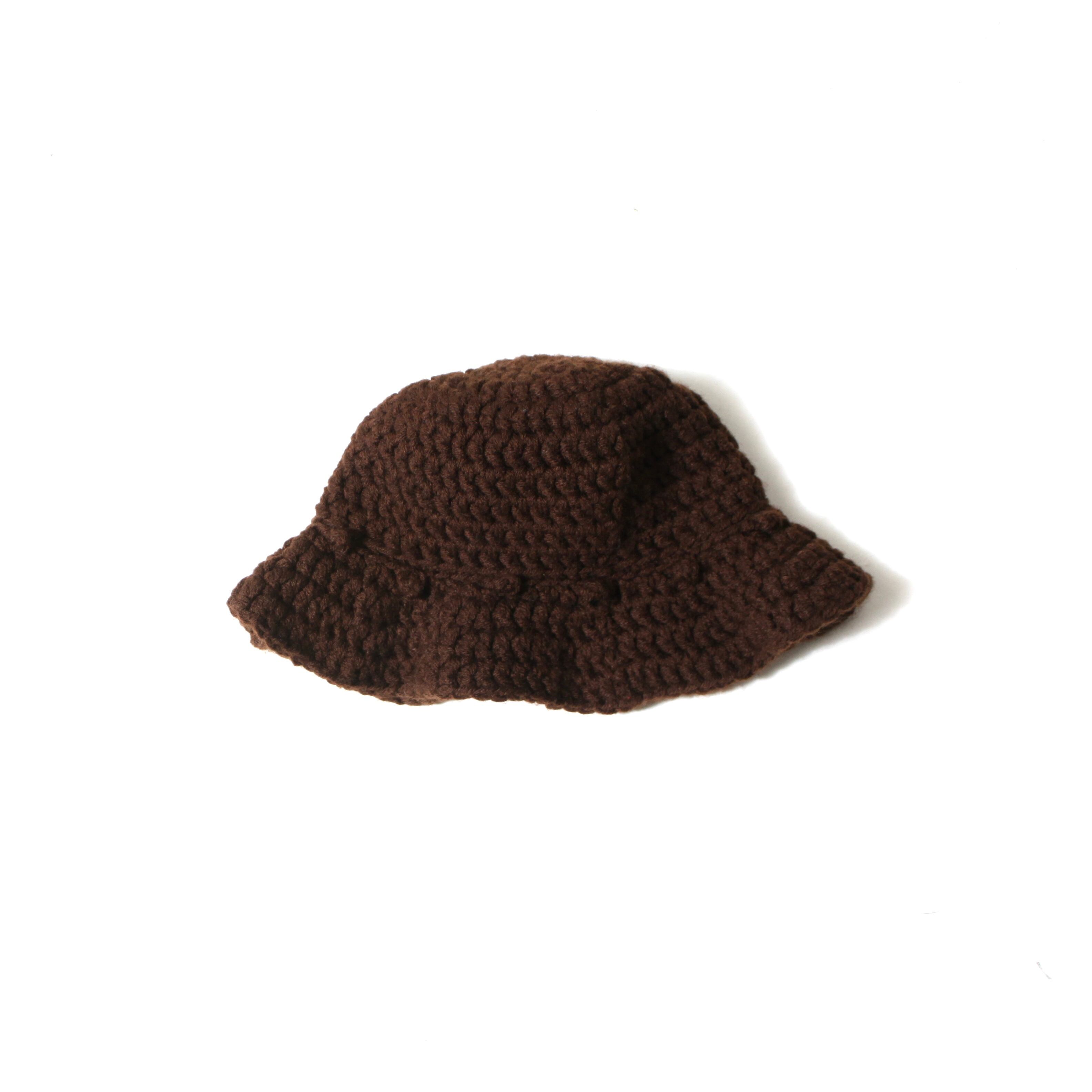 0877. knit hat ブラウン ハンドニット バケットハット 帽子 古着