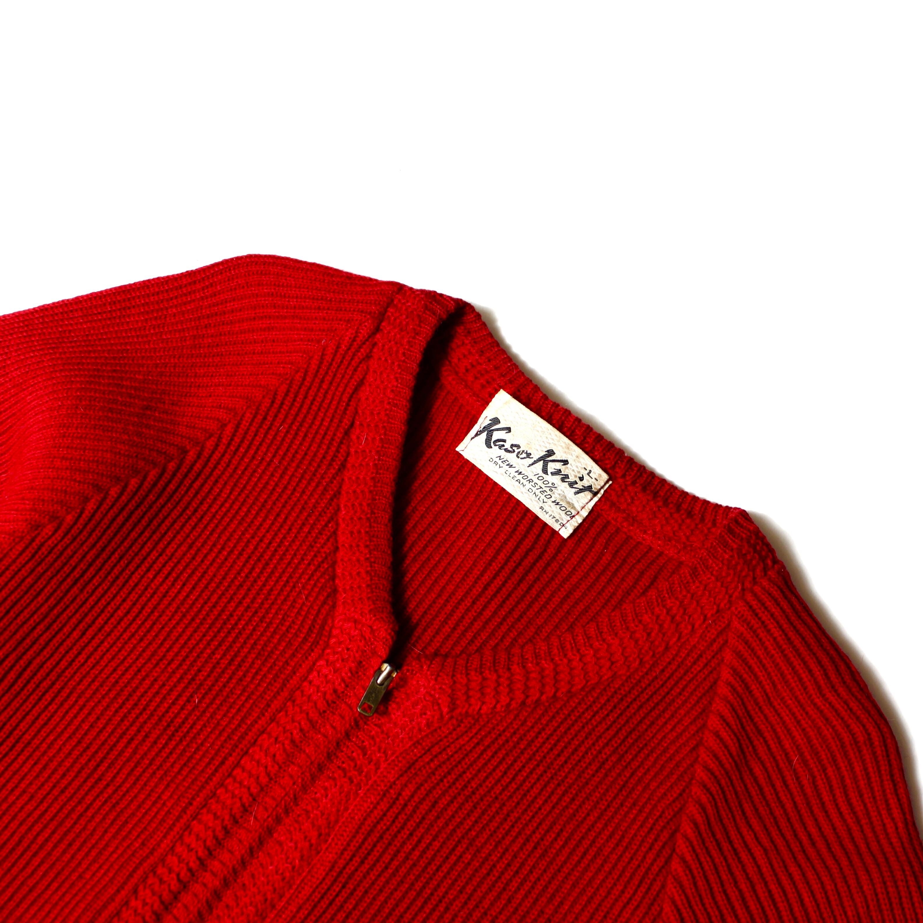 0883. 1960's Kaso Knit Zipup wool knit cardigan red 60s 60年代 カーディガン ジップアップ レッド vintage ヴィンテージ us古着 古着
