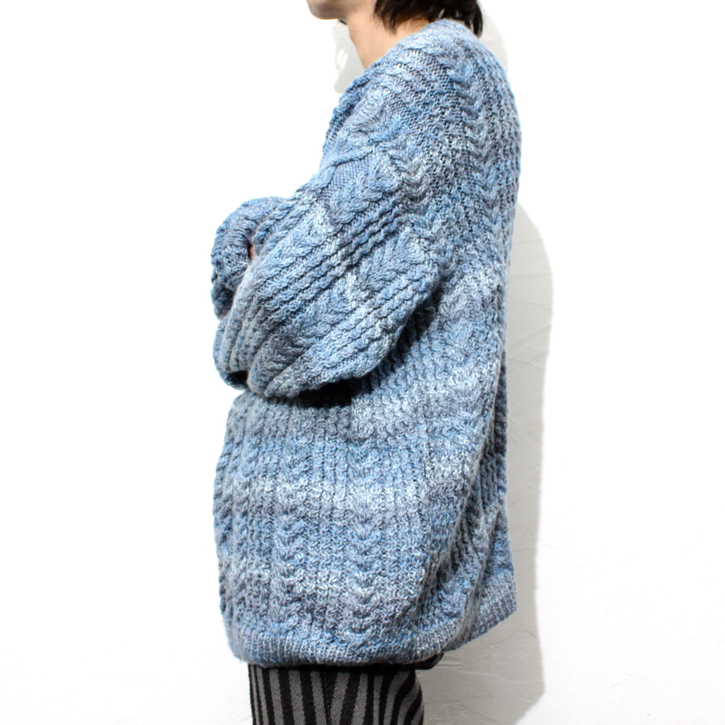 0895. Hand knitting alan sweater stripe ハンドニット アランセーター ストライプ vintage ヴィンテージ us古着 古着