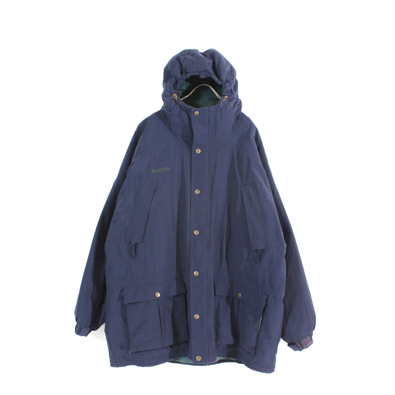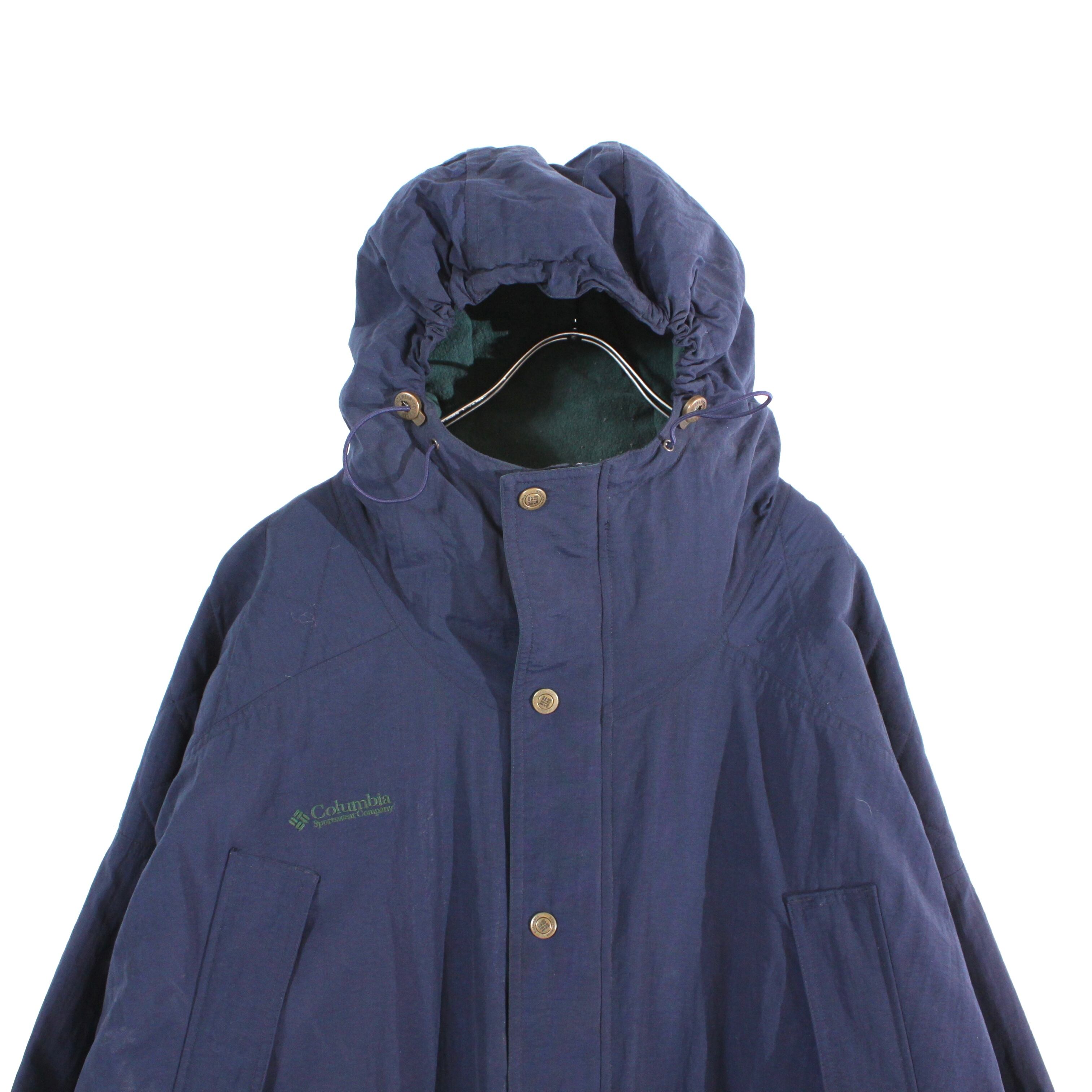 0902. columbia mountain parka XXL TALL ネイビー × グリーン ナイロンシェル マウンテンパーカ フリース コロンビア 古着