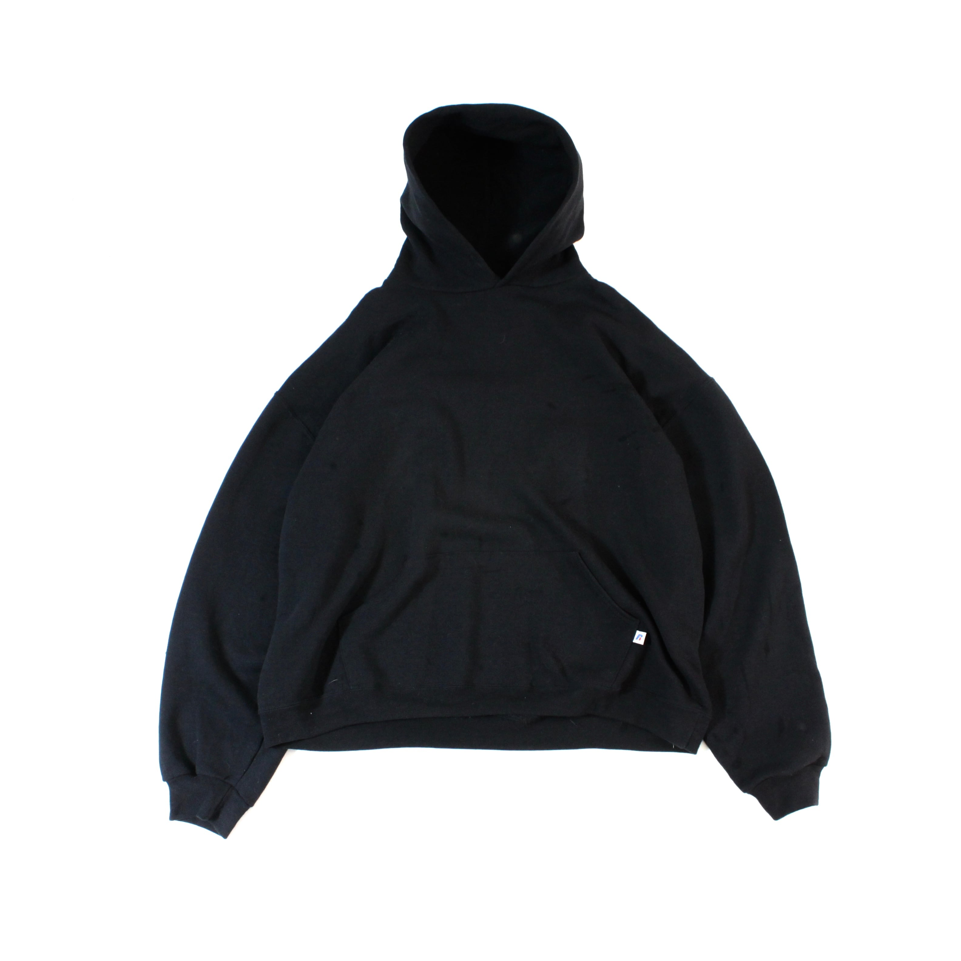 0904. 2000's cotton/polyester sweat blank hoodie ブラック コットンポリ スウェット パーカー 無地 ラッセル 古着