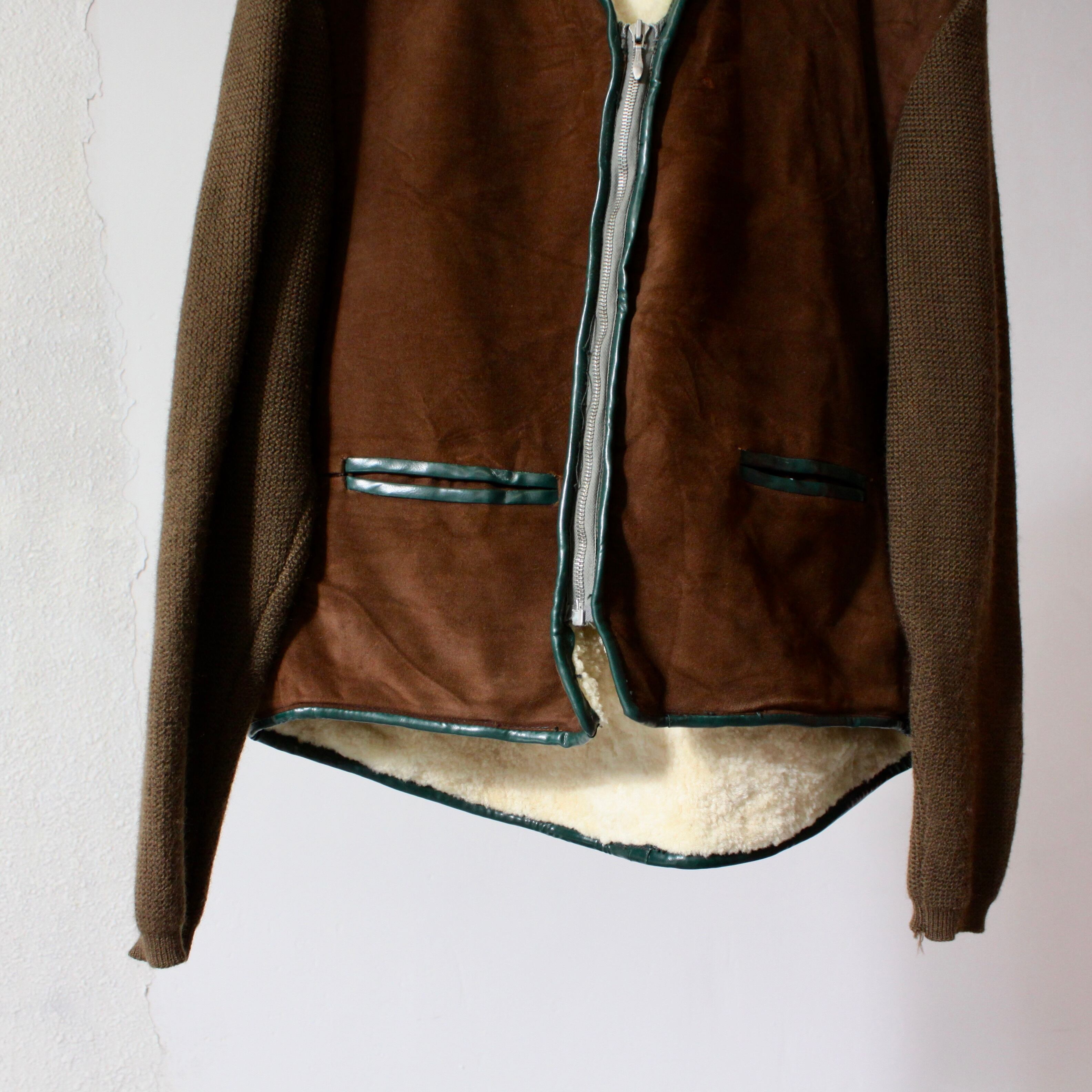 0924. euro work cardigan ブラウン モールスキン エンジニアジャケット ニット カーディガン 切替 vintage ユーロ古着