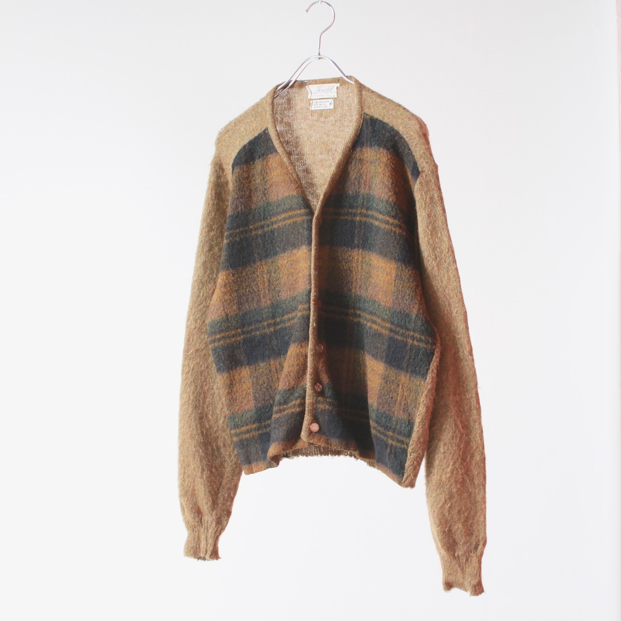 0935. 1960's Jensild Plaid mohair knit cardigan 60s 60年代 モヘア チェック カーディガン vintage ヴィンテージ us古着 古着