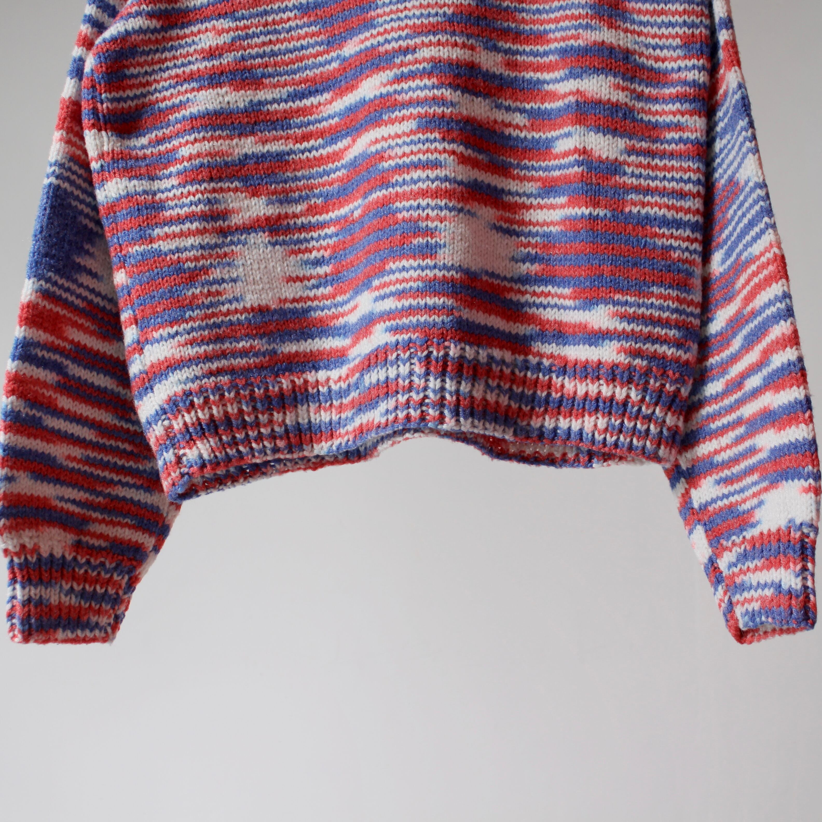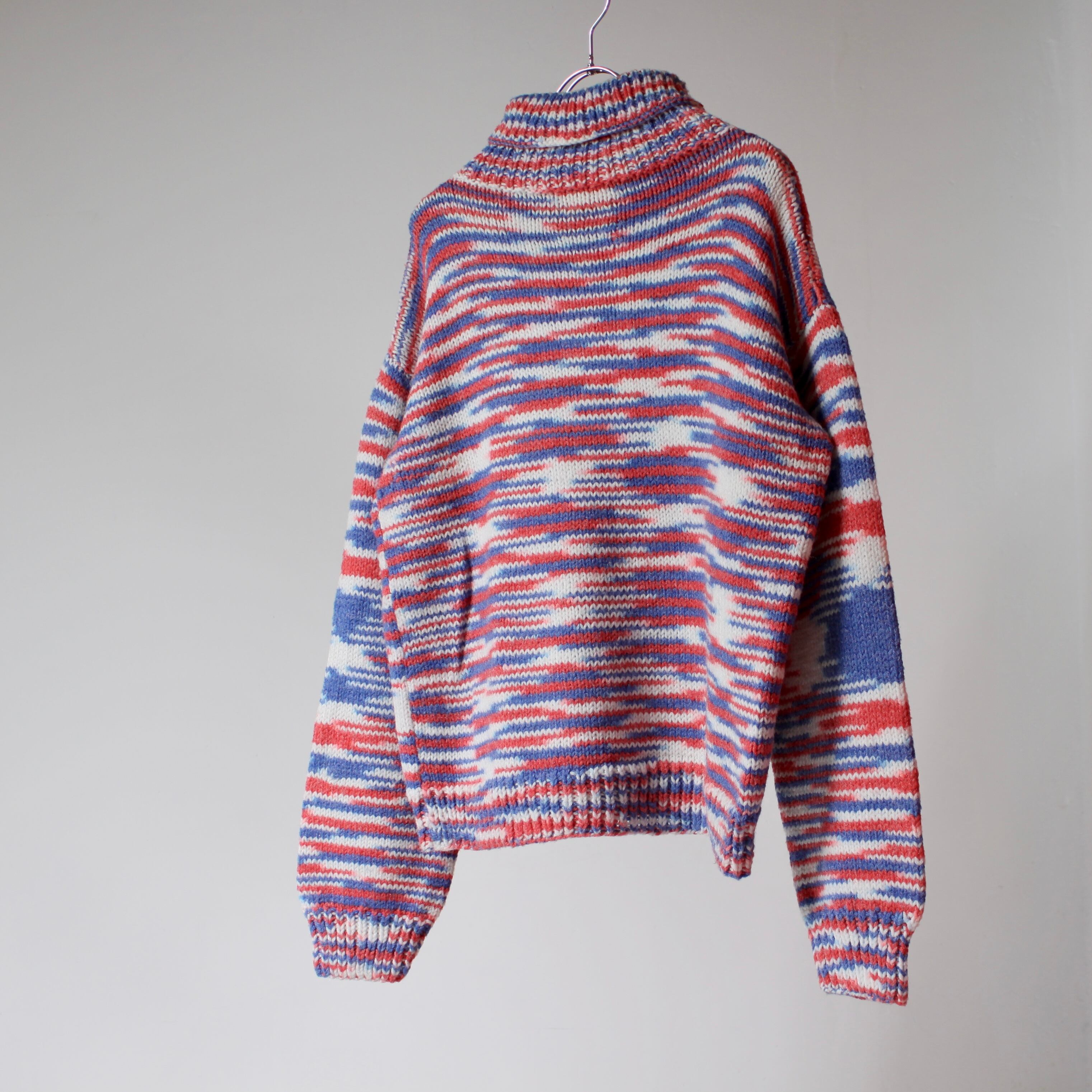 0953. 1960's Turtleneck handknit sweater mulch stripe 60s 60年代 タートルネック アクリルニット ボーダー vintage ヴィンテージ us古着 古着