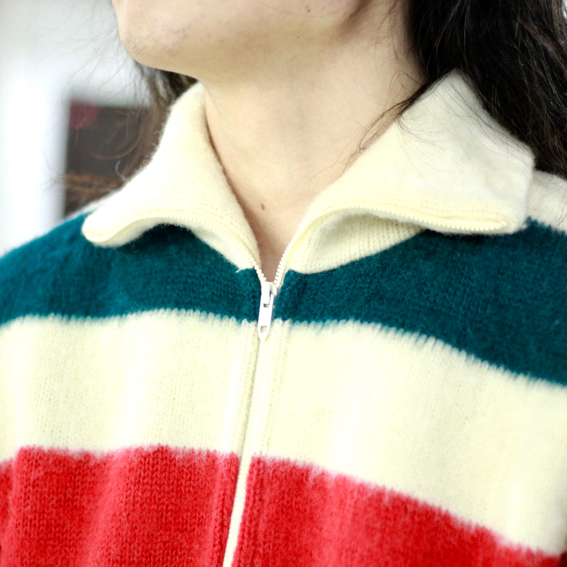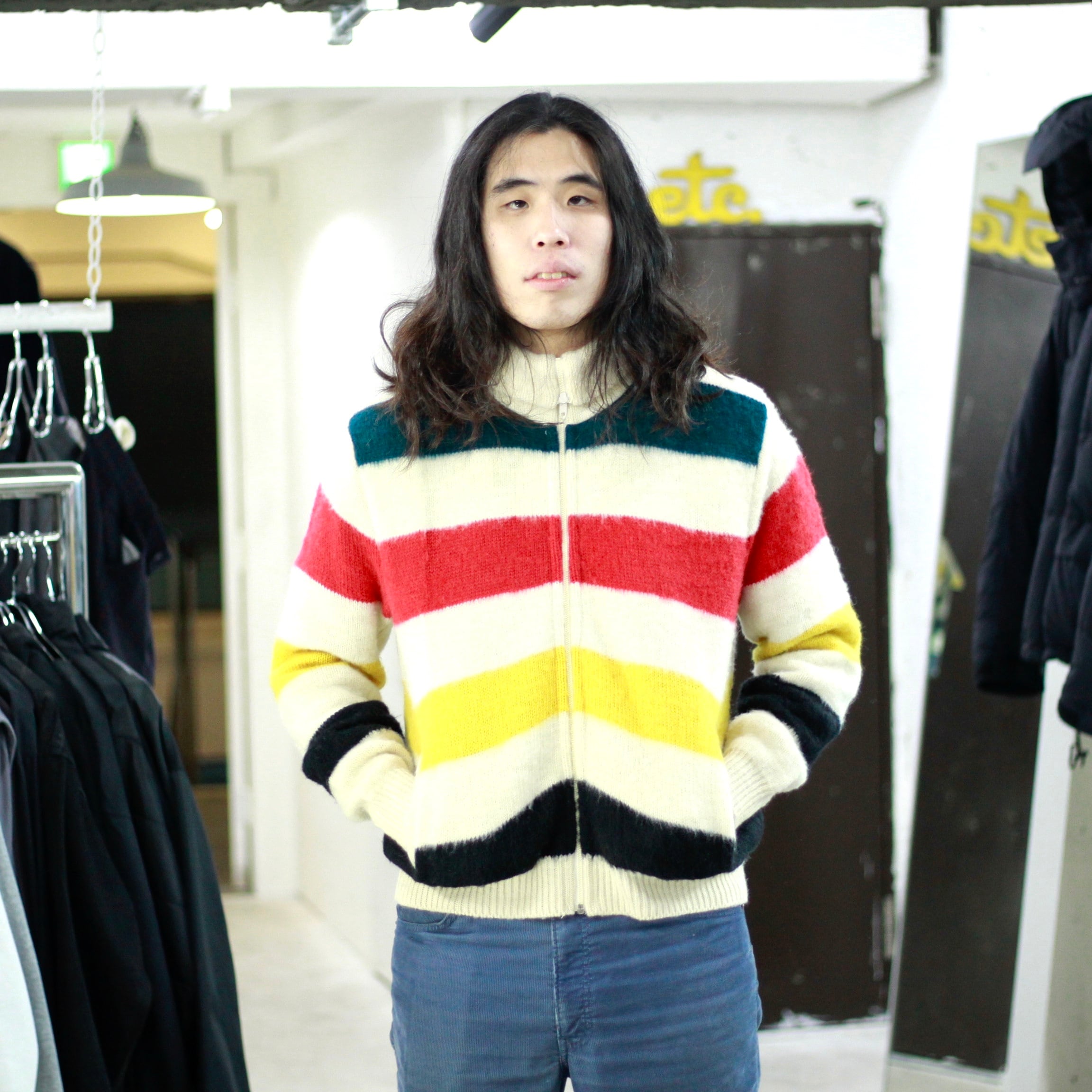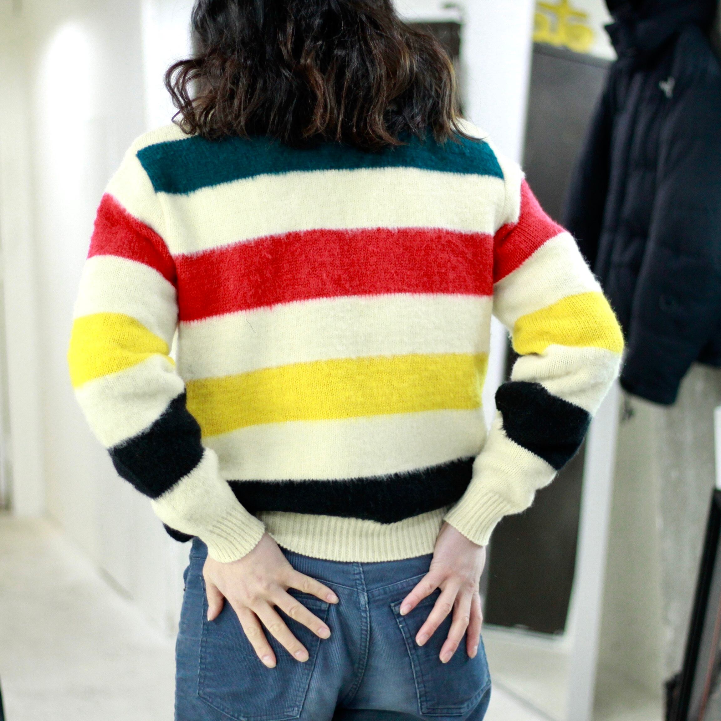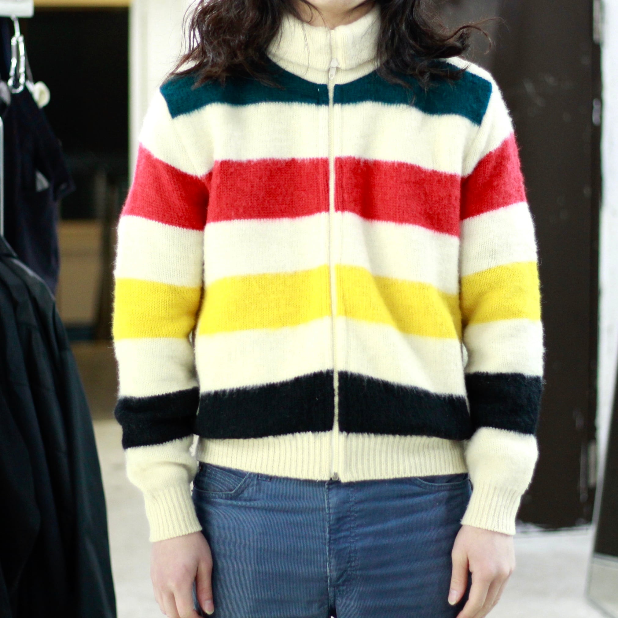 0960. 1980's l.l.bean hudson's bay stripe knit jacket ハドソンズベイ マルチストライプ ウールジャケット ドライバーズニット エルエルビーン アメリカ製 80s 80年代 vintage 古着