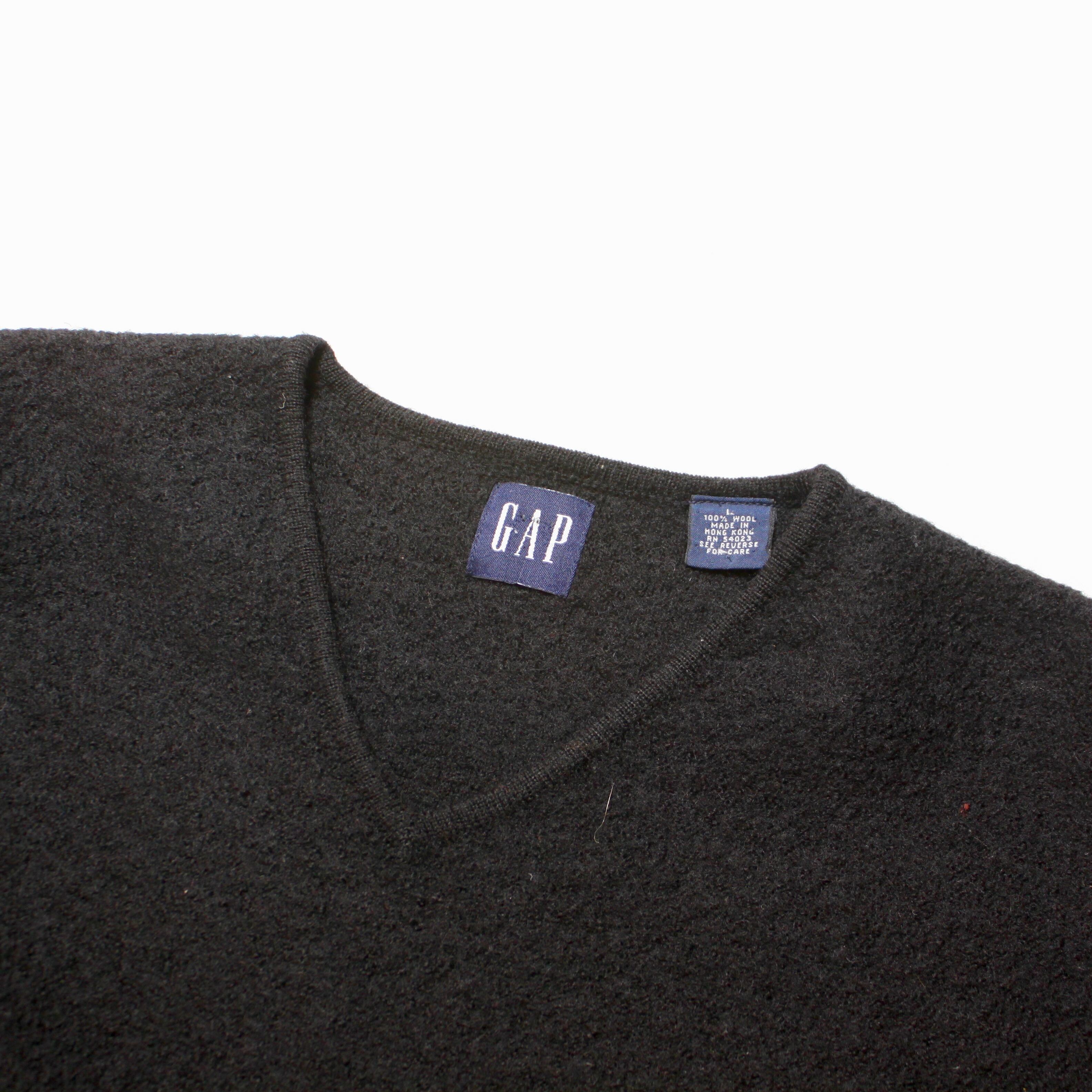 0966. 1990's gap boiled wool knit ブラック Vネック ウールニットセーター オールドギャップ 90s 90年代 vintage 古着