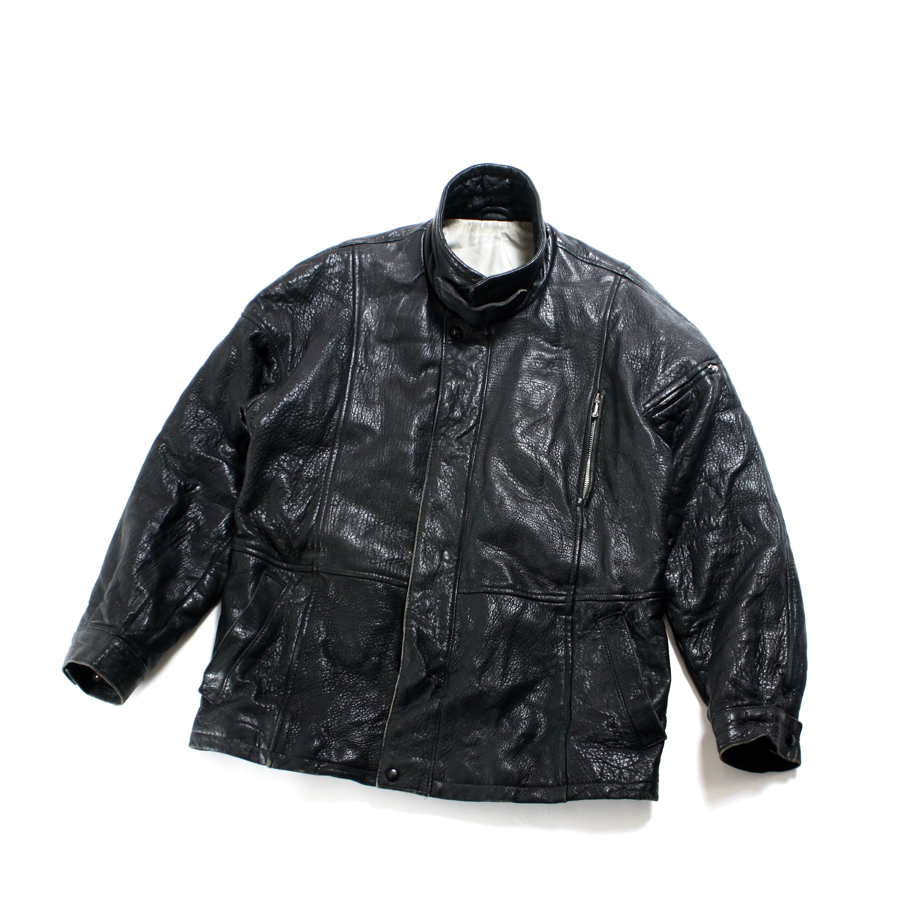 0974. euro leather coach jacket ブラック シボレザー コート コーチジャケット vintage ユーロ古着