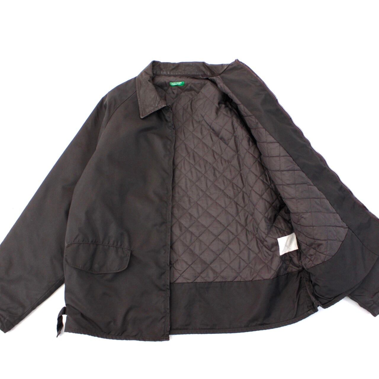 0985. early 2000's nylon golf jacket ブラウン 高密度ナイロン ゴルフジャケット スイングトップ レザー襟 ベネトン united colors of benetton euro vintage ユーロ古着