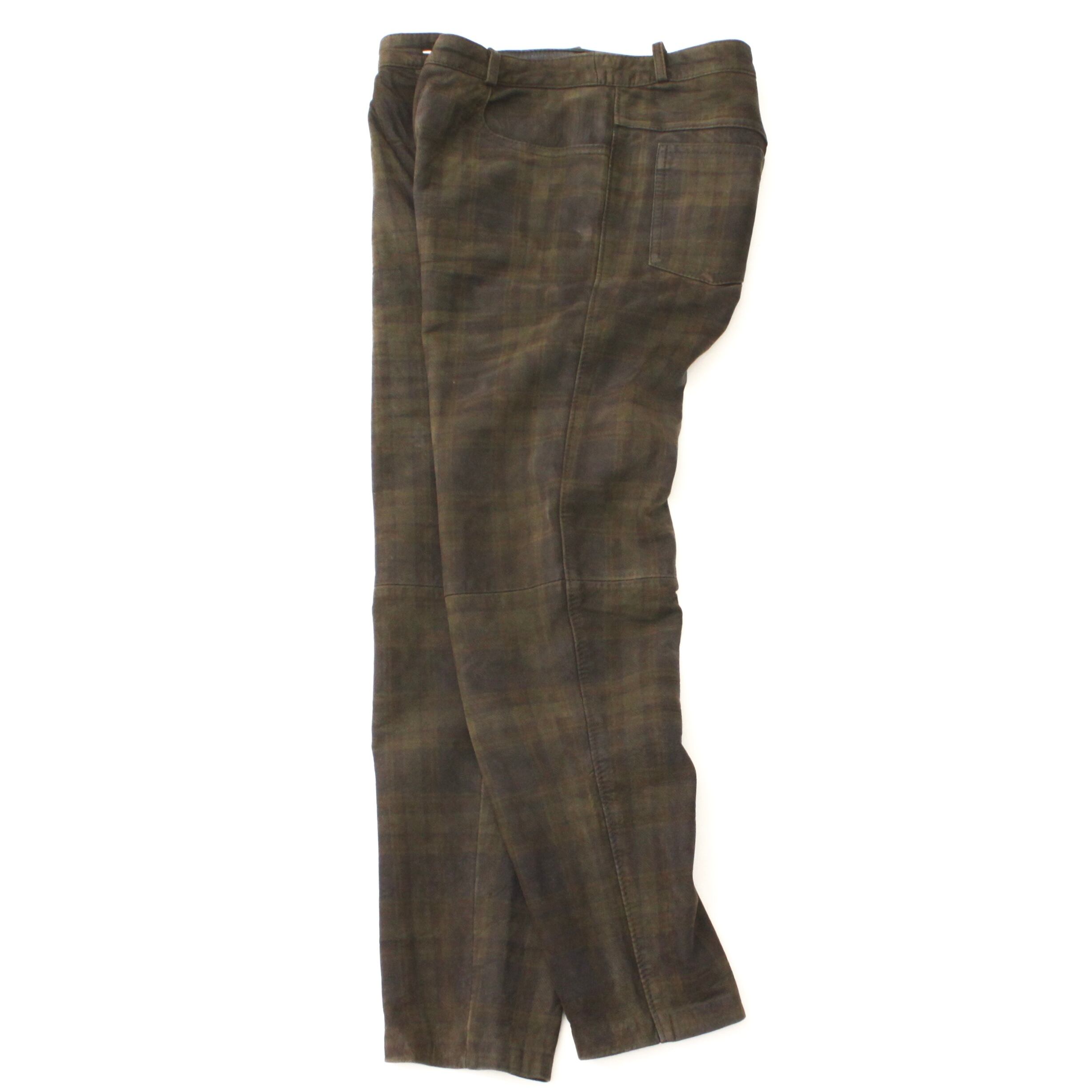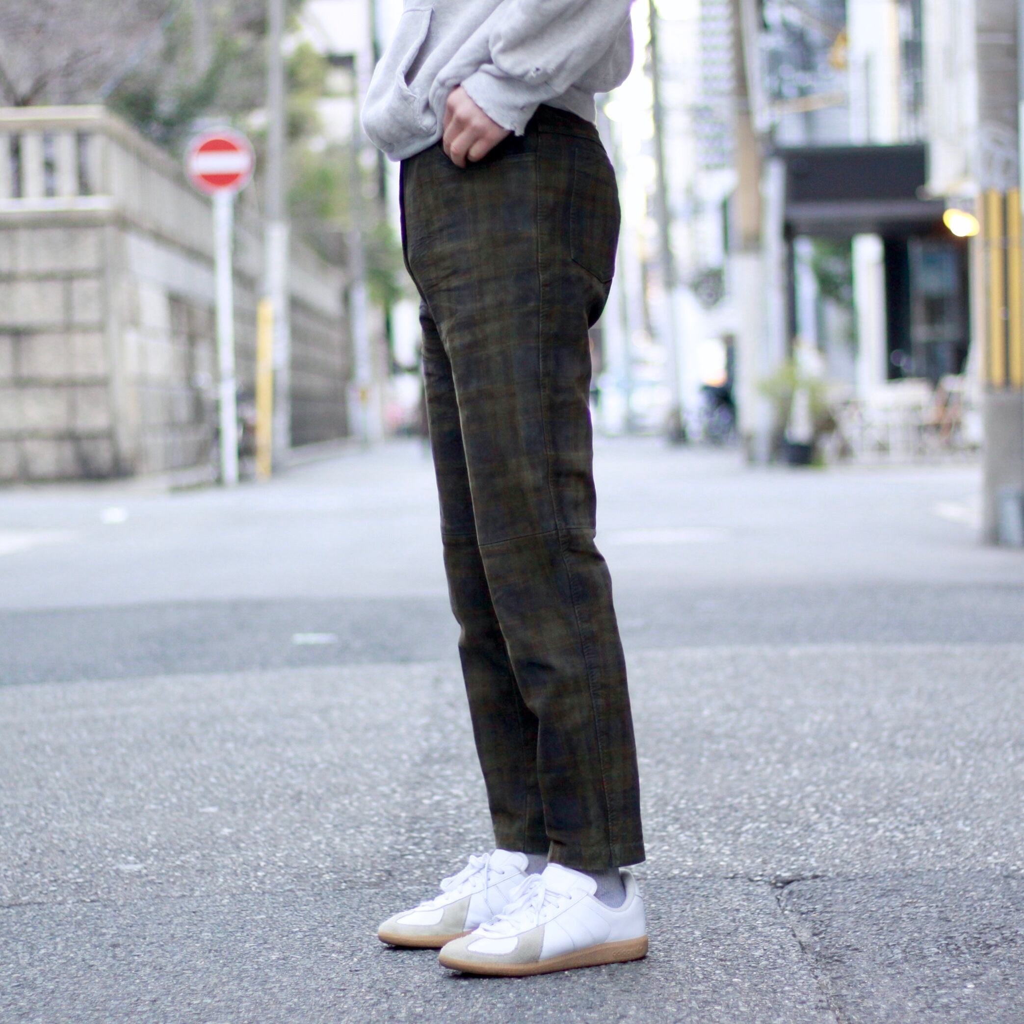 0996. Printed nubuck leather pants green × navy ヌバック レザー チェックパンツ vintage ヴィンテージ ユーロ古着 ヨーロッパ古着 古着