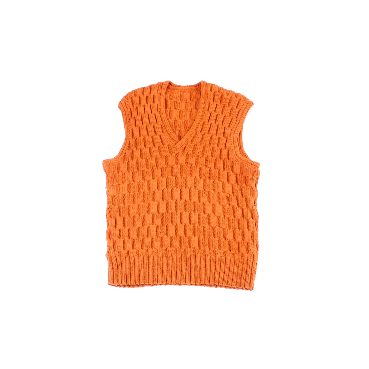 1124. vintage hand knit vest ハンド ニット ベスト オレンジ ヴィンテージ 古着