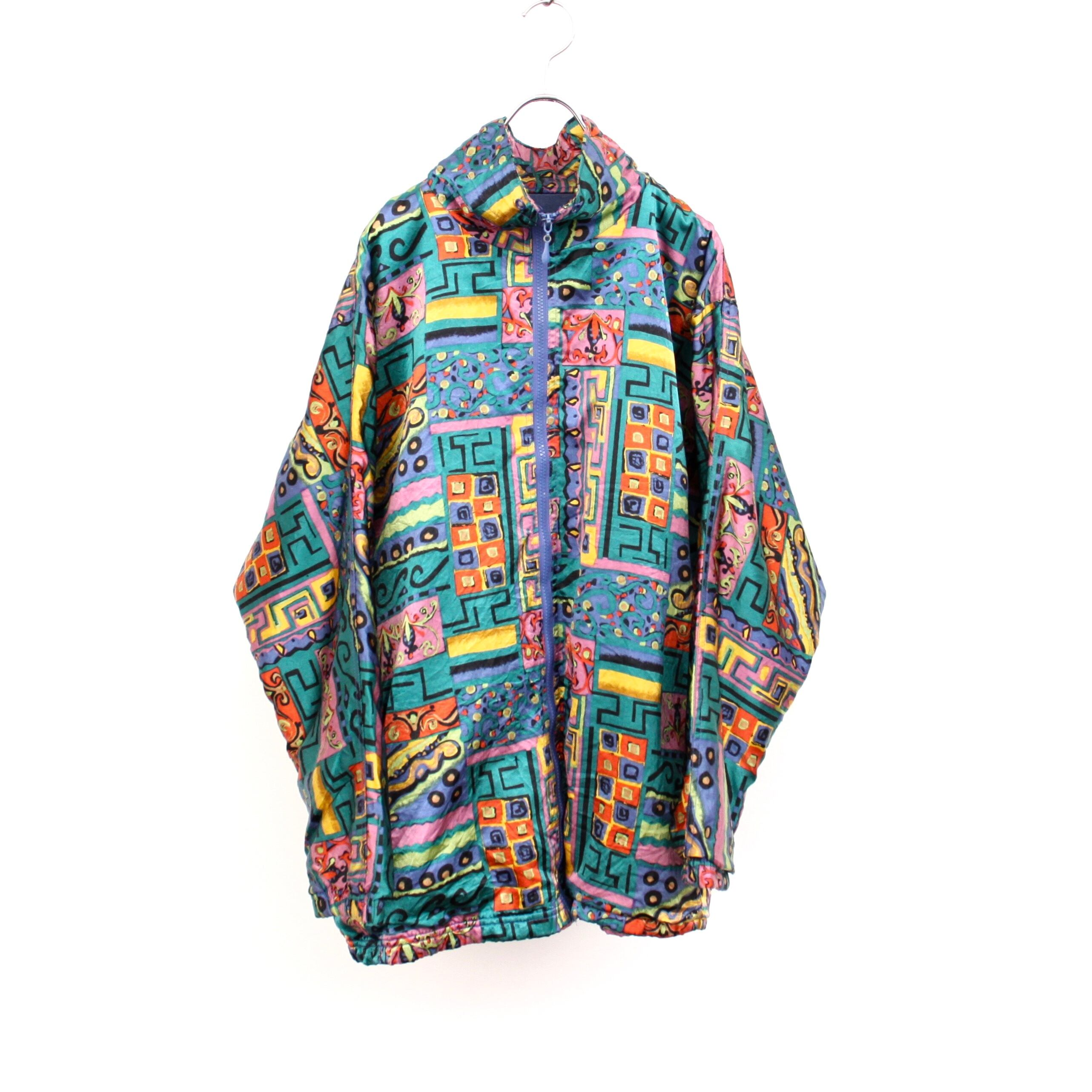 1143. 1980's ヤバい柄のナイロンジャケット 80s 80年代 総柄 ナイロンジャケット vintage ヴィンテージ us古着 古着