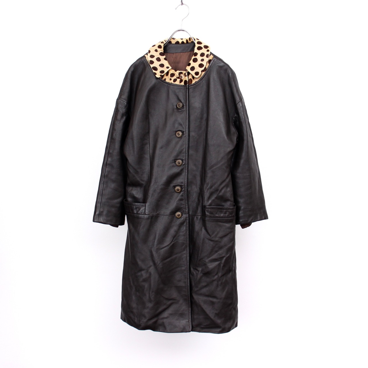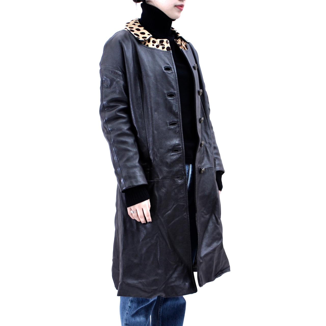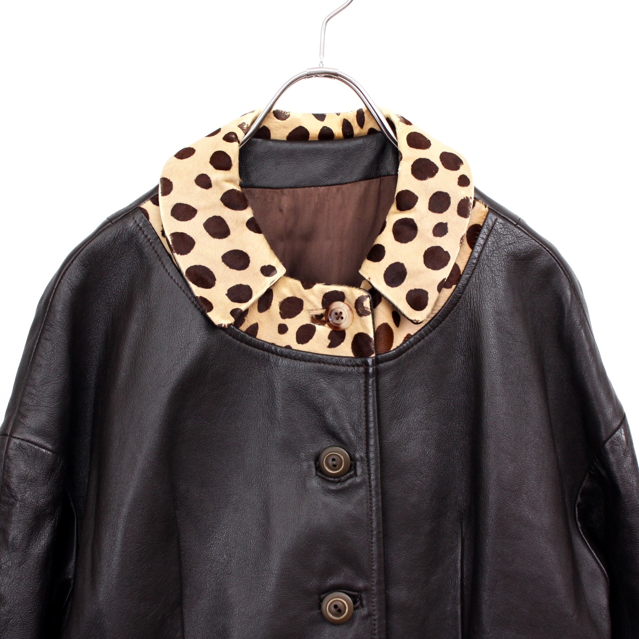 深みのある茶色のレザー生地に襟元のレオパードが絶妙に可愛い激かわコートです。