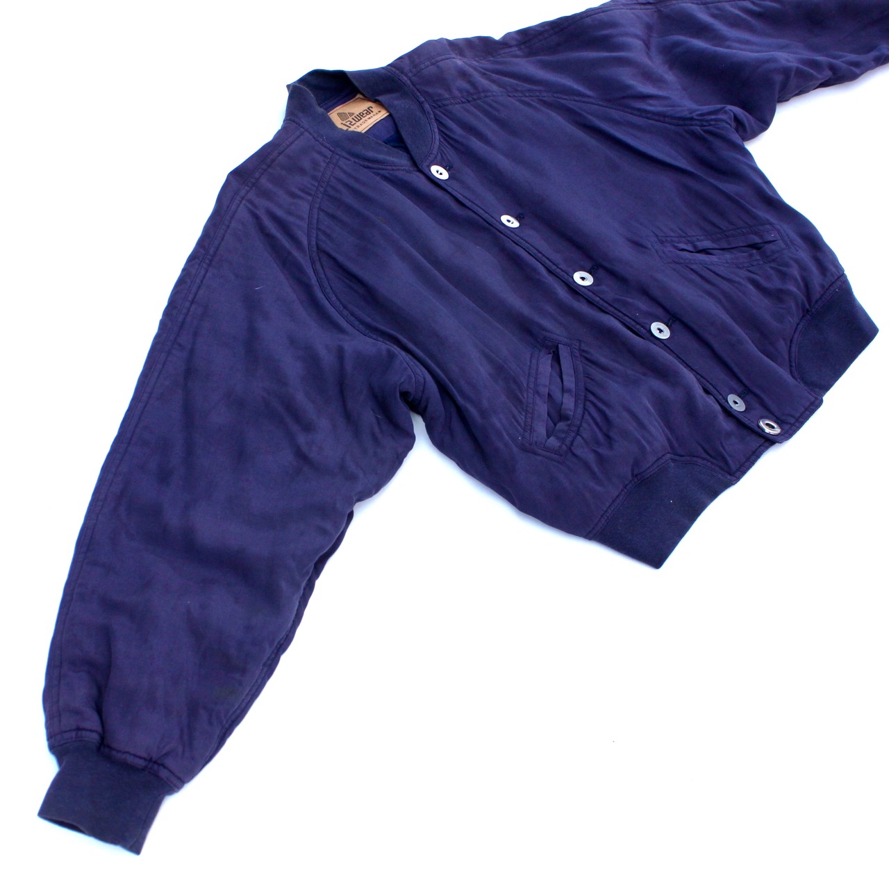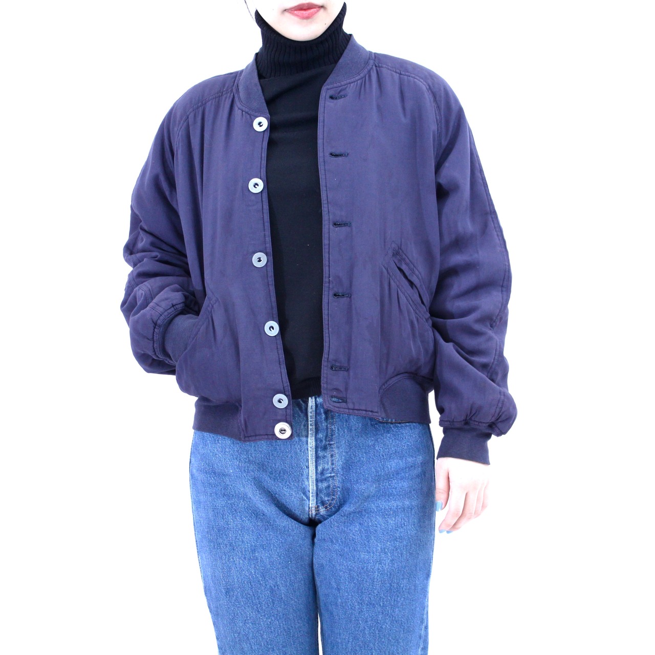 1164. 1990's rayon blouson ネイビー レーヨン 中綿ブルゾン ジャケット アウター 90s 90年代 レディース古着