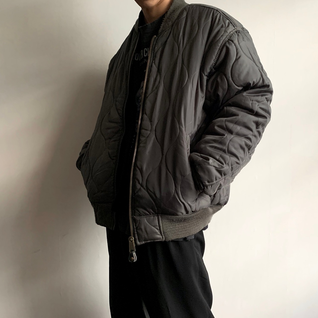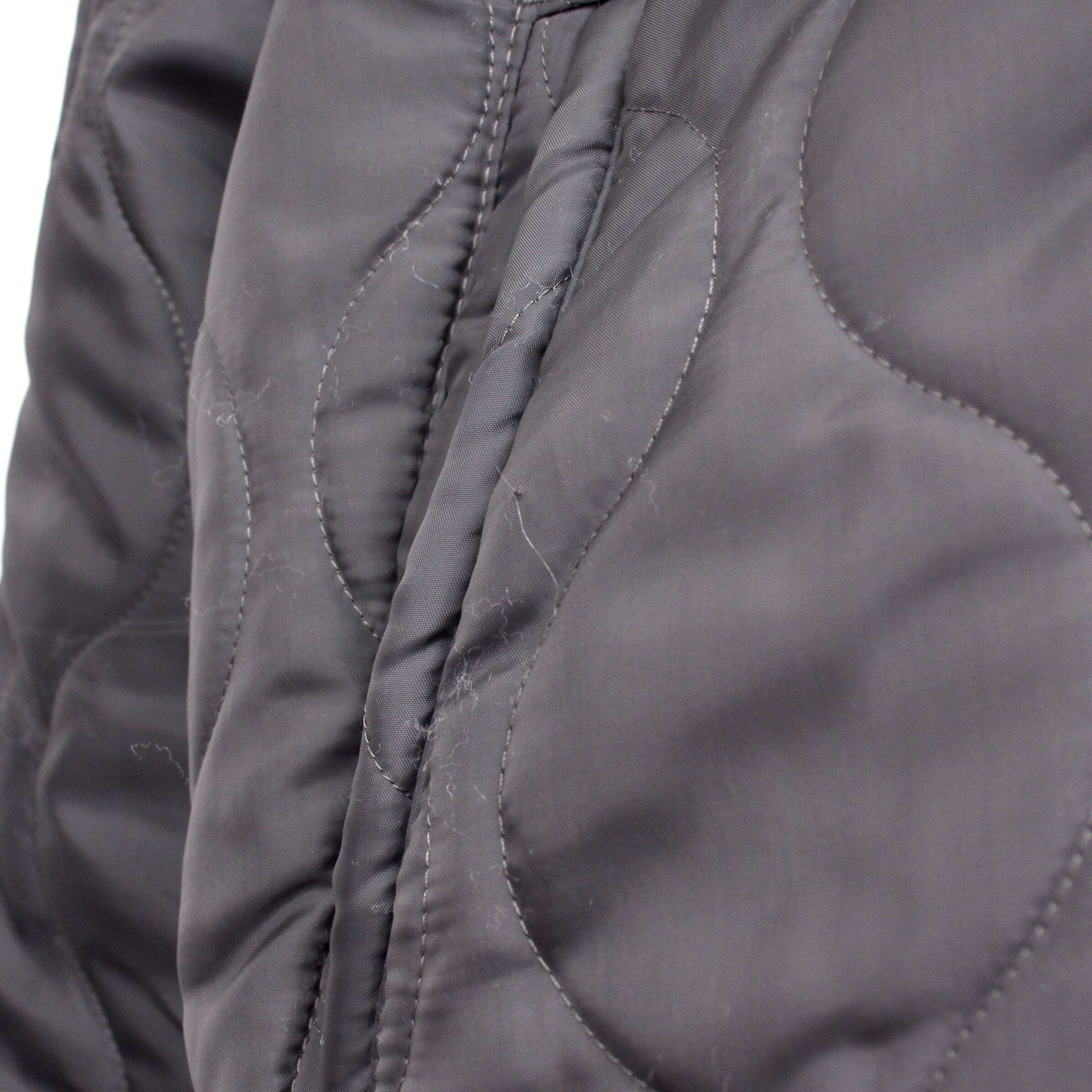 CWUやM-65のライナーにみられるひょうたんキルティングでソリッドなグレー面と