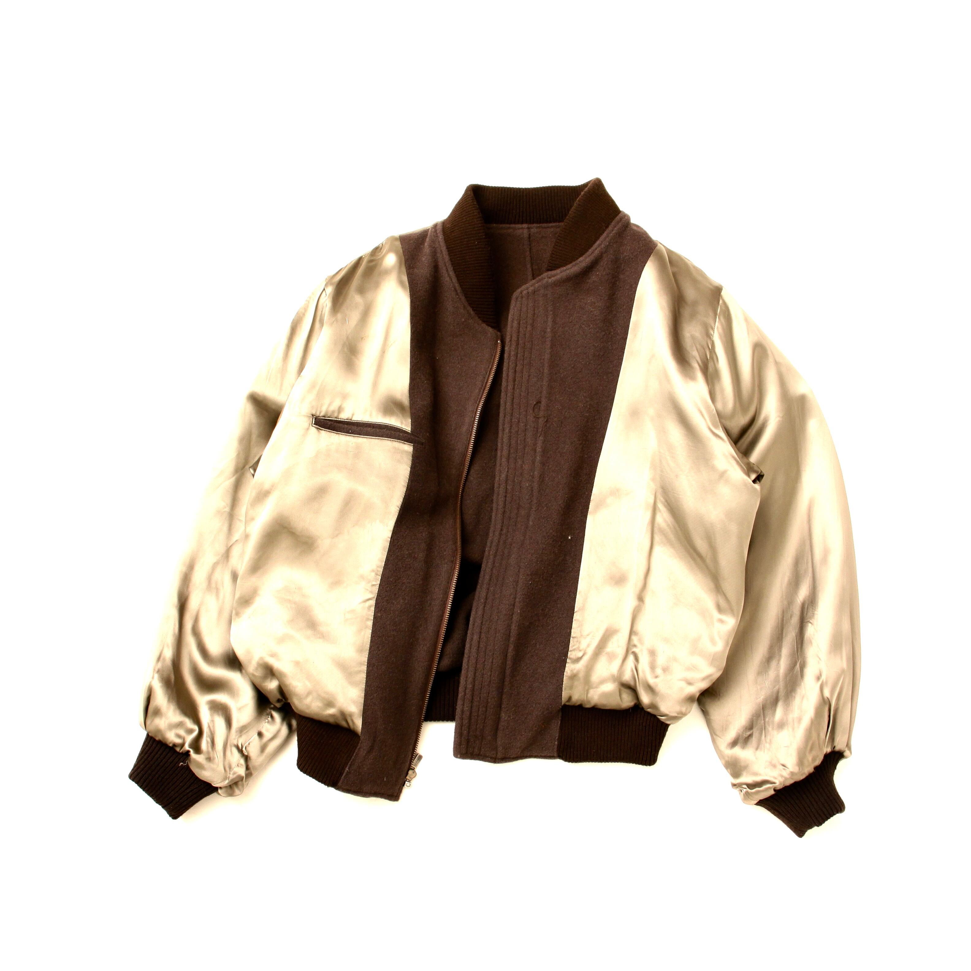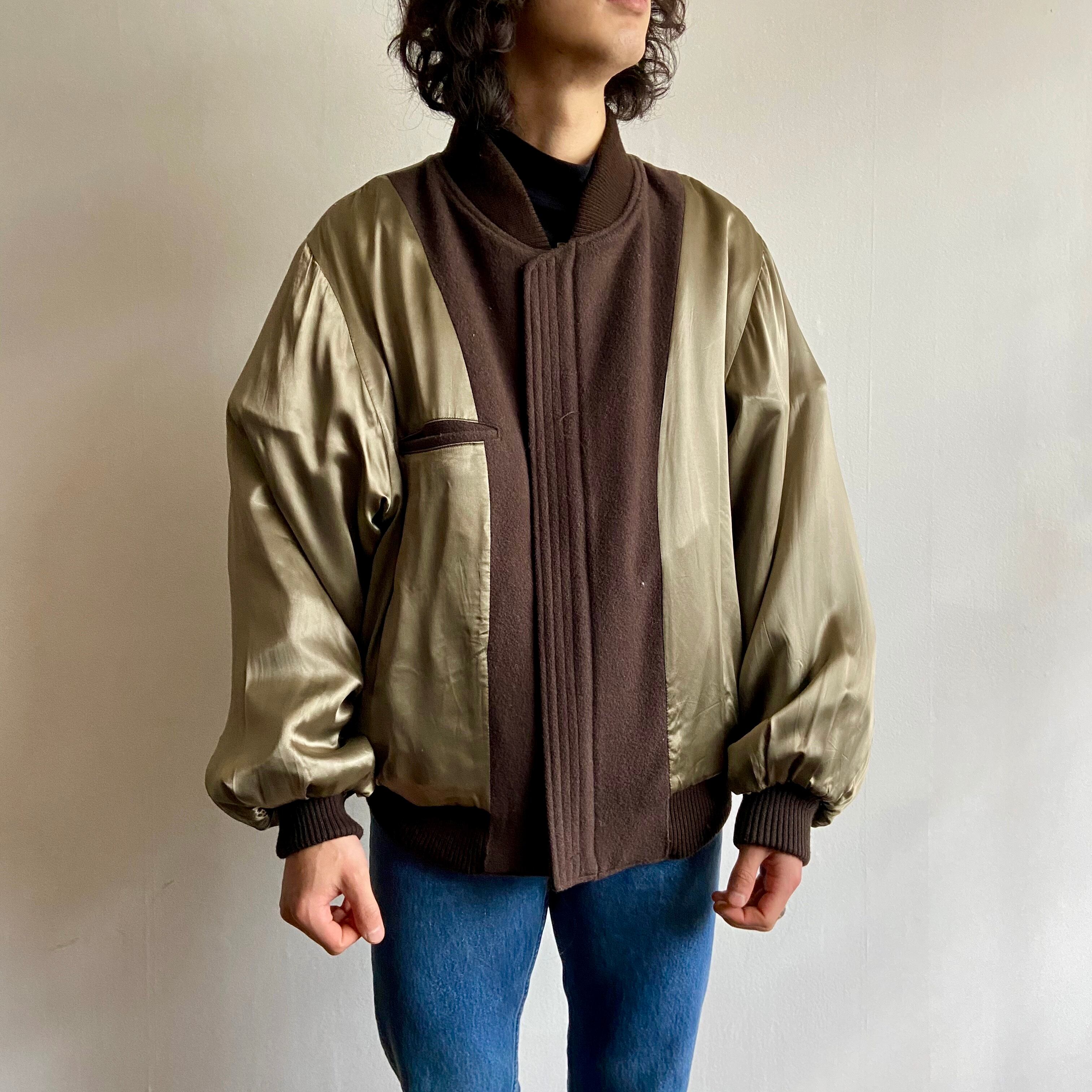 1175. unknown Hollowed out design bomber jacket vintage 80s 80年代 ウールジャケット ボンバージャケット ヴィンテージ us古着 古着