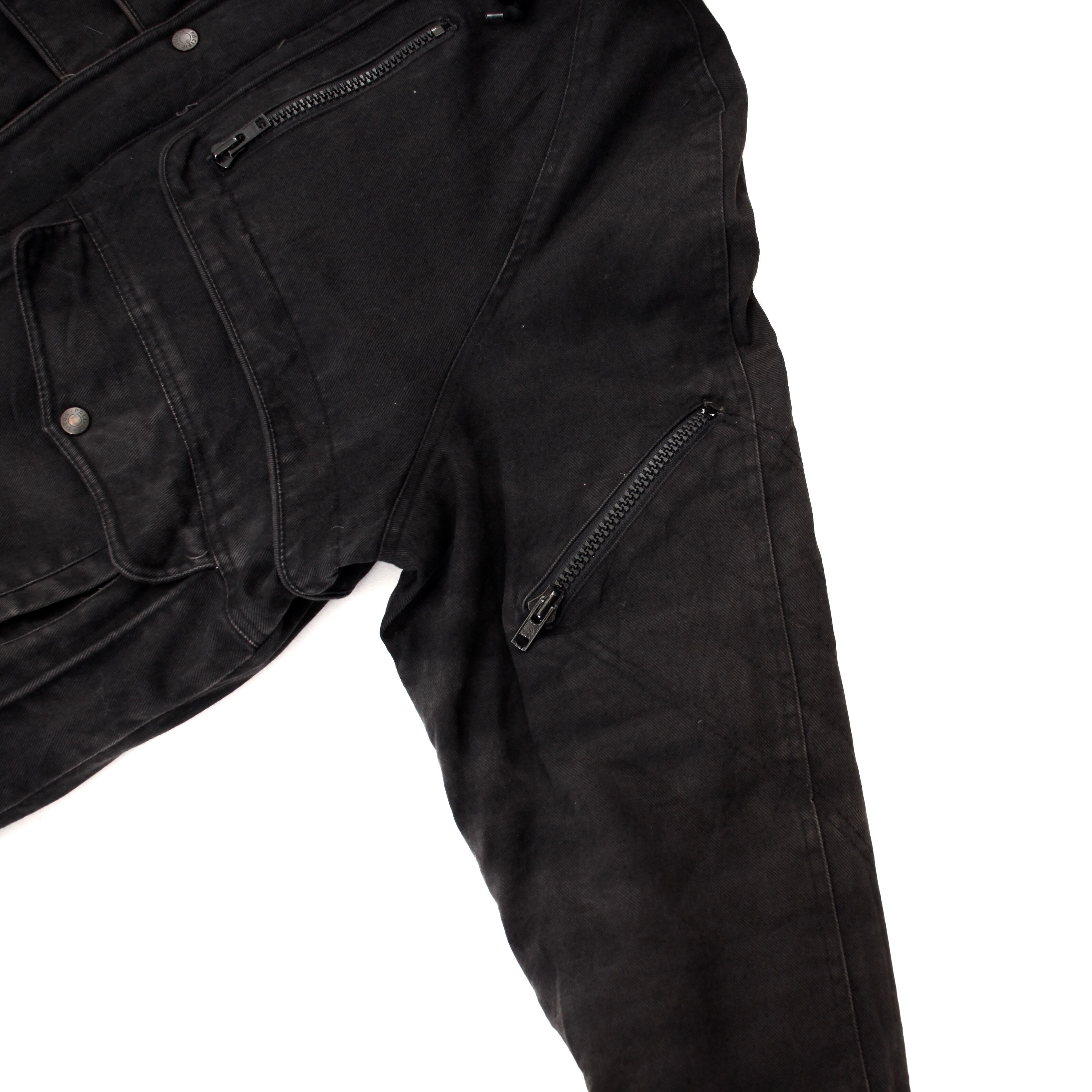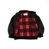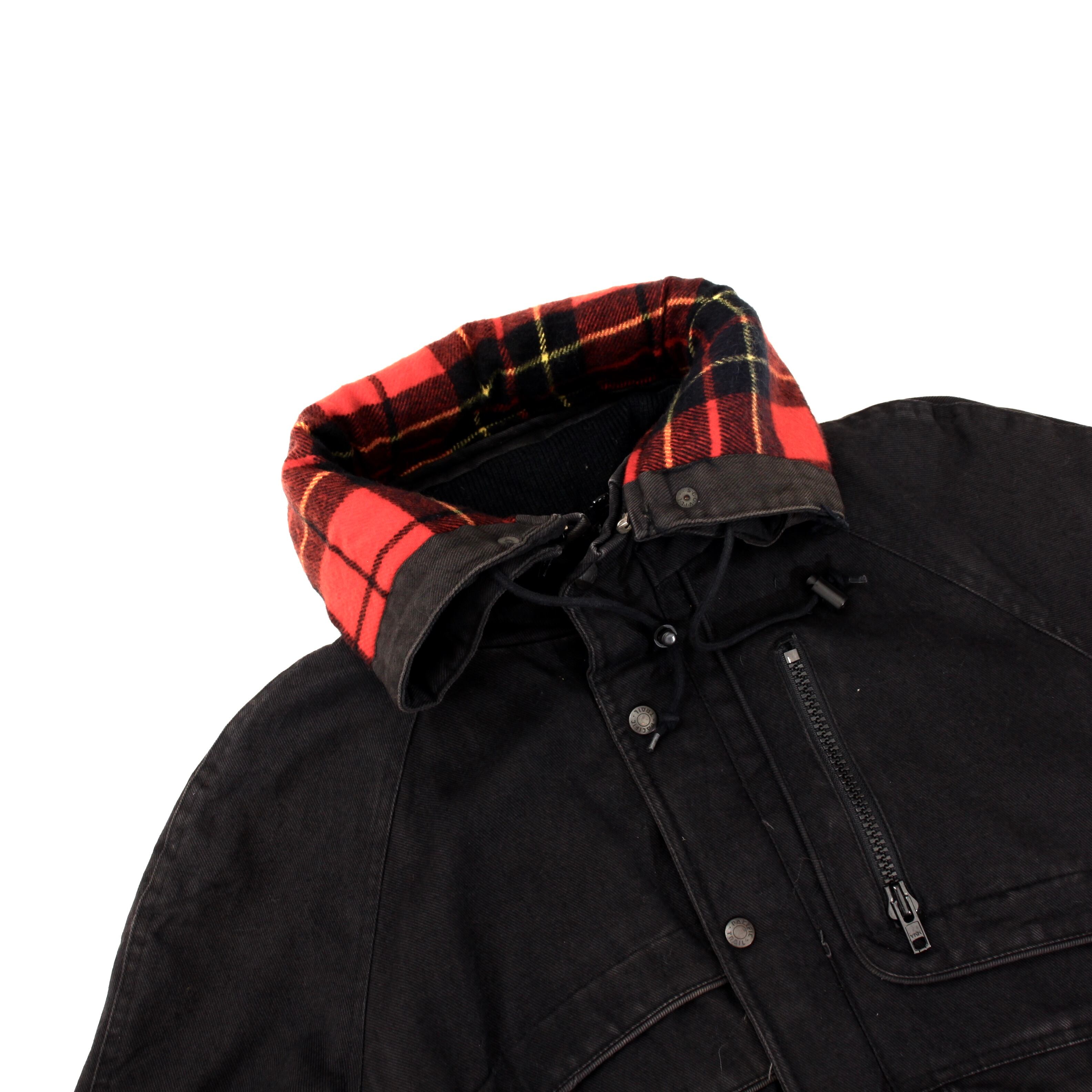 全体的にフェードしたコットンツイルのブラックと裏地のタータンチェックの