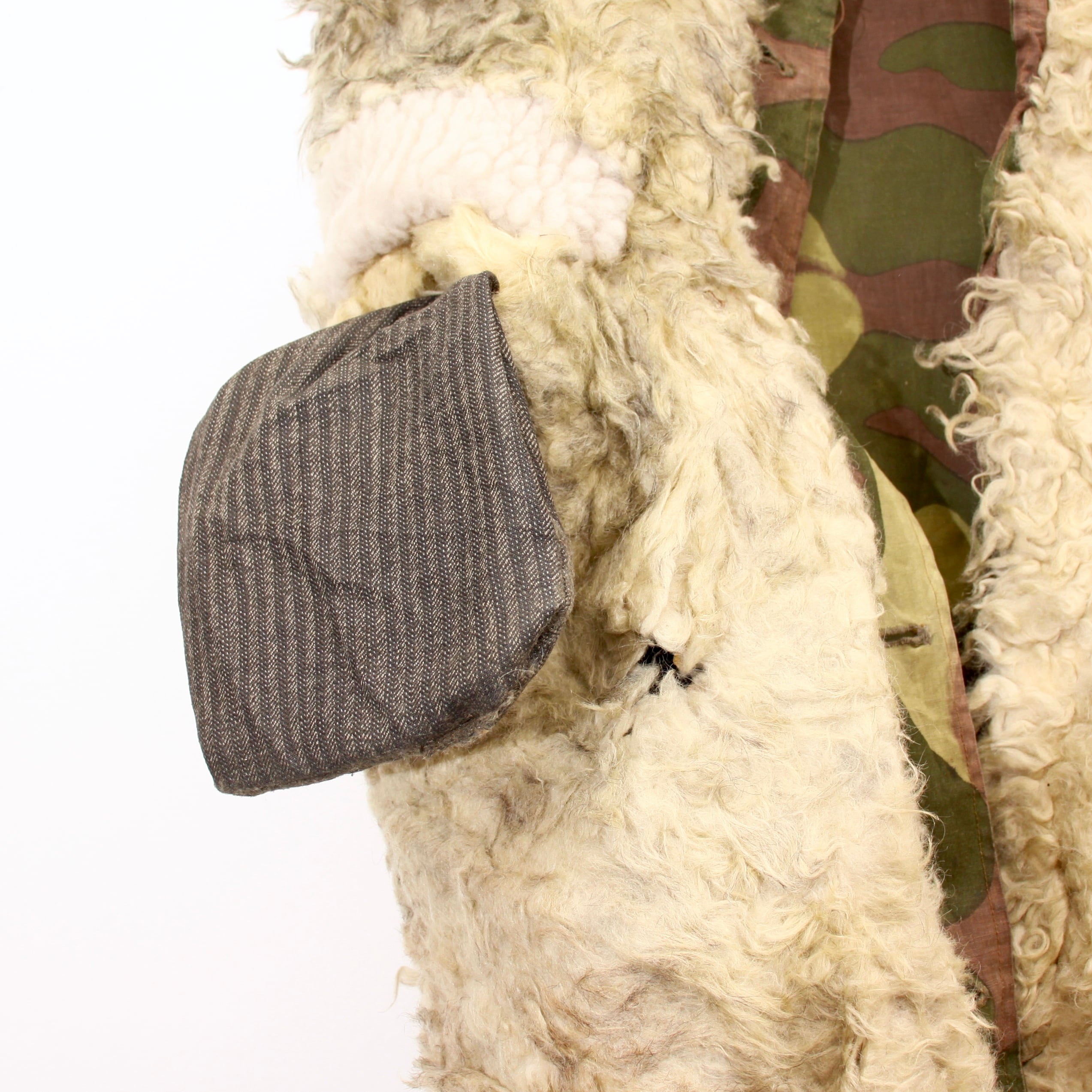 シェルに薄汚れ、ライニングのファーにリペア箇所やダメージがあります。
