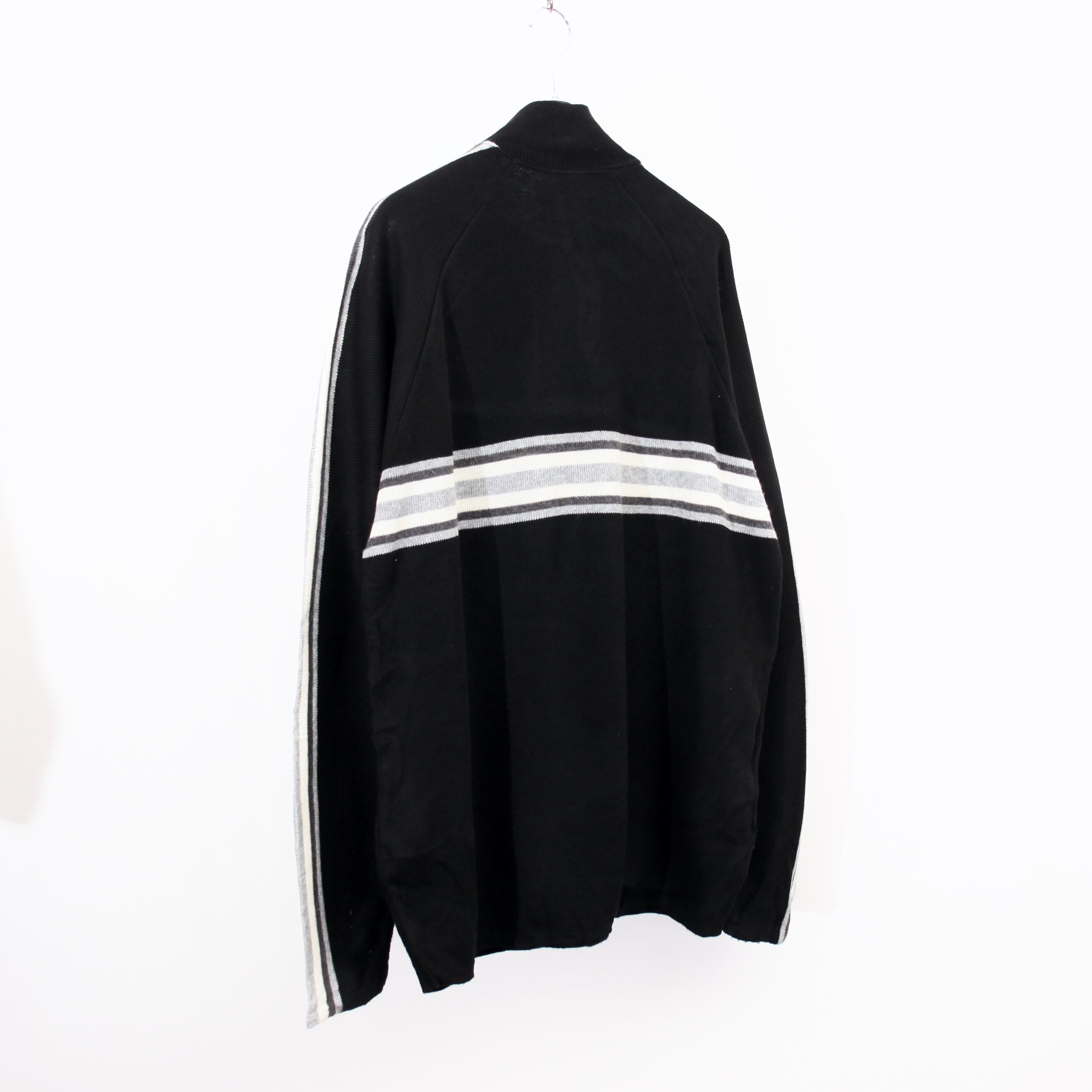 裾にリペア痕、袖の白いライン上にうっすら汚れがあります。