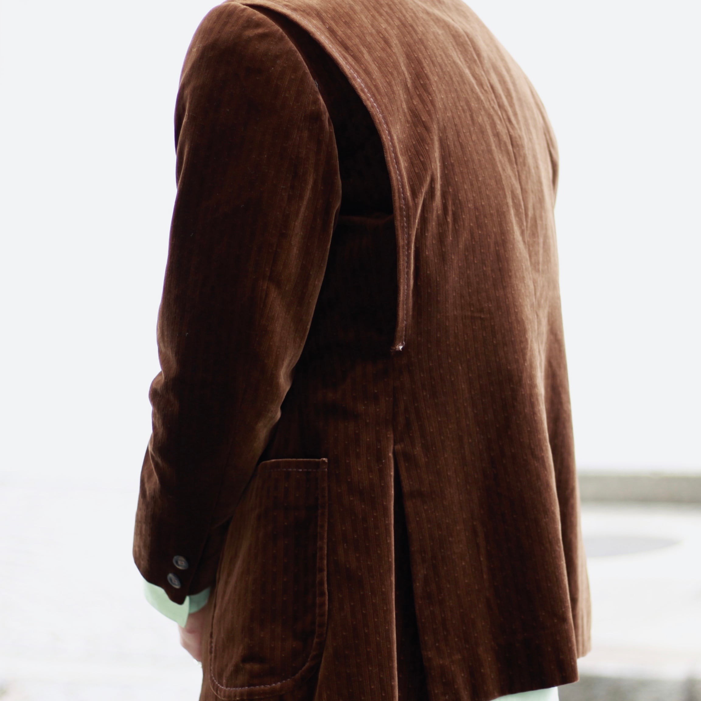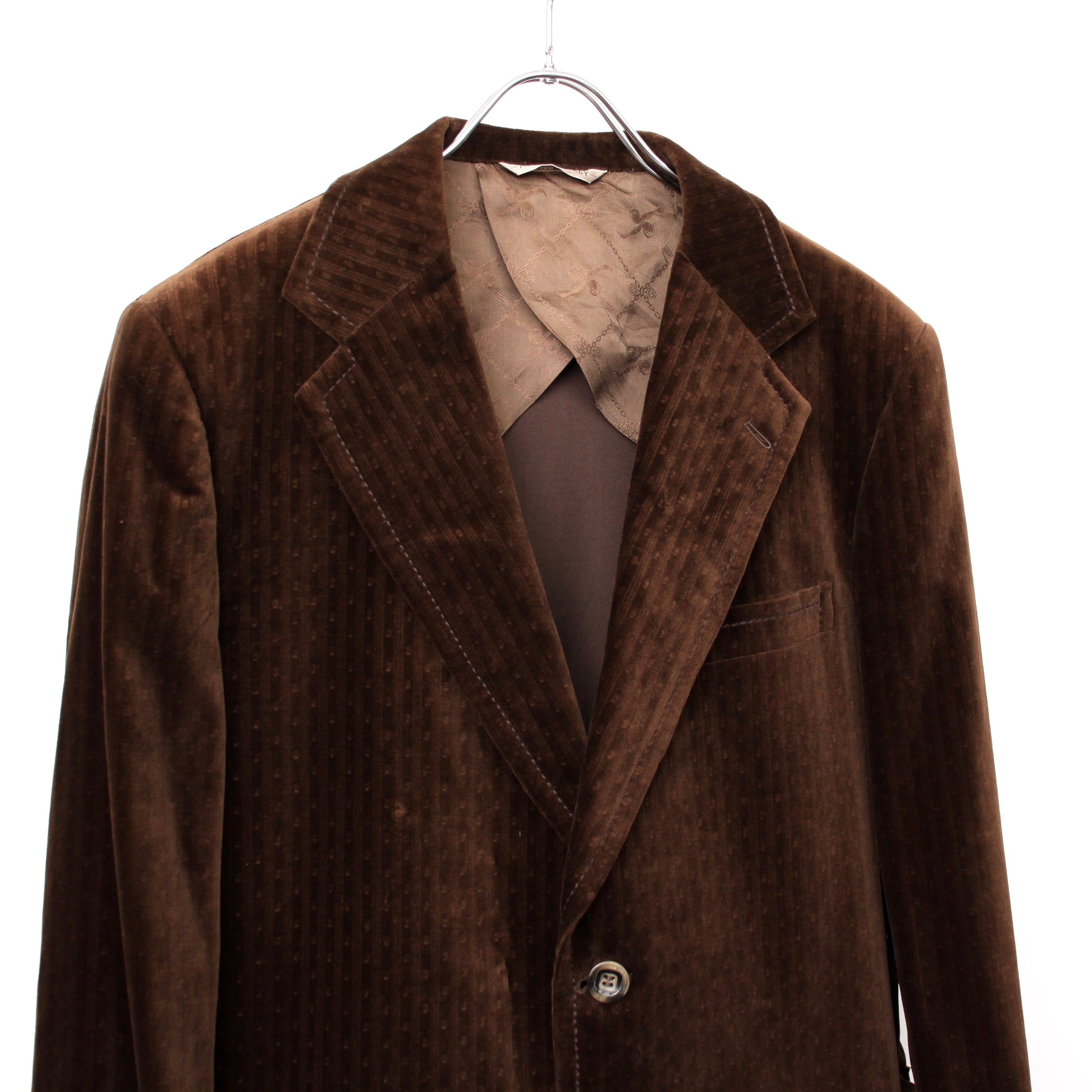 1225. 1970's German textile velvet tailored jacket ブラウン ベルベット ベロア テーラードジャケット 70s 70年代 vintage 古着