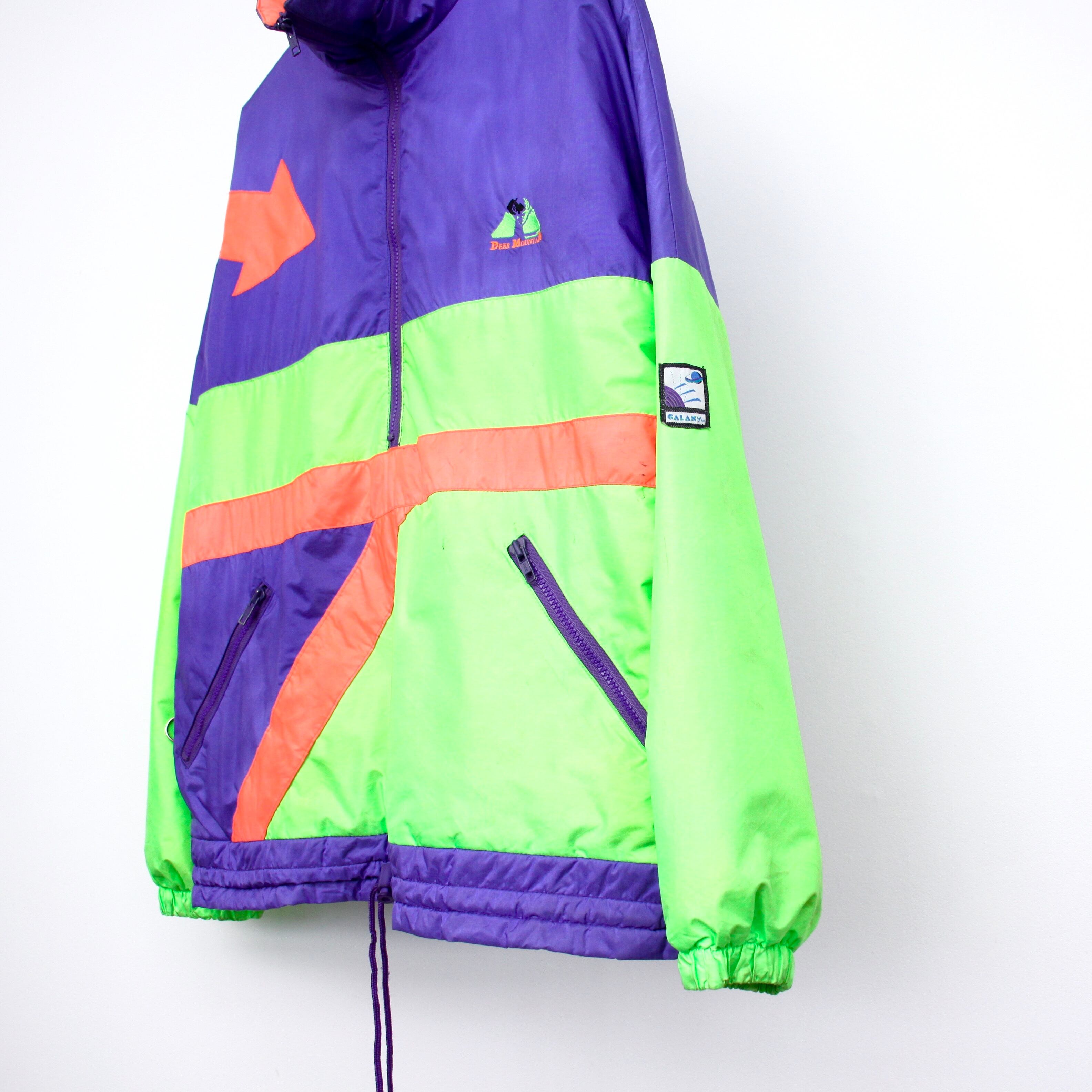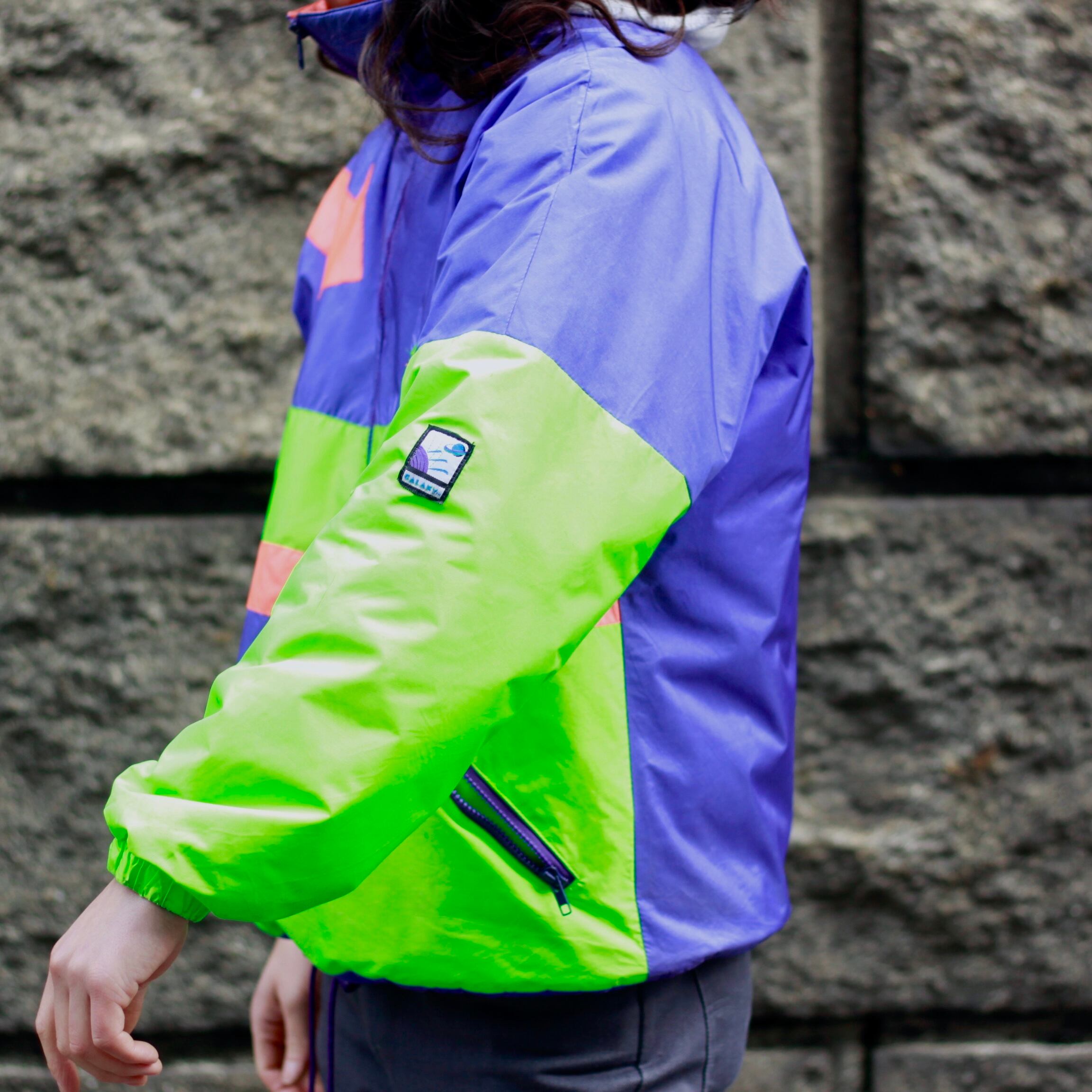 1229. 1980's neon colorway pullover jacket made in Canada ネオンカラー ナイロン プルオーバー ジャケット フリース裏地 80s 80年代 vintage 古着