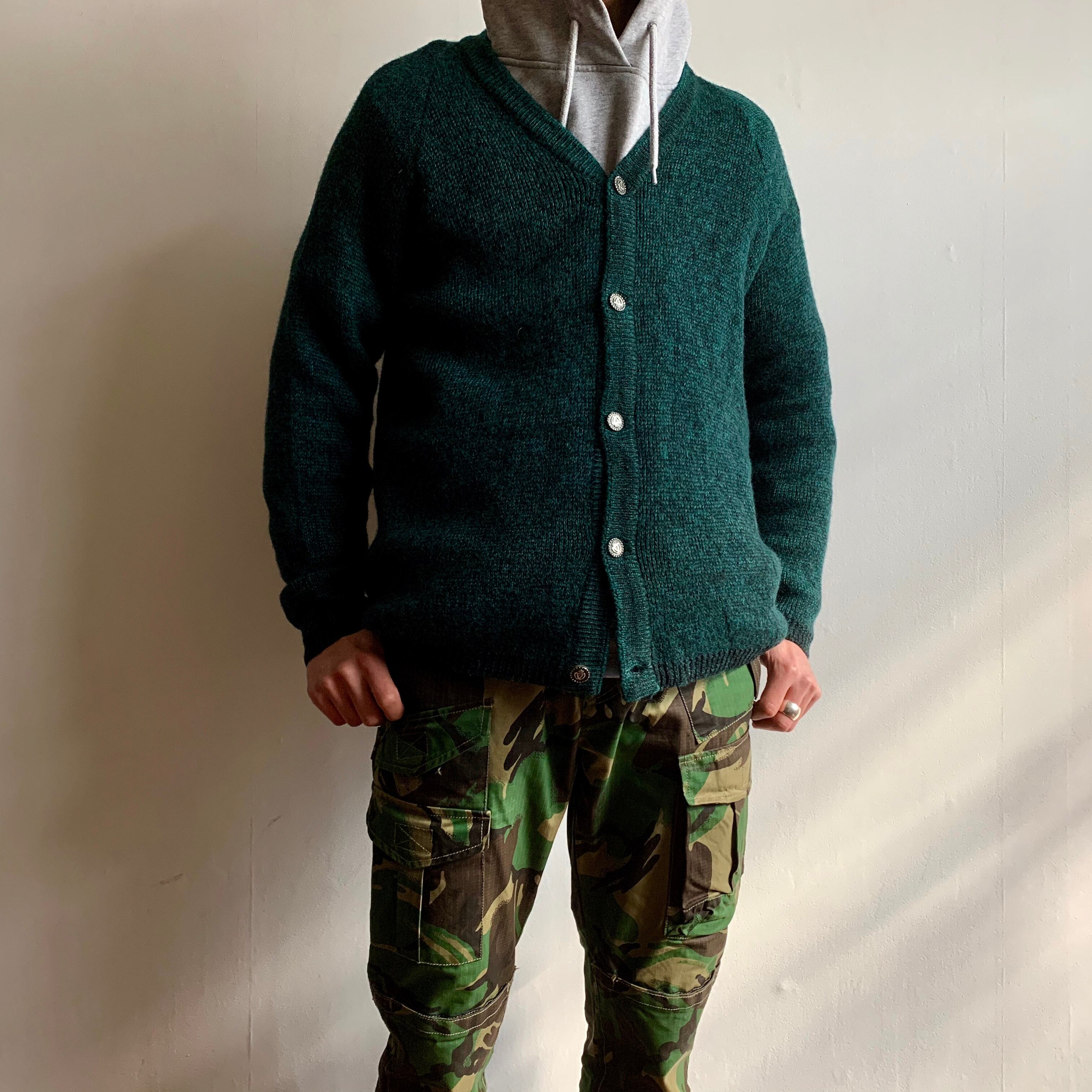 1256. Euro vintage knit cardigan deep green カーディガン メタルボタン グリーン ヴィンテージ ユーロ古着 ヨーロッパ古着 古着