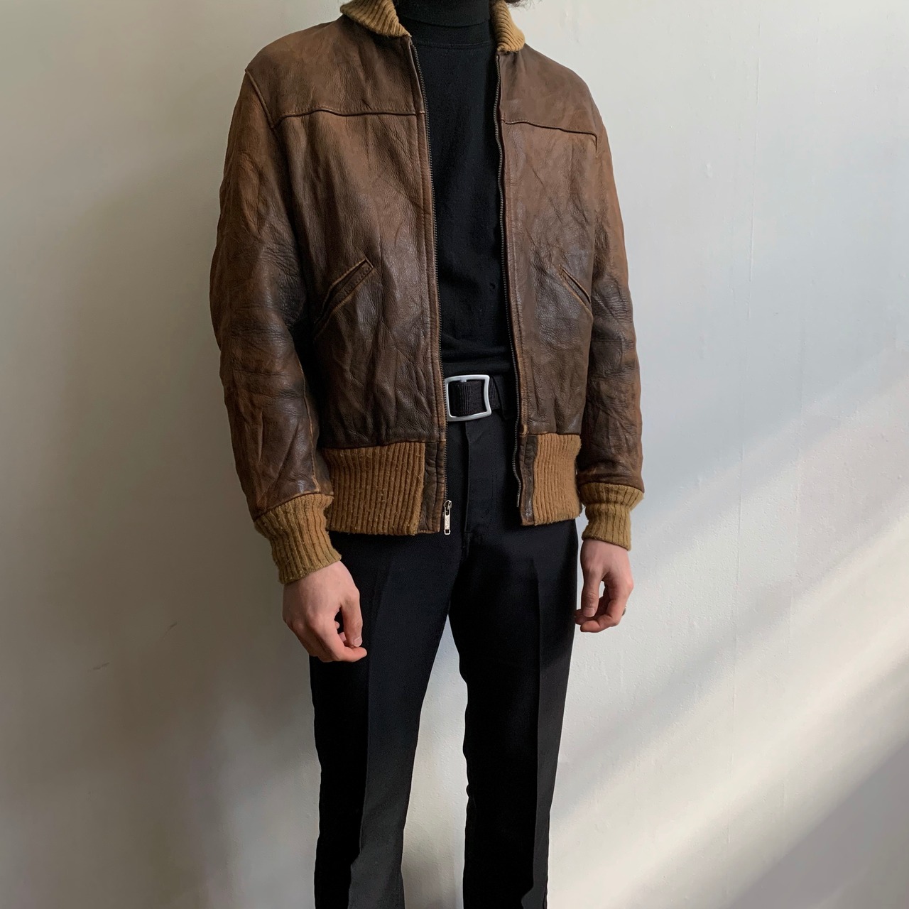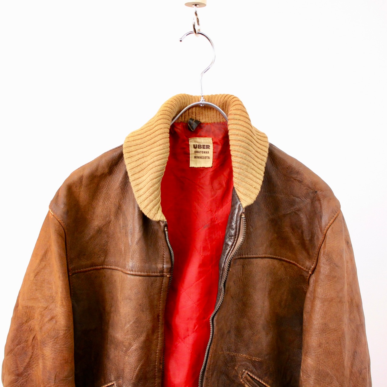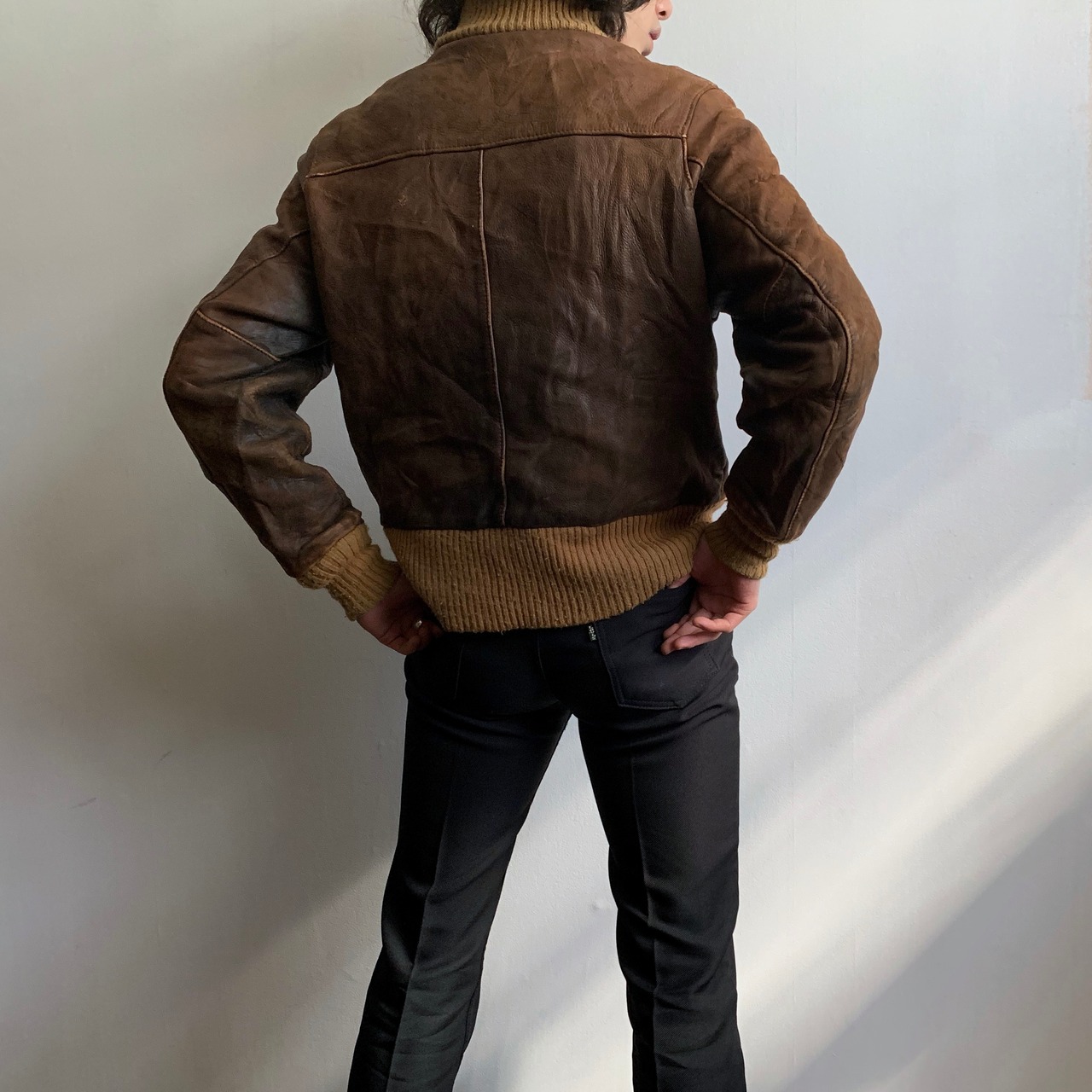 1266. 1970's shawl collar leather jumper ブラウン レザージャケット ブルゾン ショールカラー ヘチマ襟 70s 70年代 vintage 古着