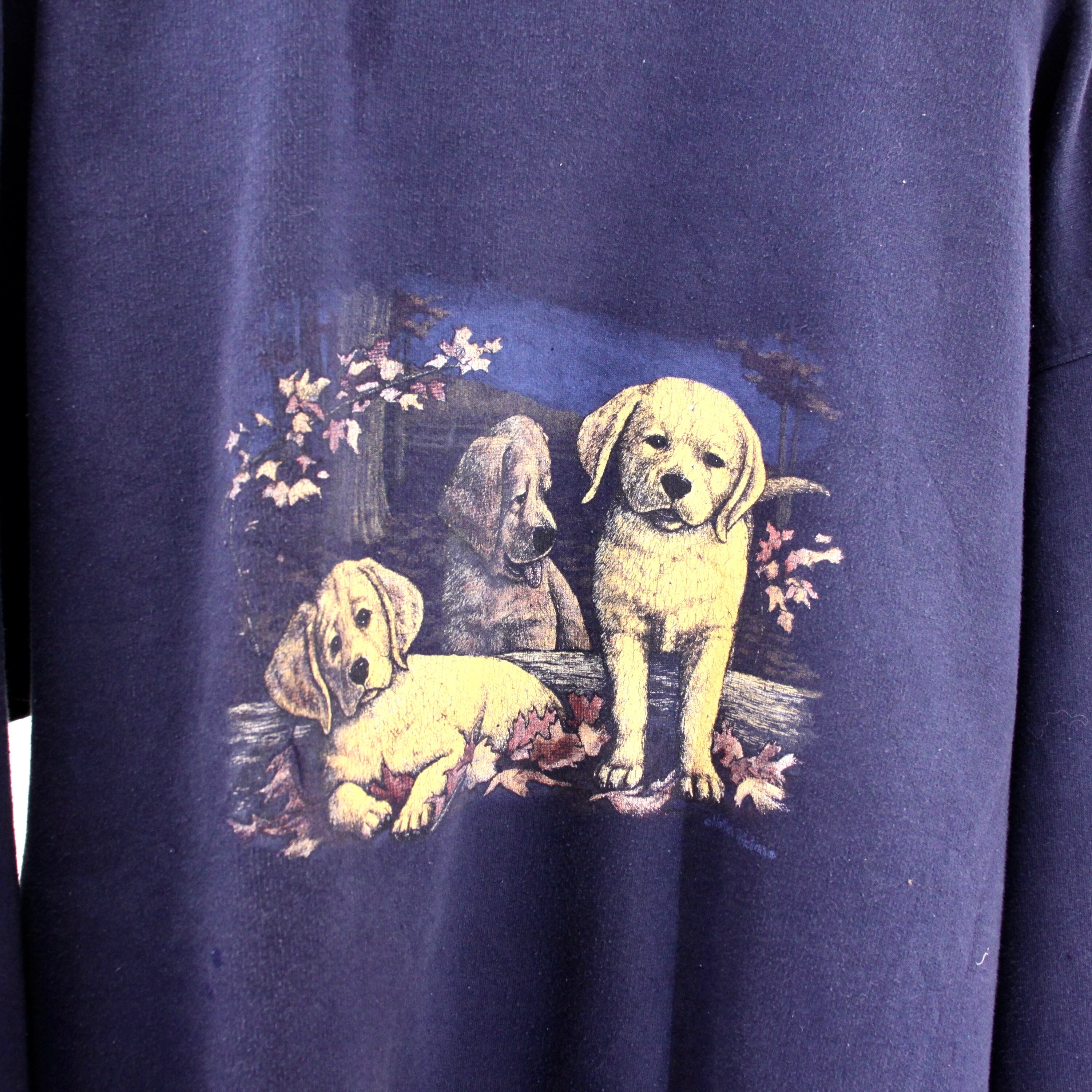 1300. 1990's dogs sweat ネイビー アニマルプリント 犬 ゴールデンレトリーバー スウェット 90s 90年代 vintage 古着