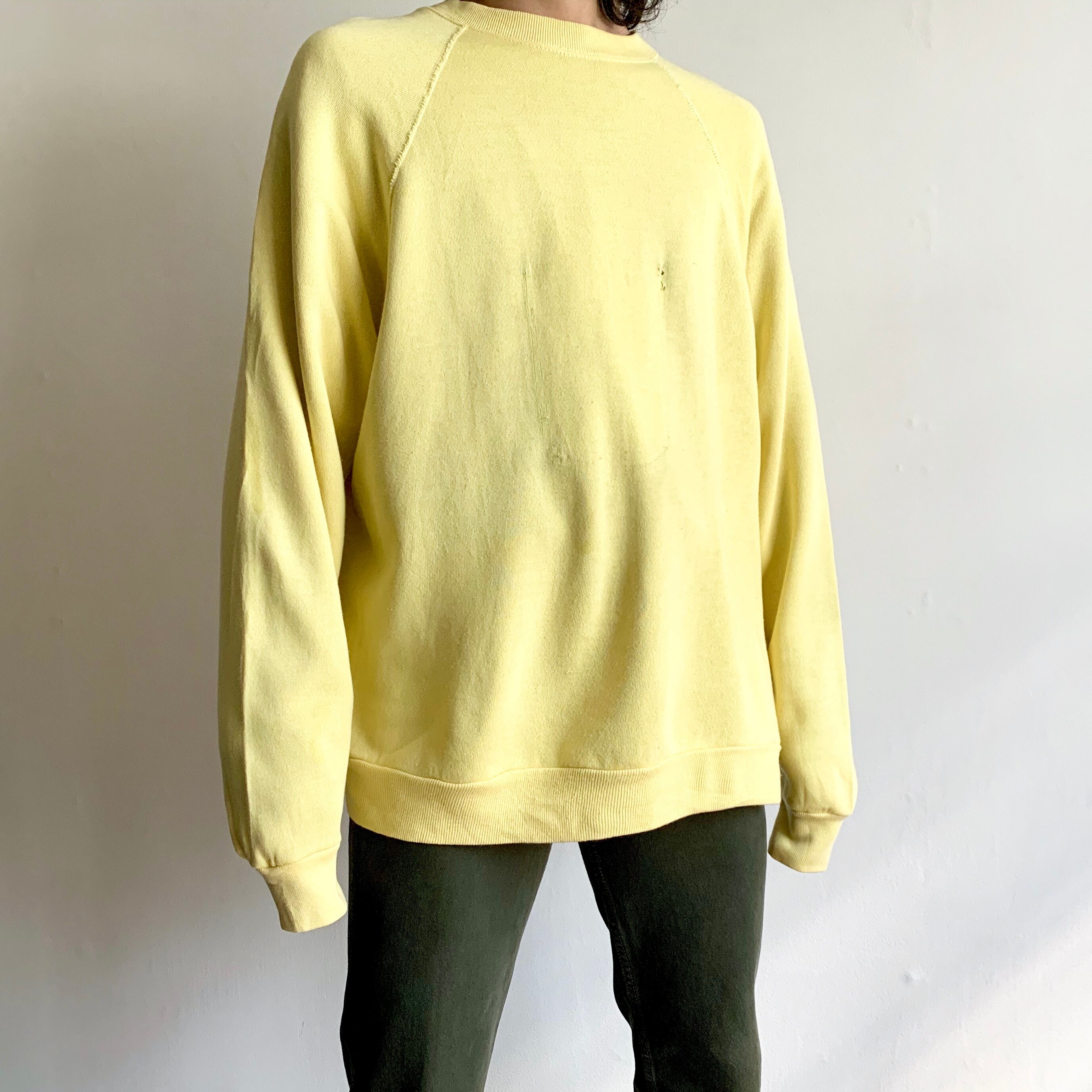 1339. lemon yellow sweat made in USA レモンイエロー 無地 ラグランスウェット USA製 80's 80s 80年代 vintage 古着