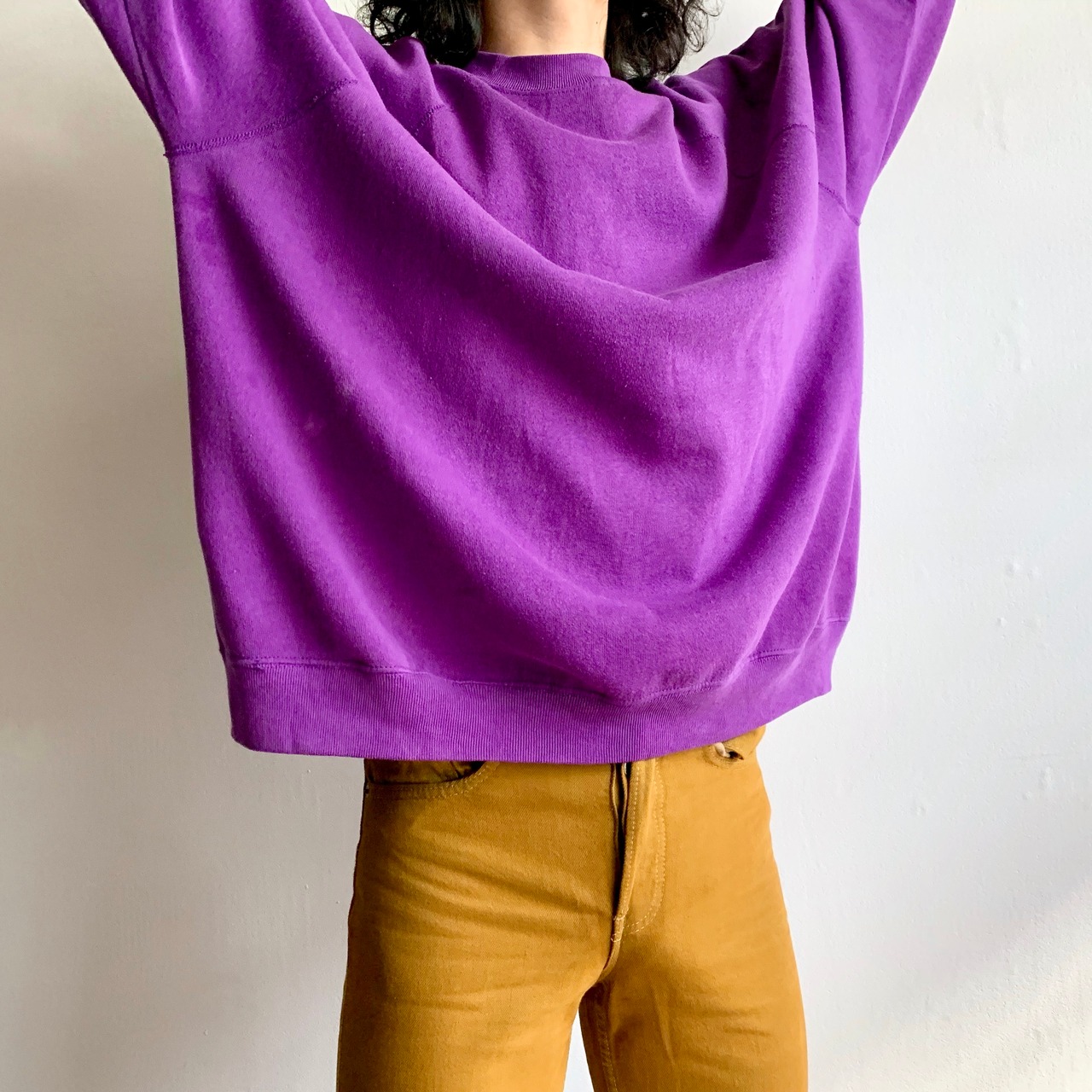 1340. purple sweat made in USA パープル 無地 ラグランスウェット USA製 90's 90s 90年代 vintage 古着