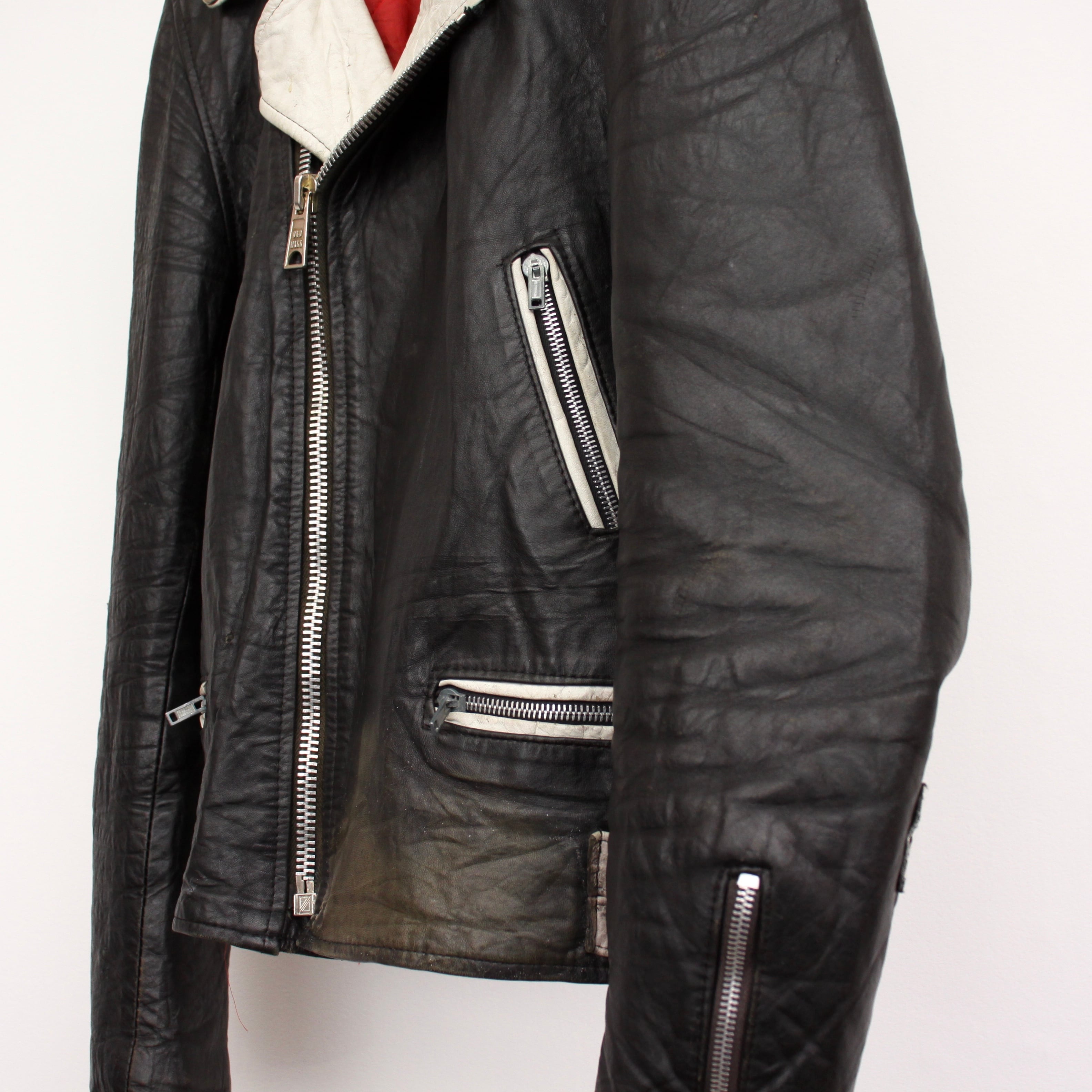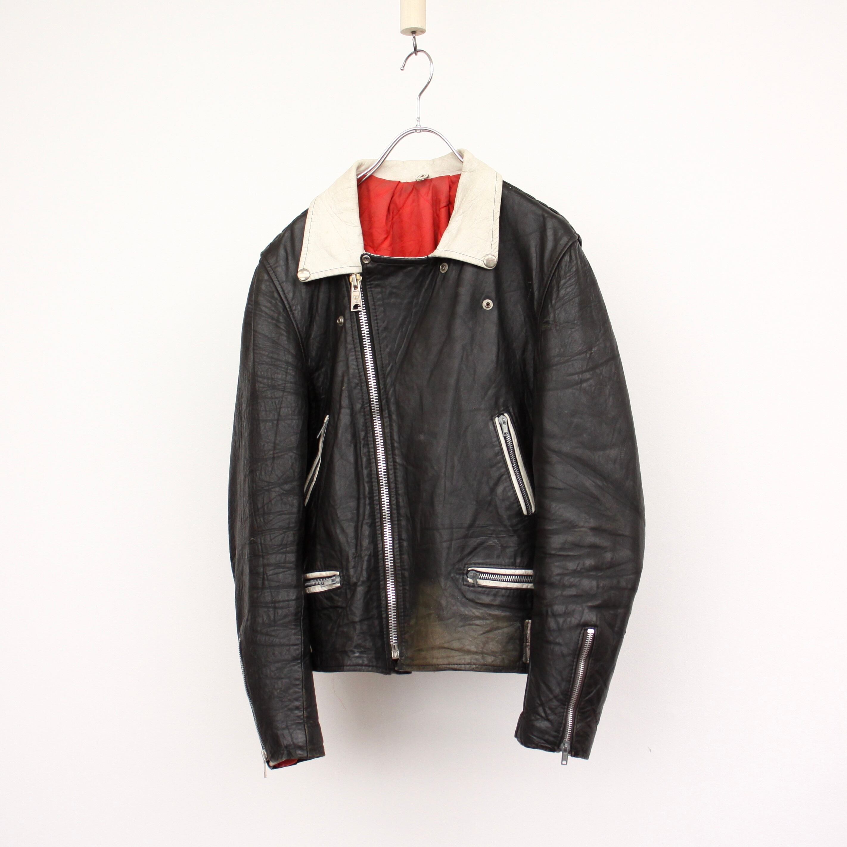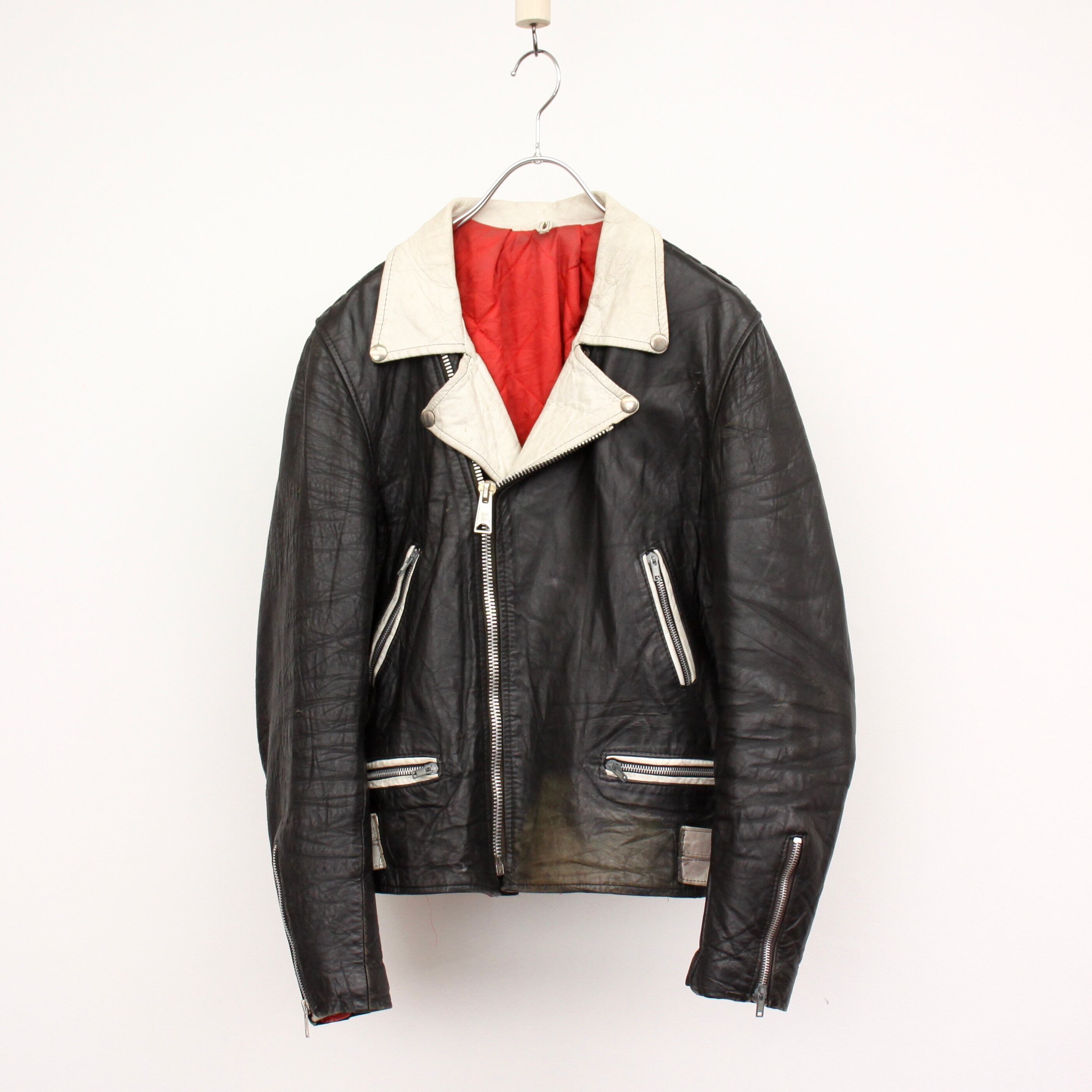 0020. 1970's 2tone double riders leather jacket black × white 70s 70年代 ロンジャン ダブルライダース レザージャケット 2トーン vintage ヴィンテージ ユーロ古着 ヨーロッパ古着 古着