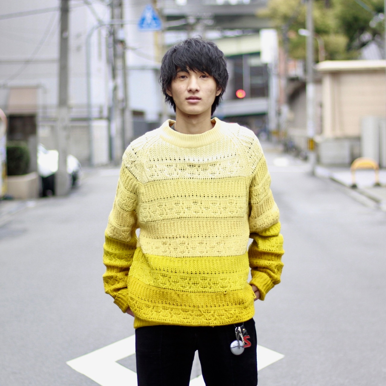 0061. 1980's multicolored border acryl knit 70's 80'sマルチカラーアクリルニット US アメカジ