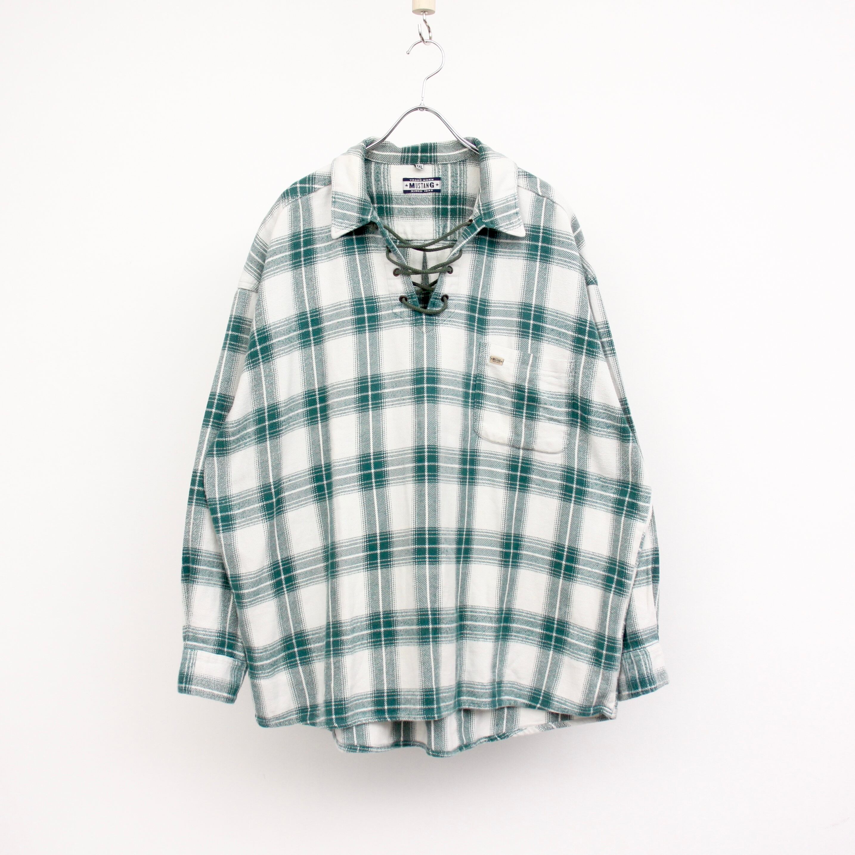 0072. 1990's German plaid laceup shirt 90s 90年代 ドイツ チェックシャツ レースアップシャツ vintage ヴィンテージ ユーロ古着 ヨーロッパ古着 古着