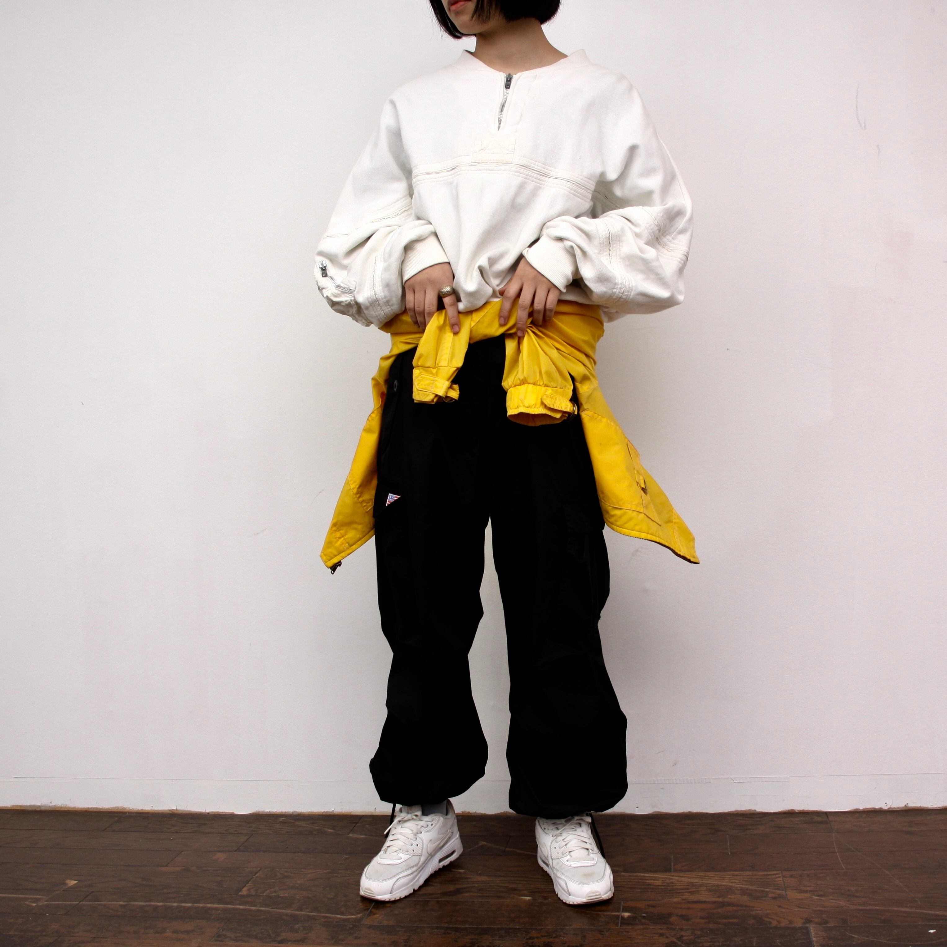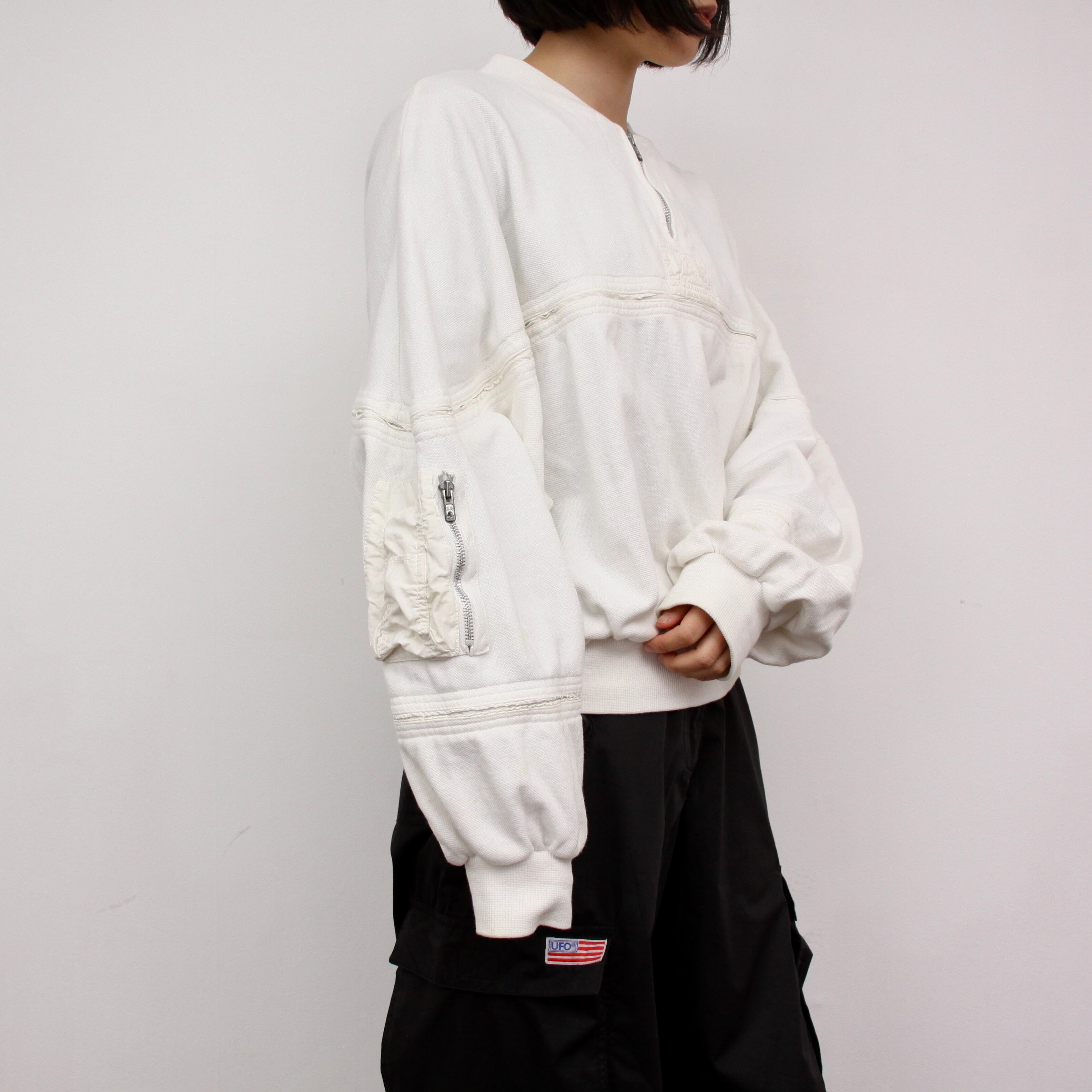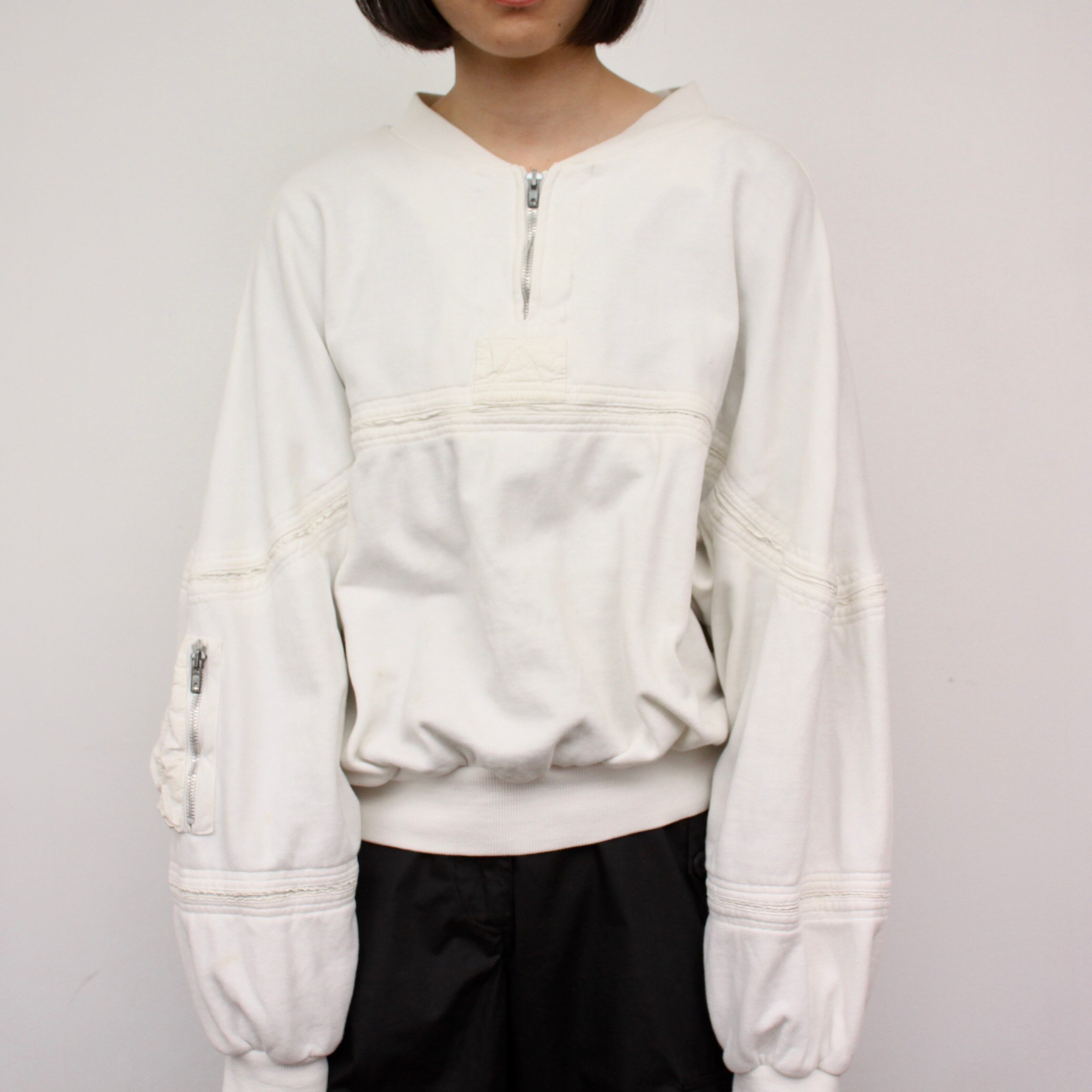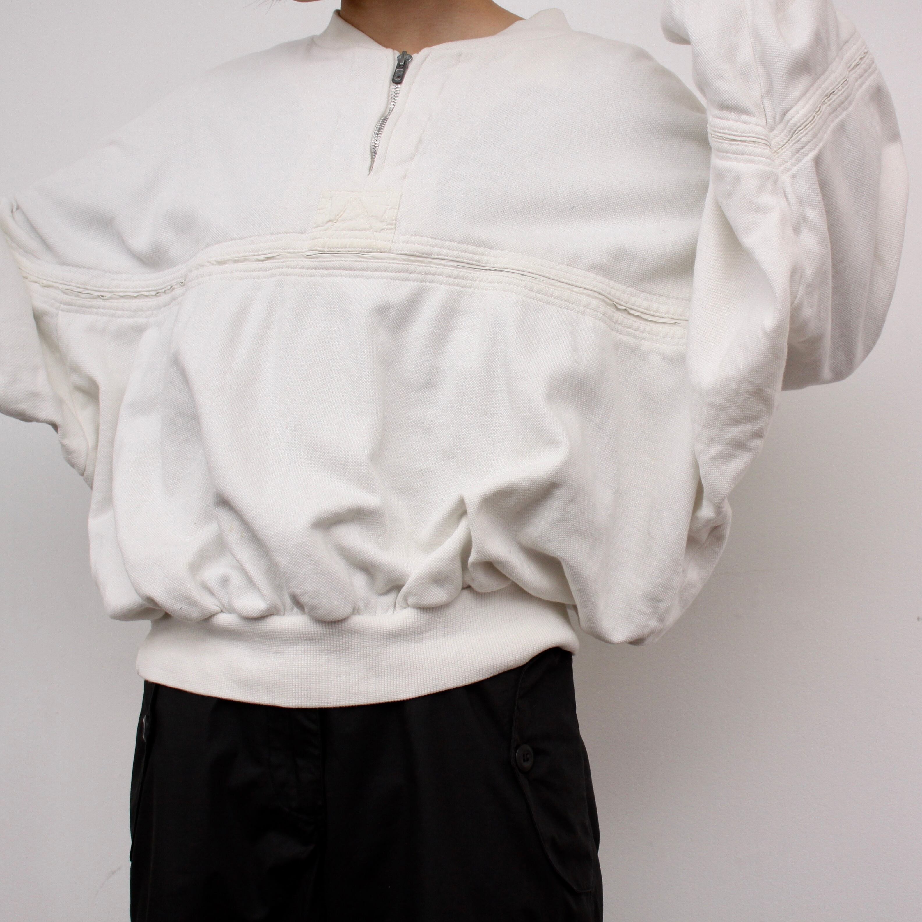 0076. 1980's French design cotton pullover ホワイト プルオーバー 鹿の子 スウェット ミリタリーデザイン 80s 80年代 euro vintage レディース古着