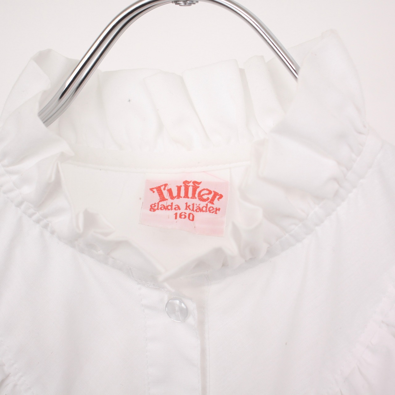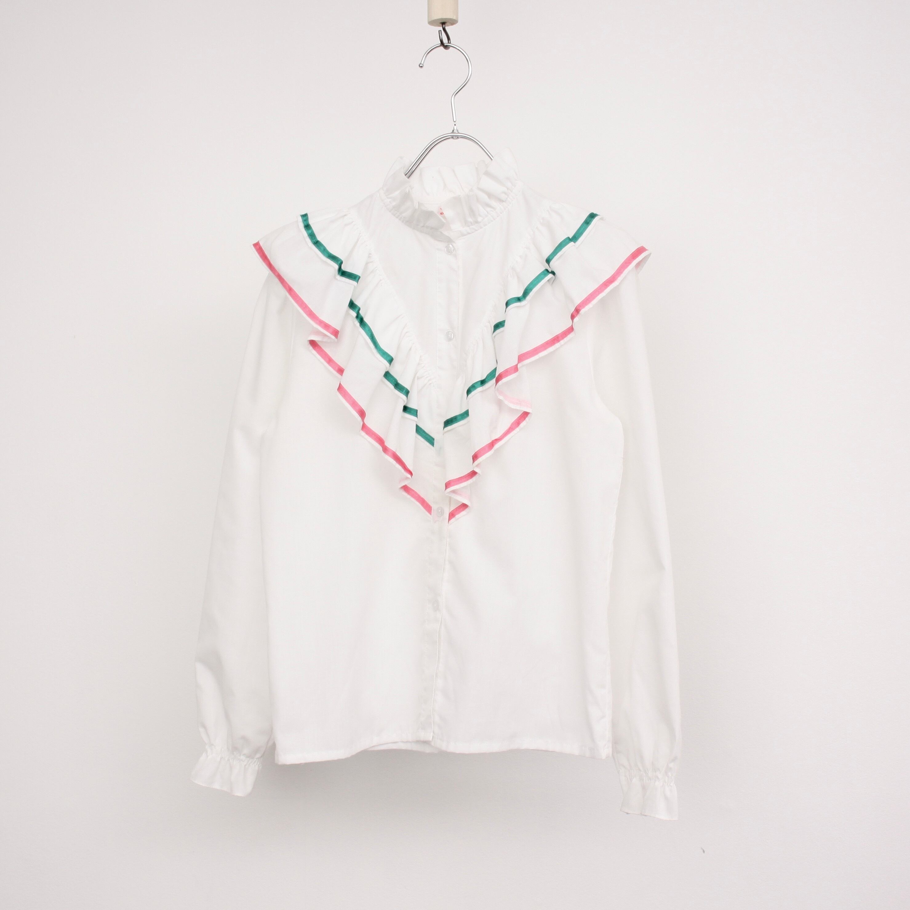 0077. euro vintage blouse ribbon design ホワイトブラウス リボン フリルデザイン レディース古着