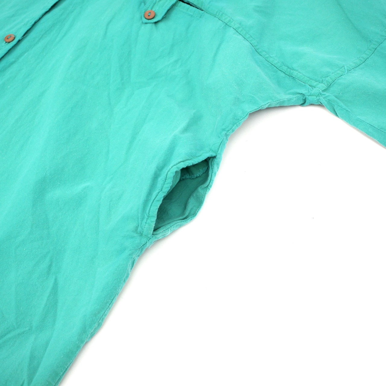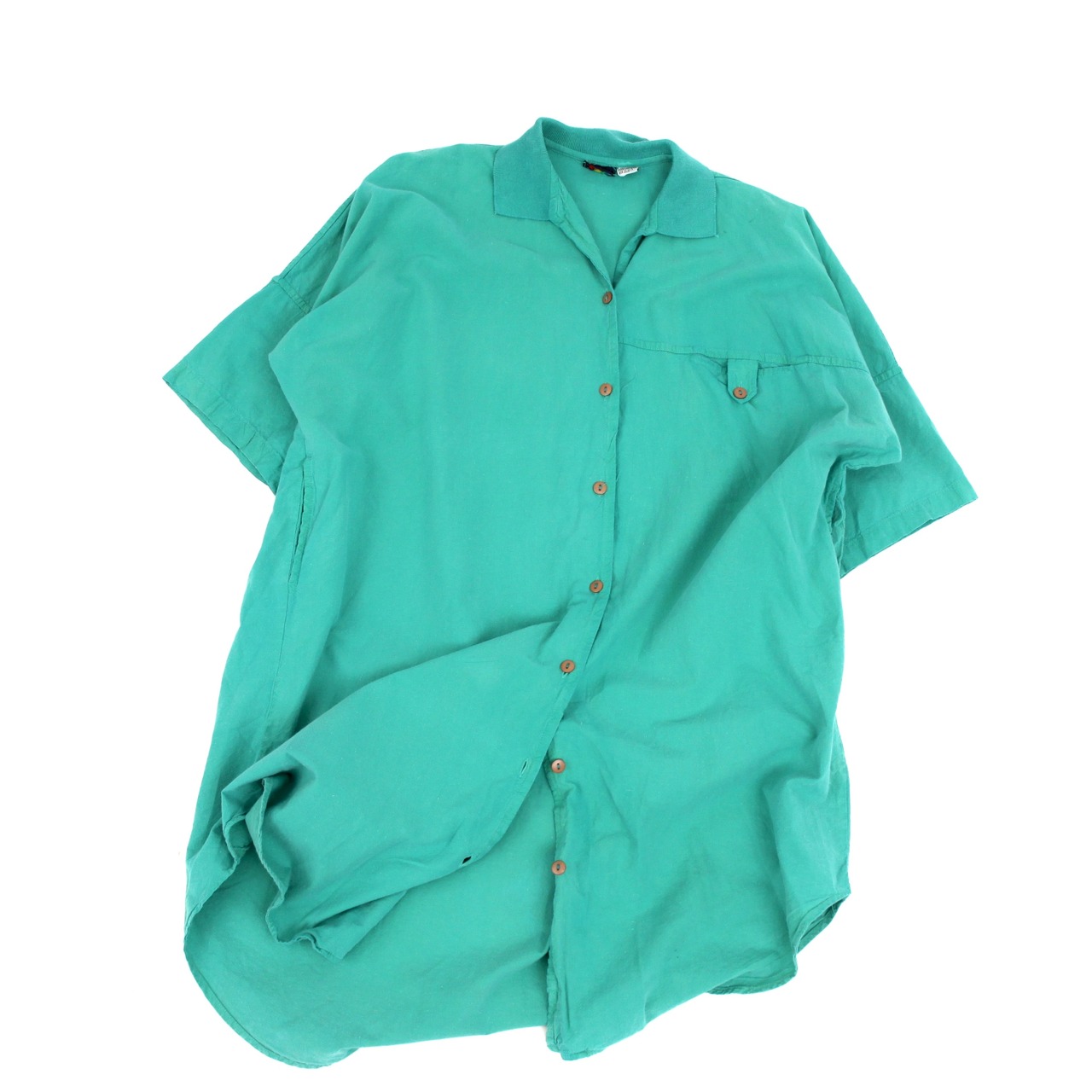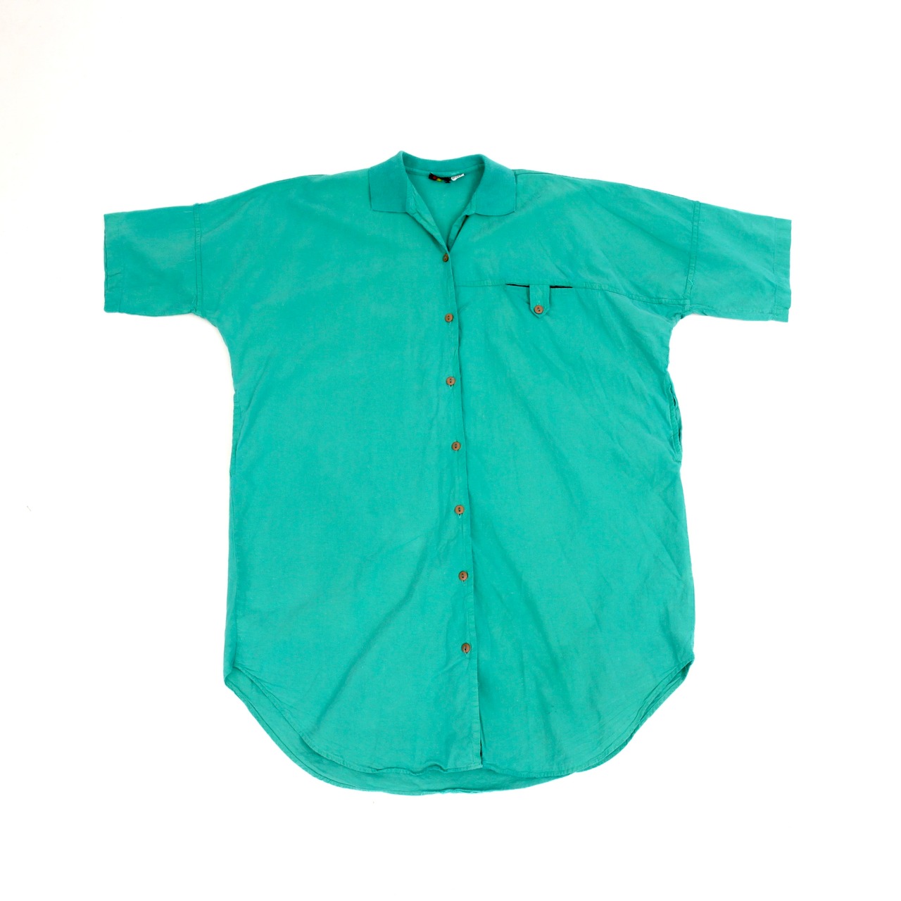 0096. vintage green long shirt グリーン ロングシャツ ワンピース vintage レディース古着