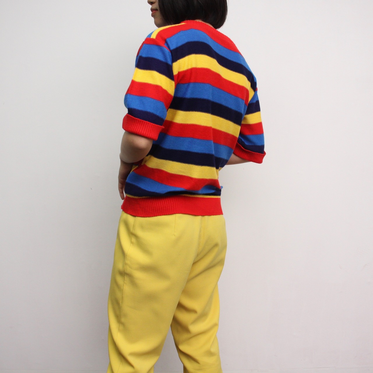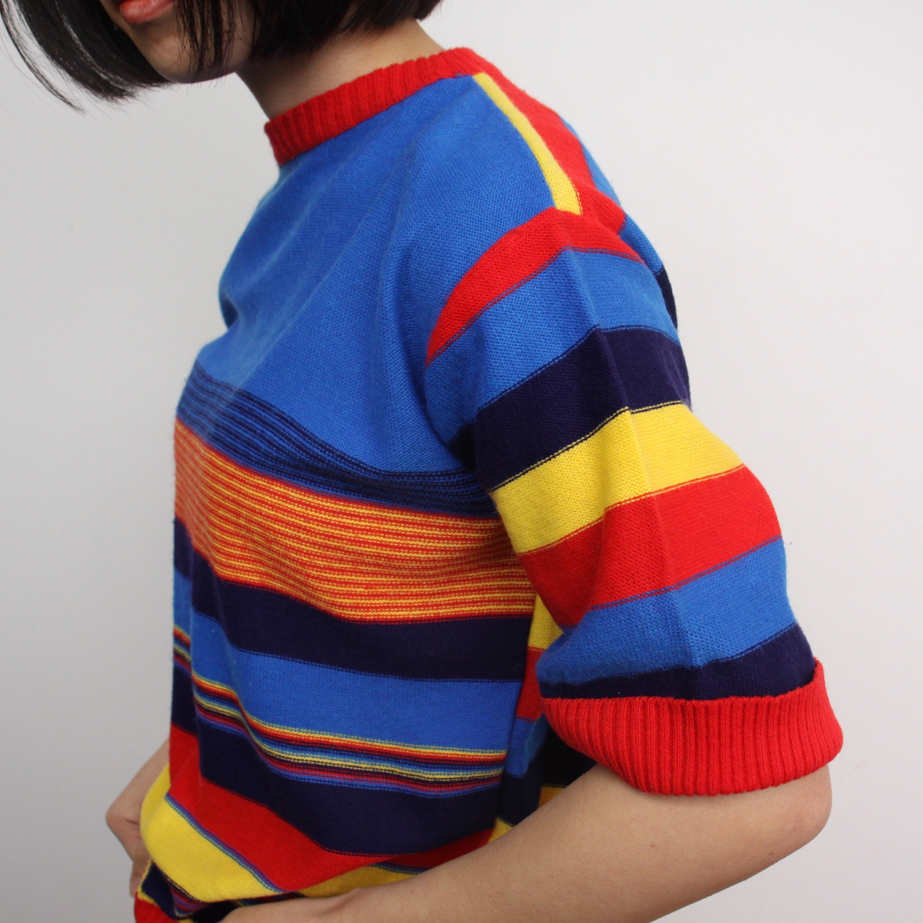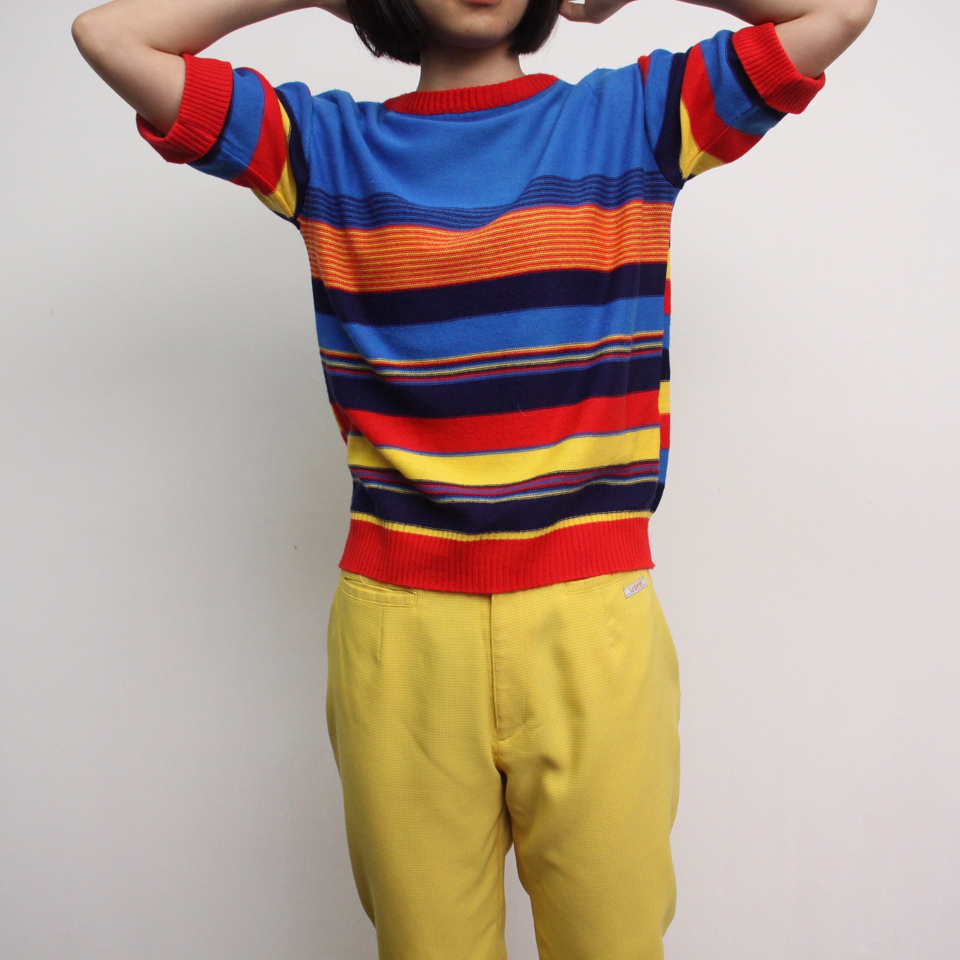 0119. 1970's knit tee マルチストライプ 半袖ニット アクリルニット 70s 70年代 euro vintage レディース ユーロ古着