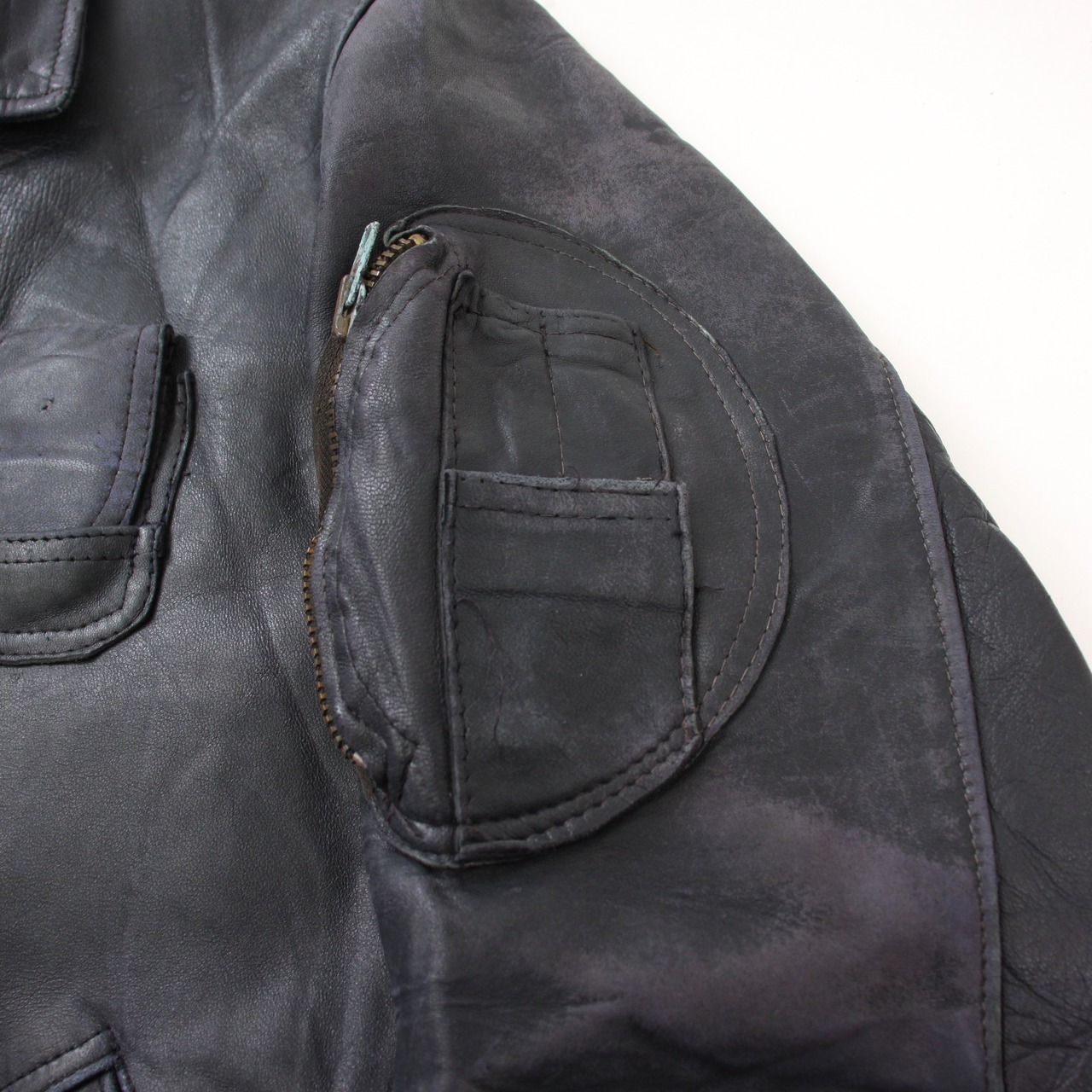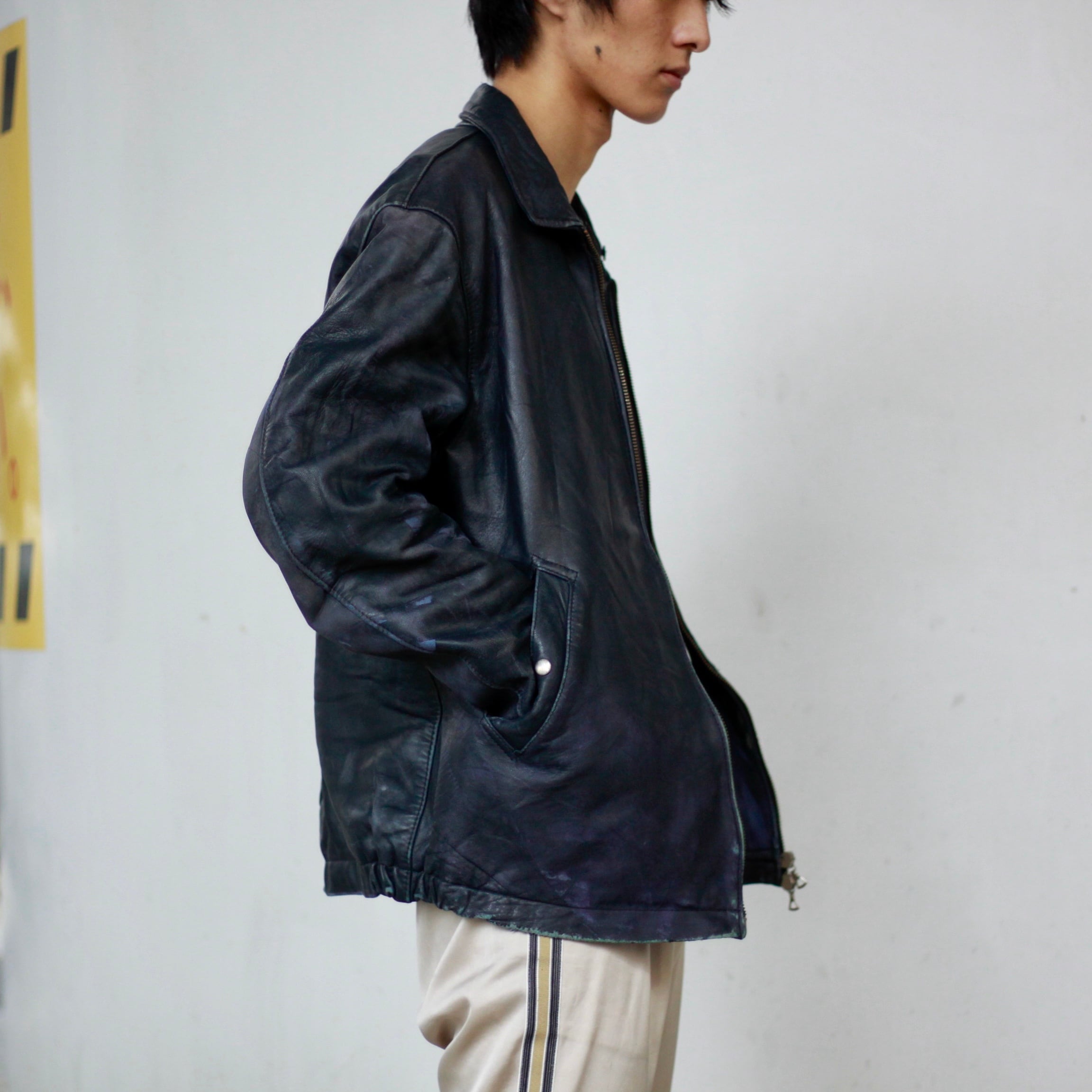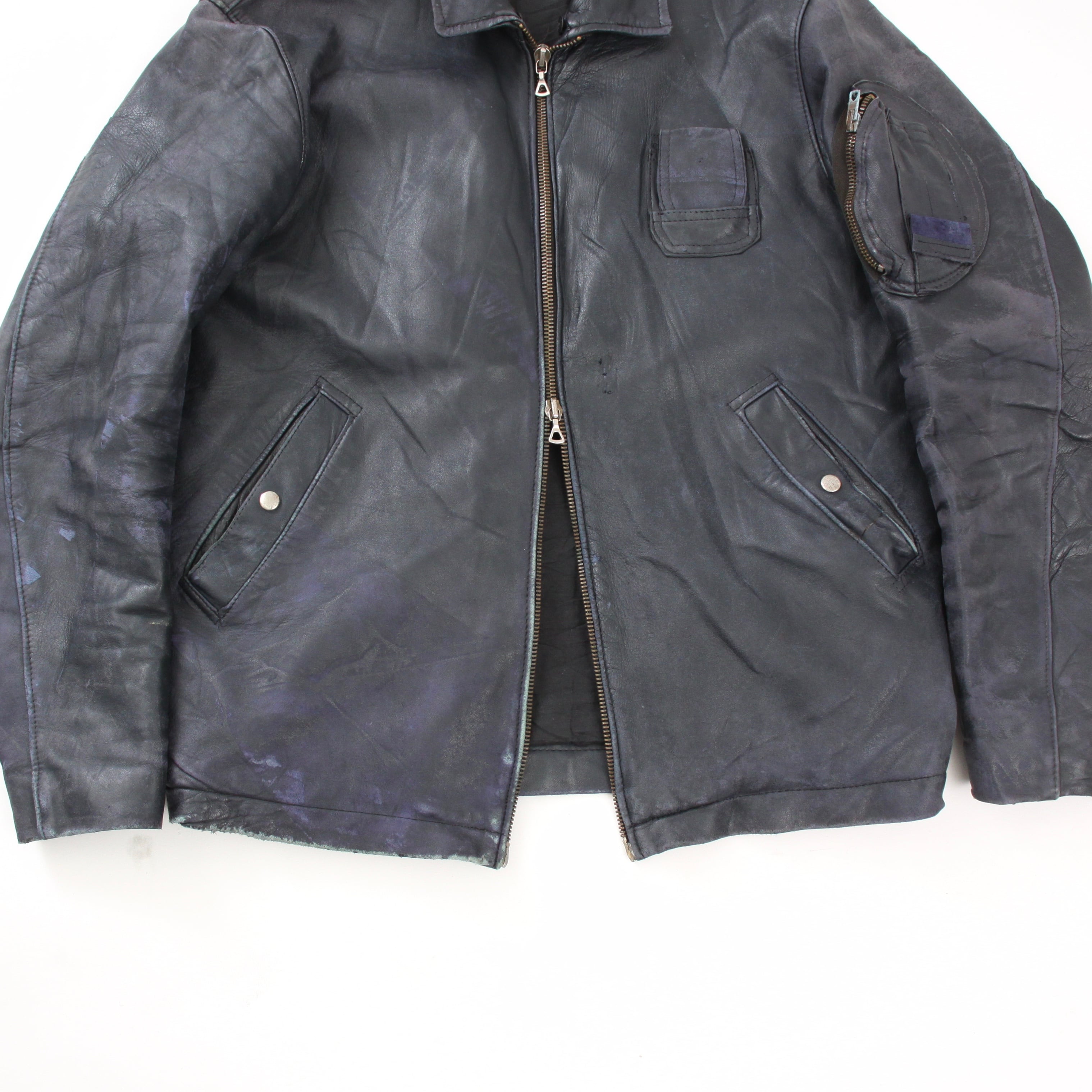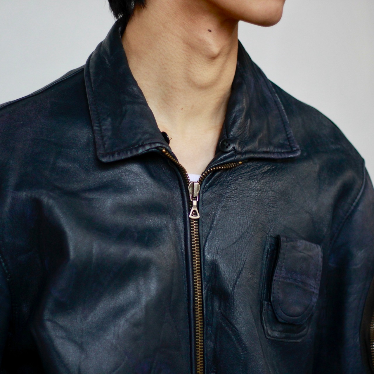 0129. 1980's French air force leather jacket ネイビー レザー フライトジャケット フレンチミリタリー フランス軍 80s 80年代 euro vintage ユーロ古着