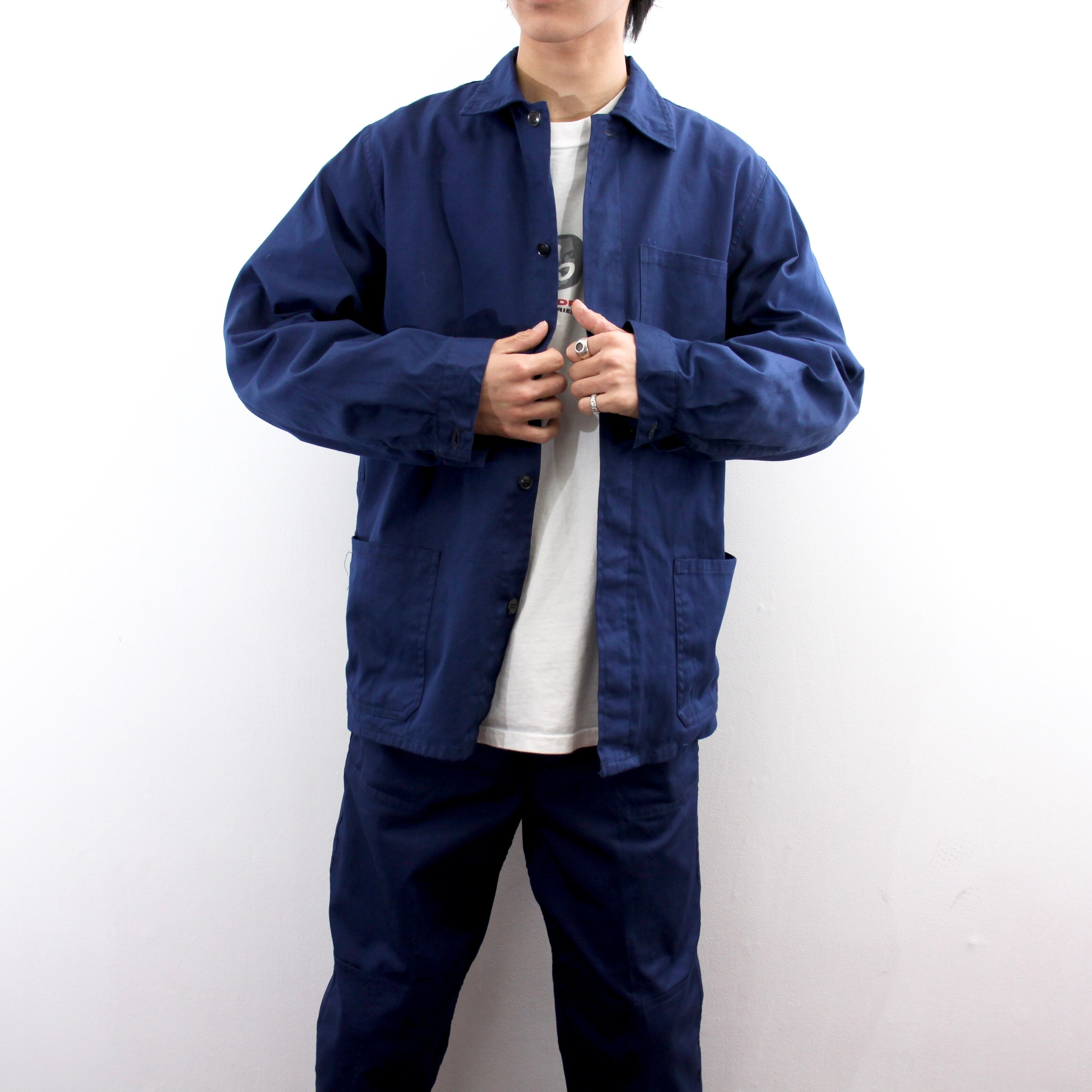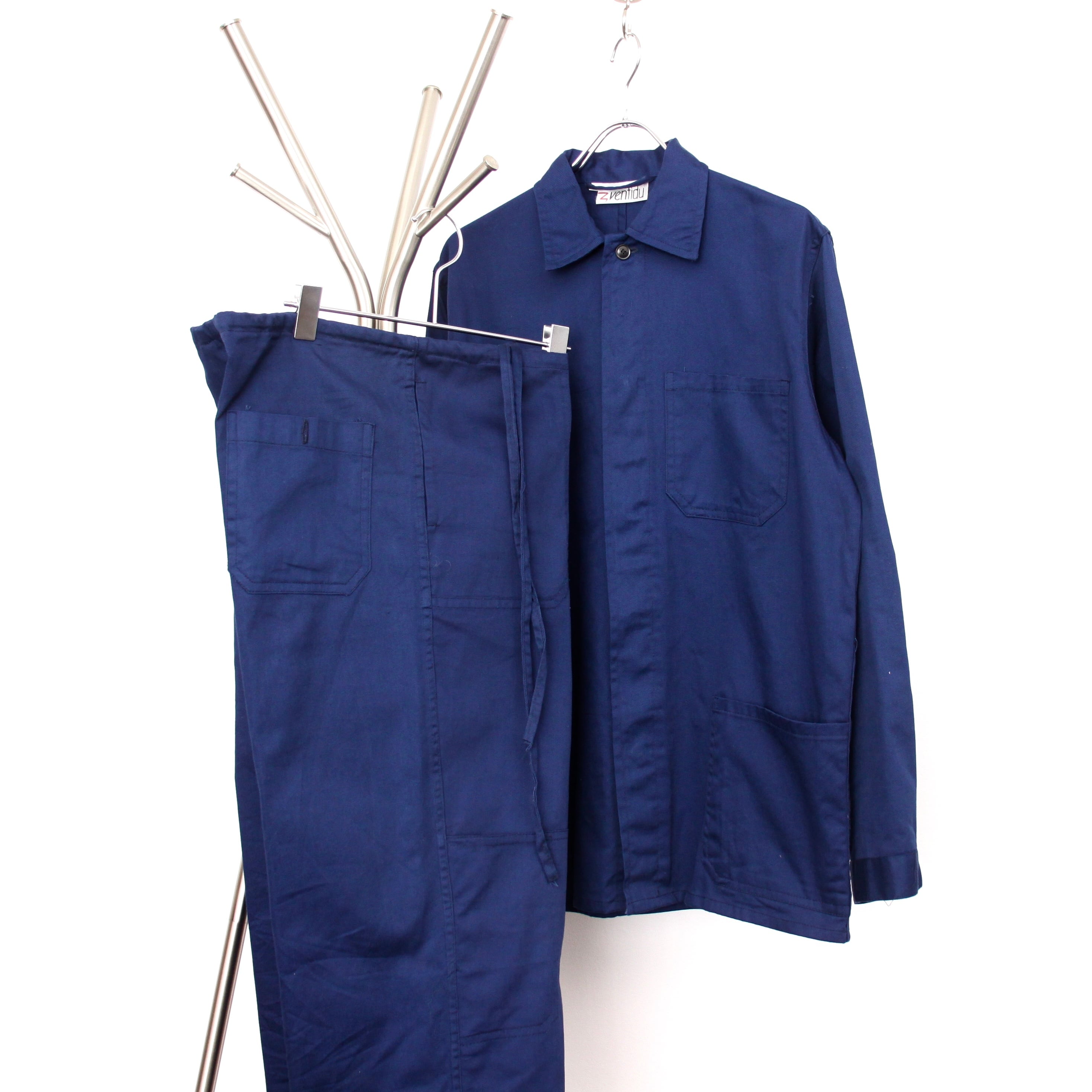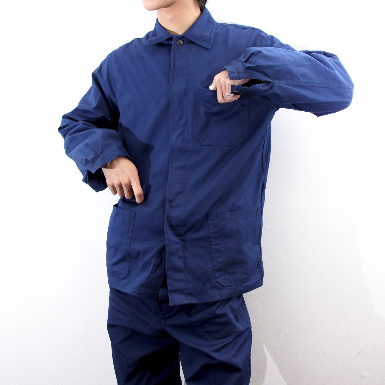 0130. Czech work uni setup ネイビー ユーロワーク セットアップ ワークジャケット イージーパンツ 古着