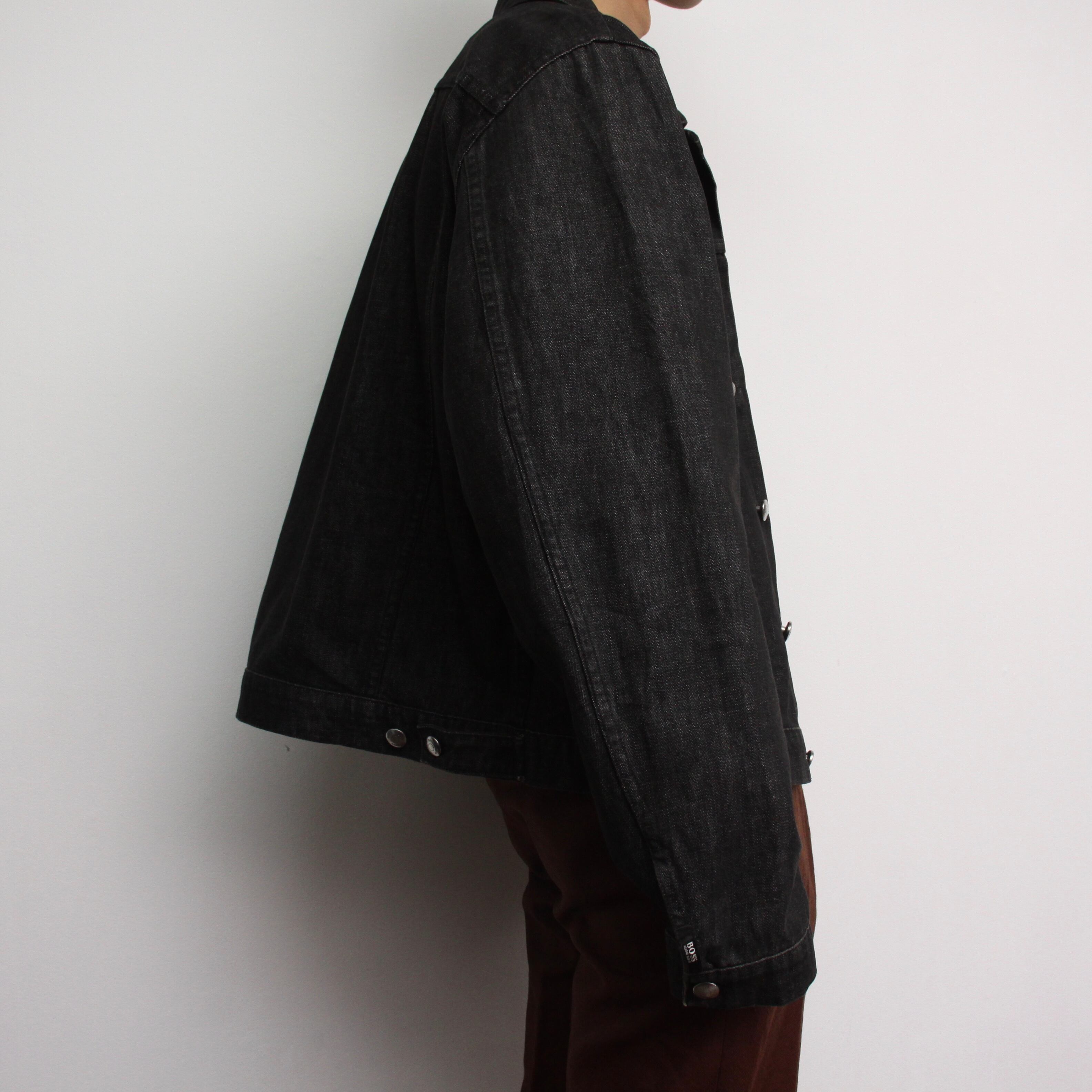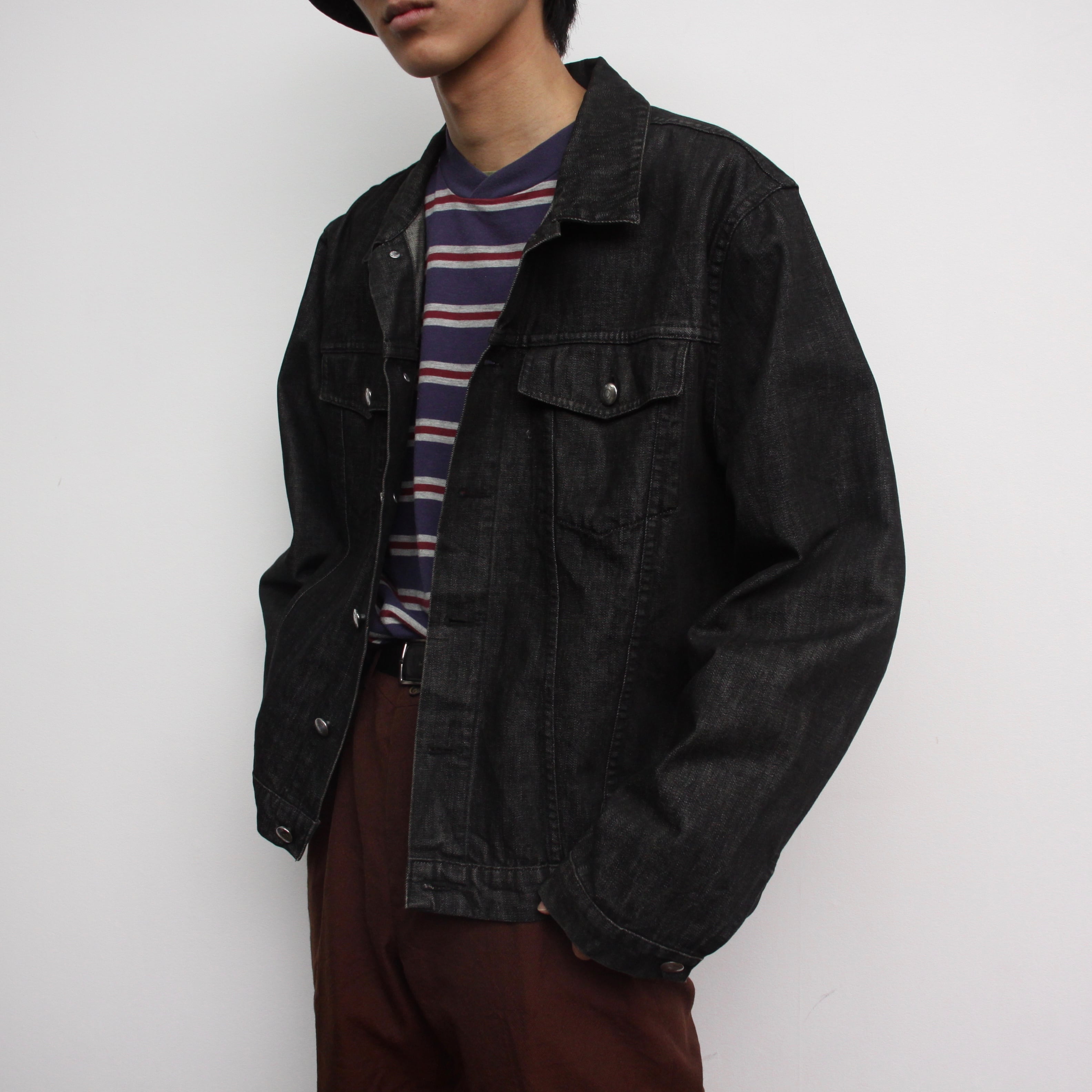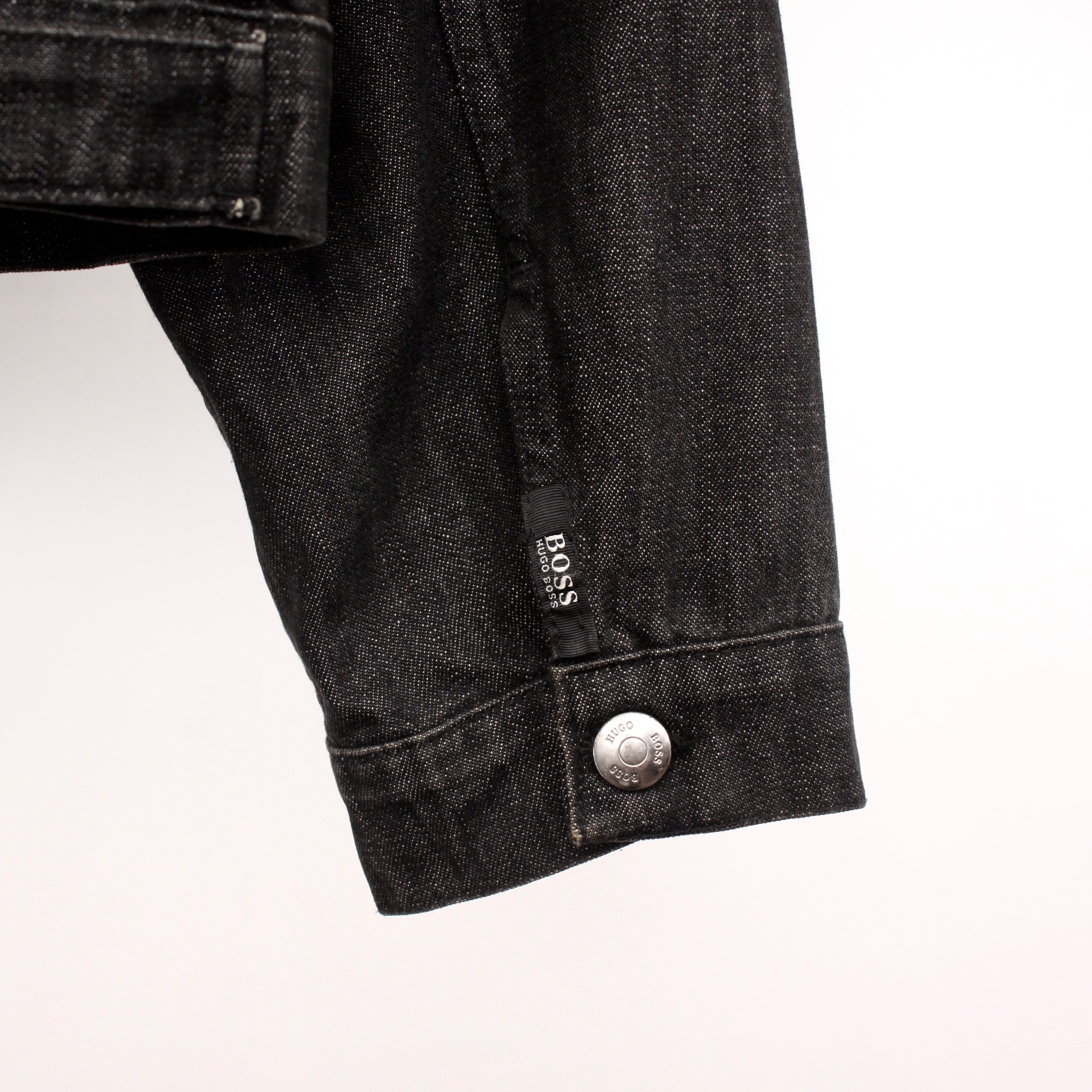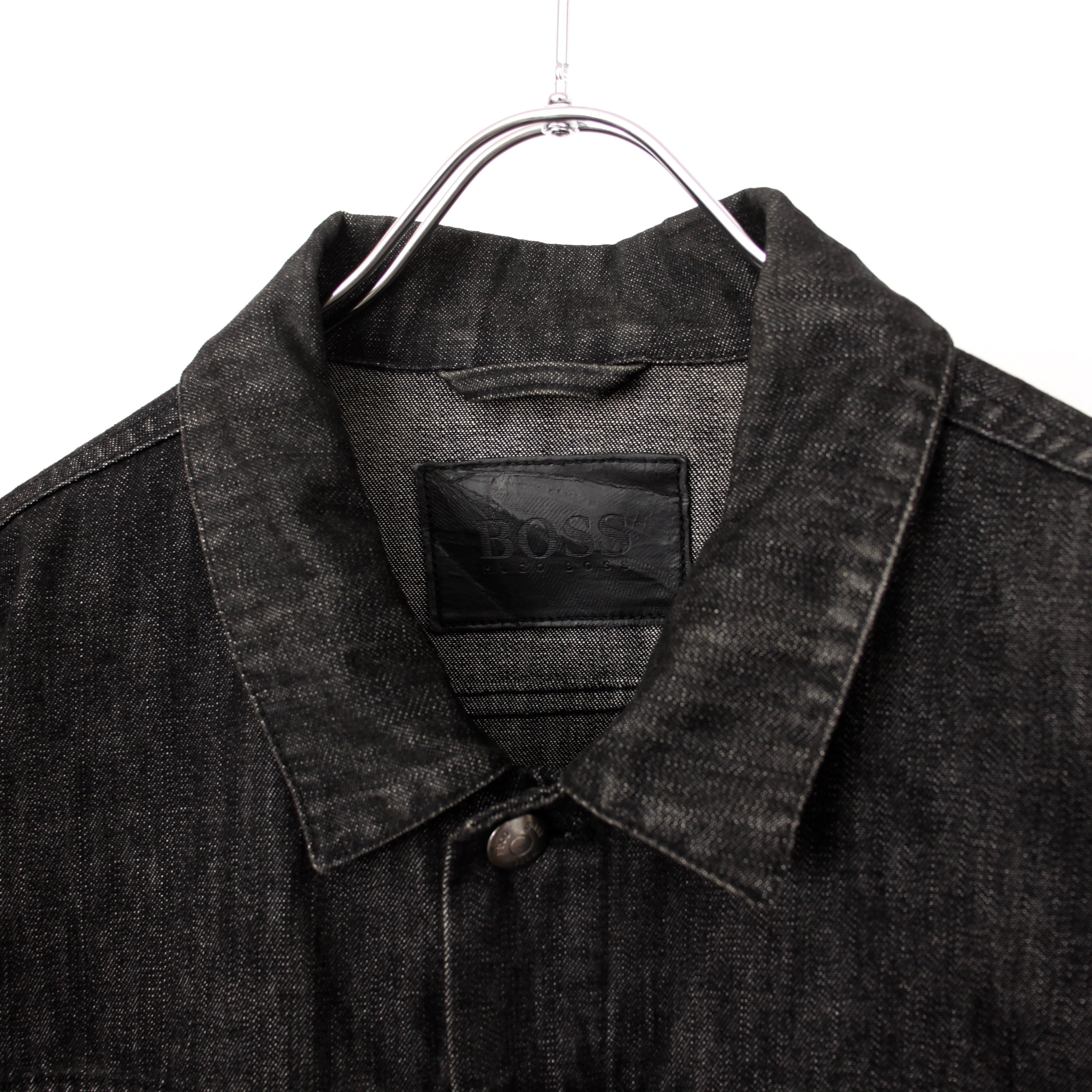 0137. HUGO BOSS black denim tracker jacket ブラックデニム トラッカージャケット Gジャン ITALY製 euro vintage ユーロ古着
