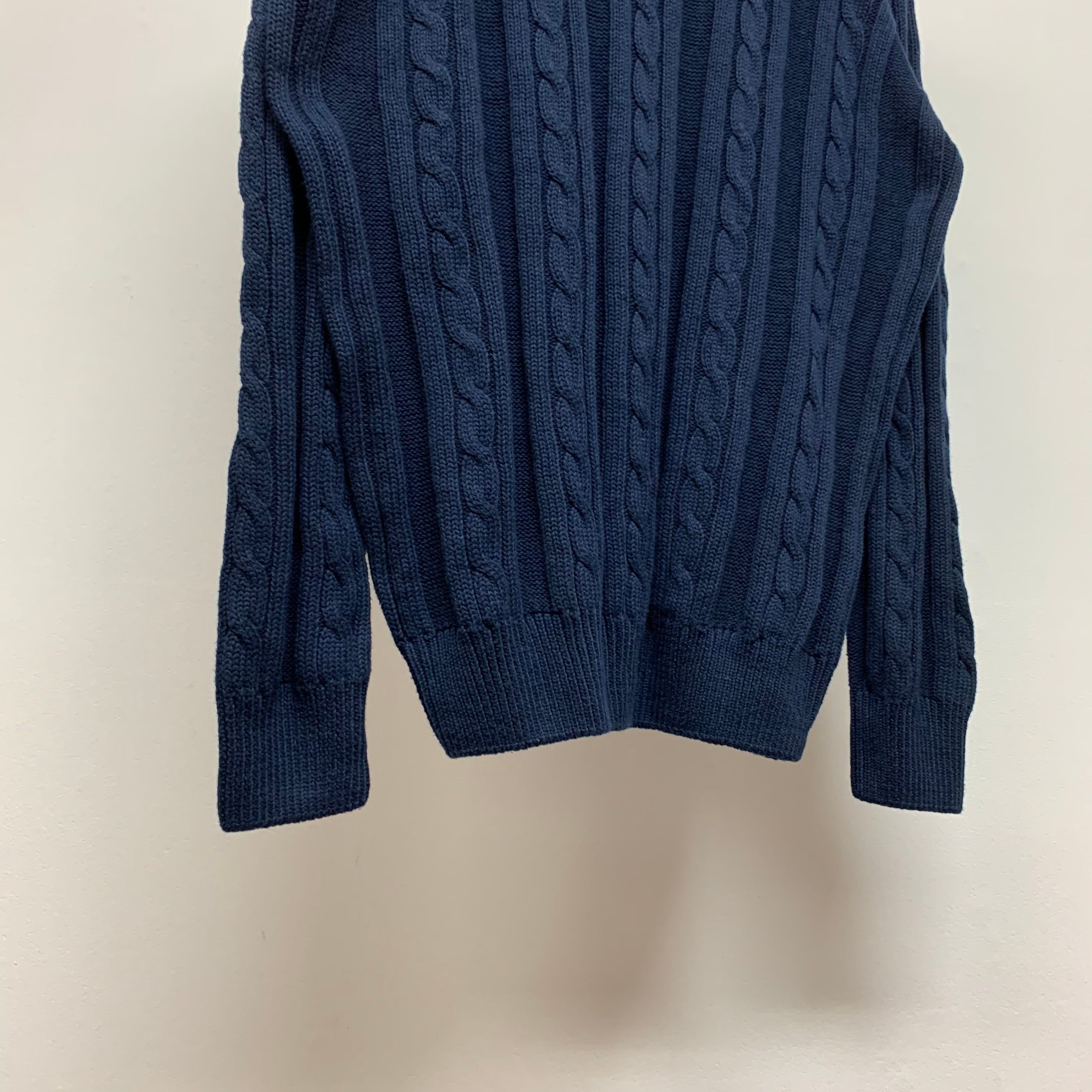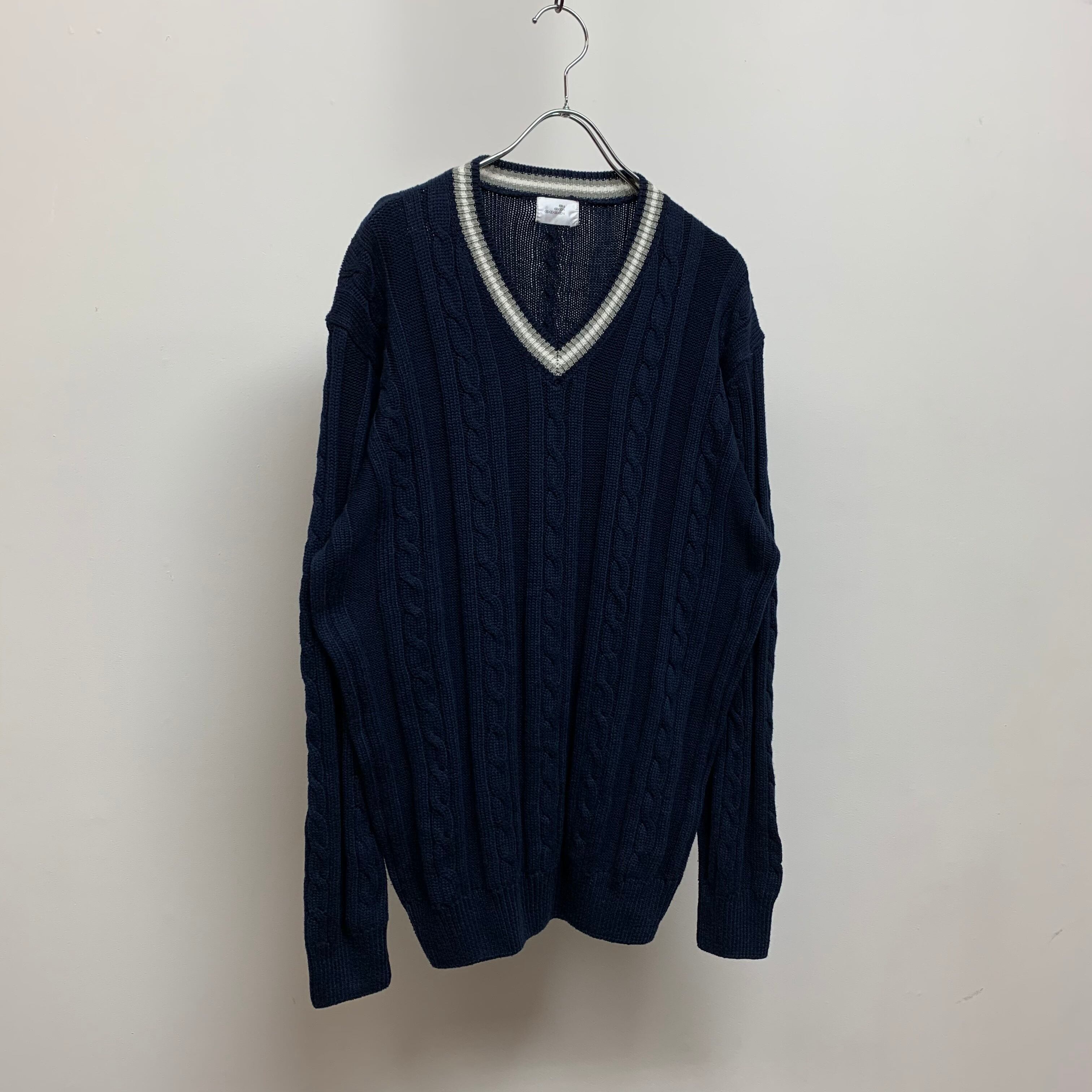 0146. solid color tilden sweater ネイビー Vネック チルデンセーター ケーブル コットンニット 古着