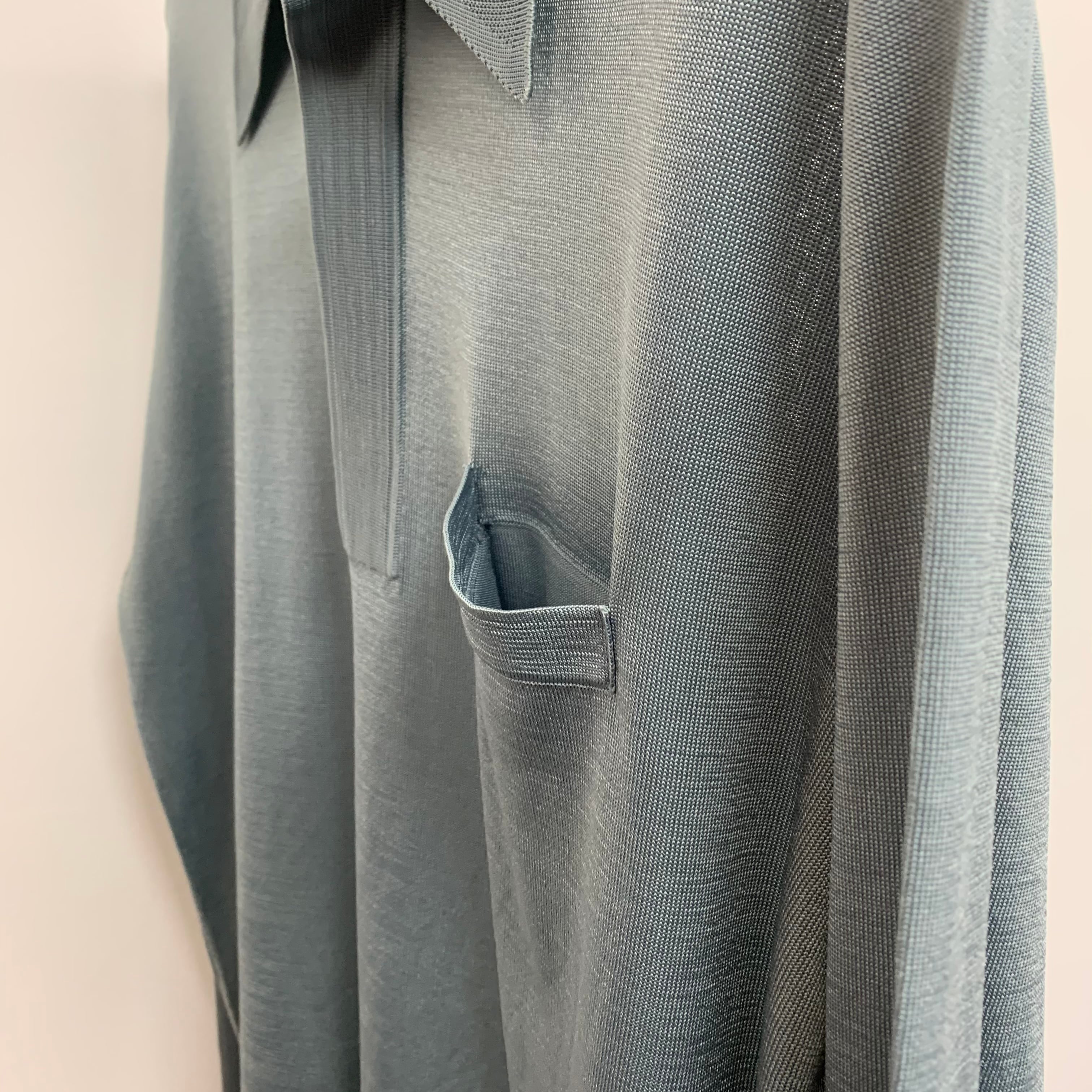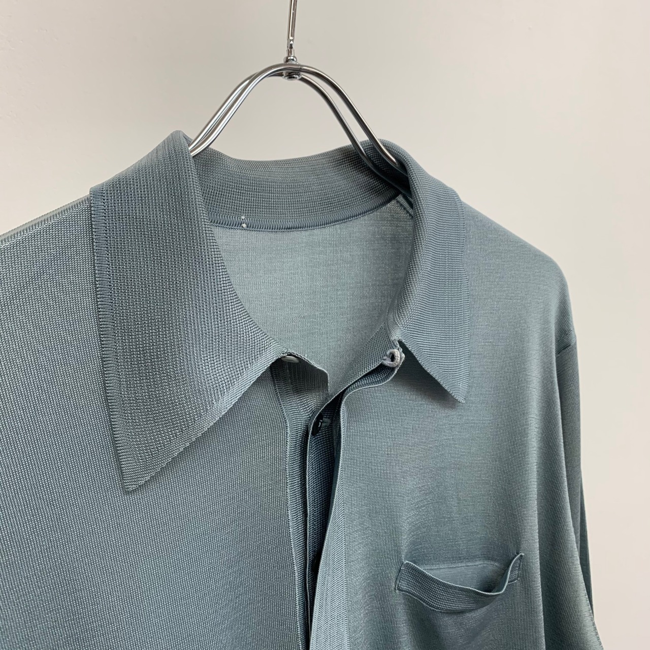 0142. 1970's euro l/s knit polo blue silver 70s 70年代 ニットポロ バンロン vintage ヴィンテージ ユーロ古着 ヨーロッパ古着 古着