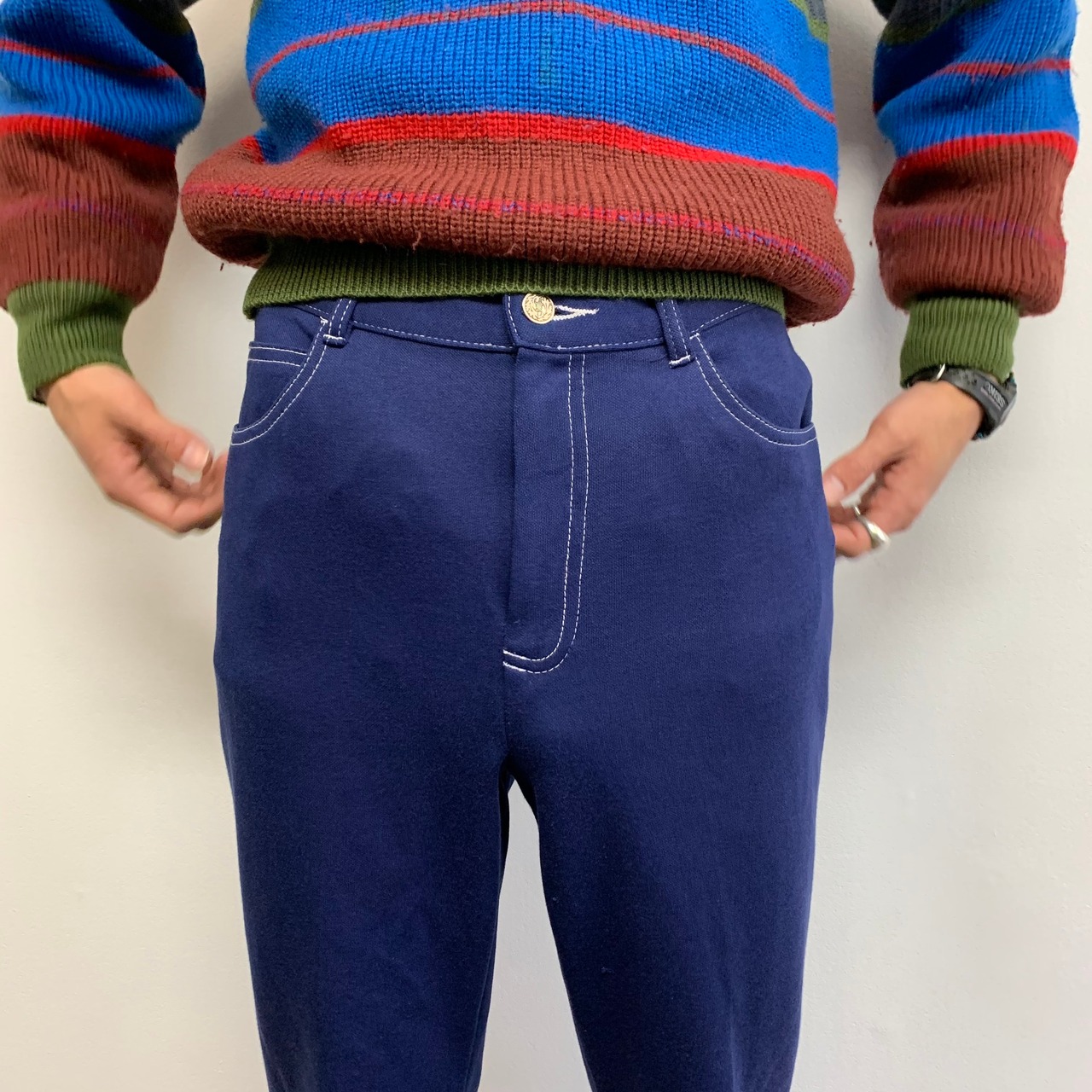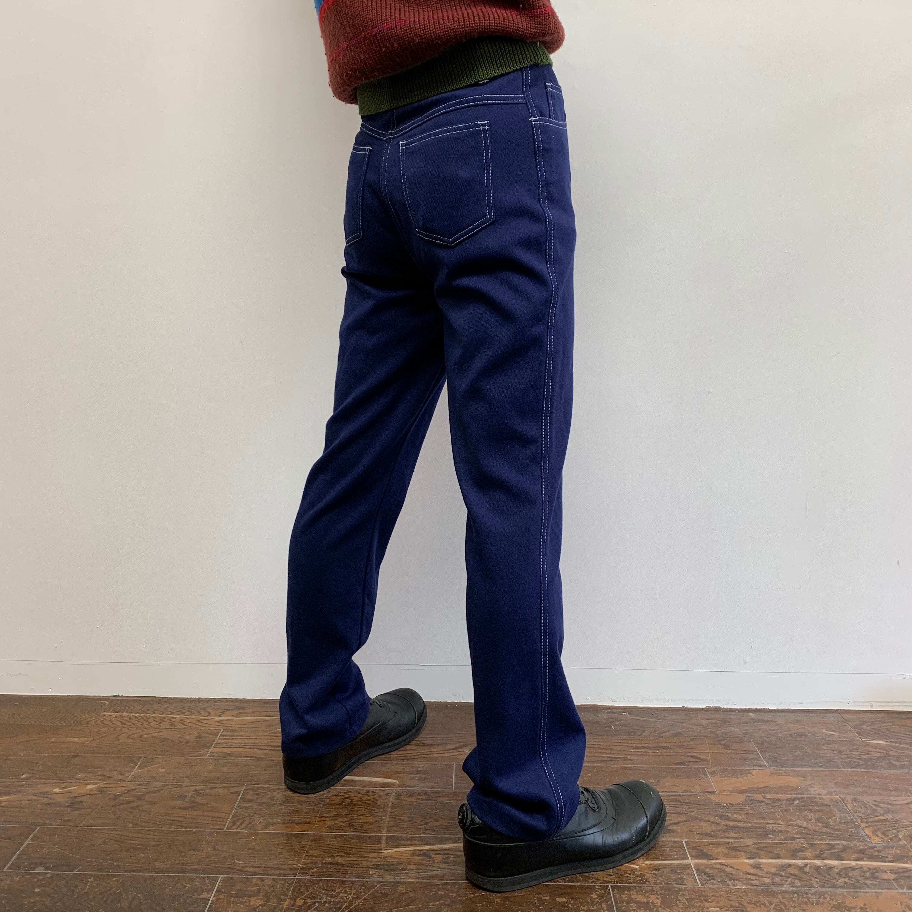 0163. 1970's sears knit jersey pants ネイビー ポリスラックス パンツ シアーズ 70s 70年代 vintage 古着