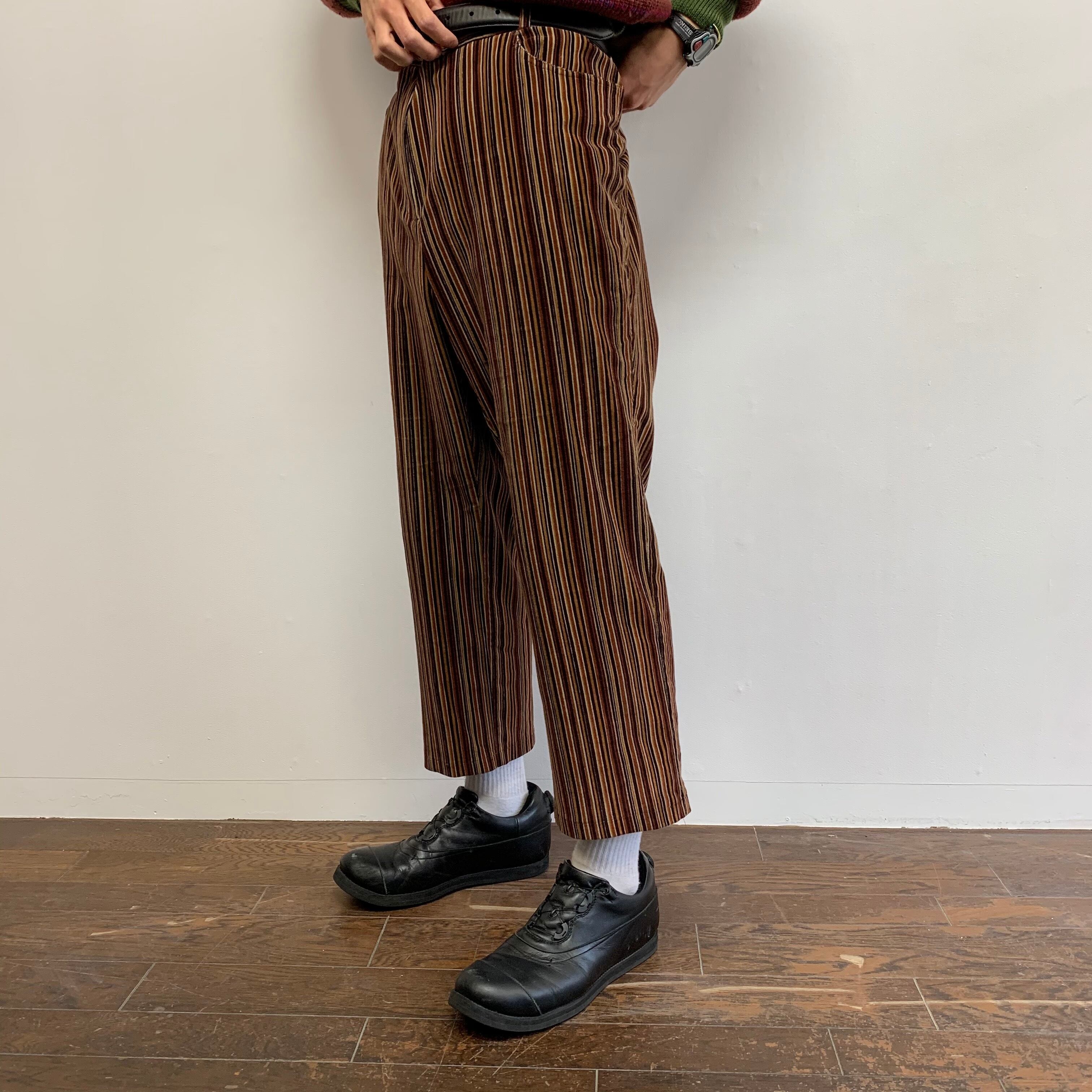 0164. stripe cords easy slacks ストライプ イージーパンツ スラックス 古着