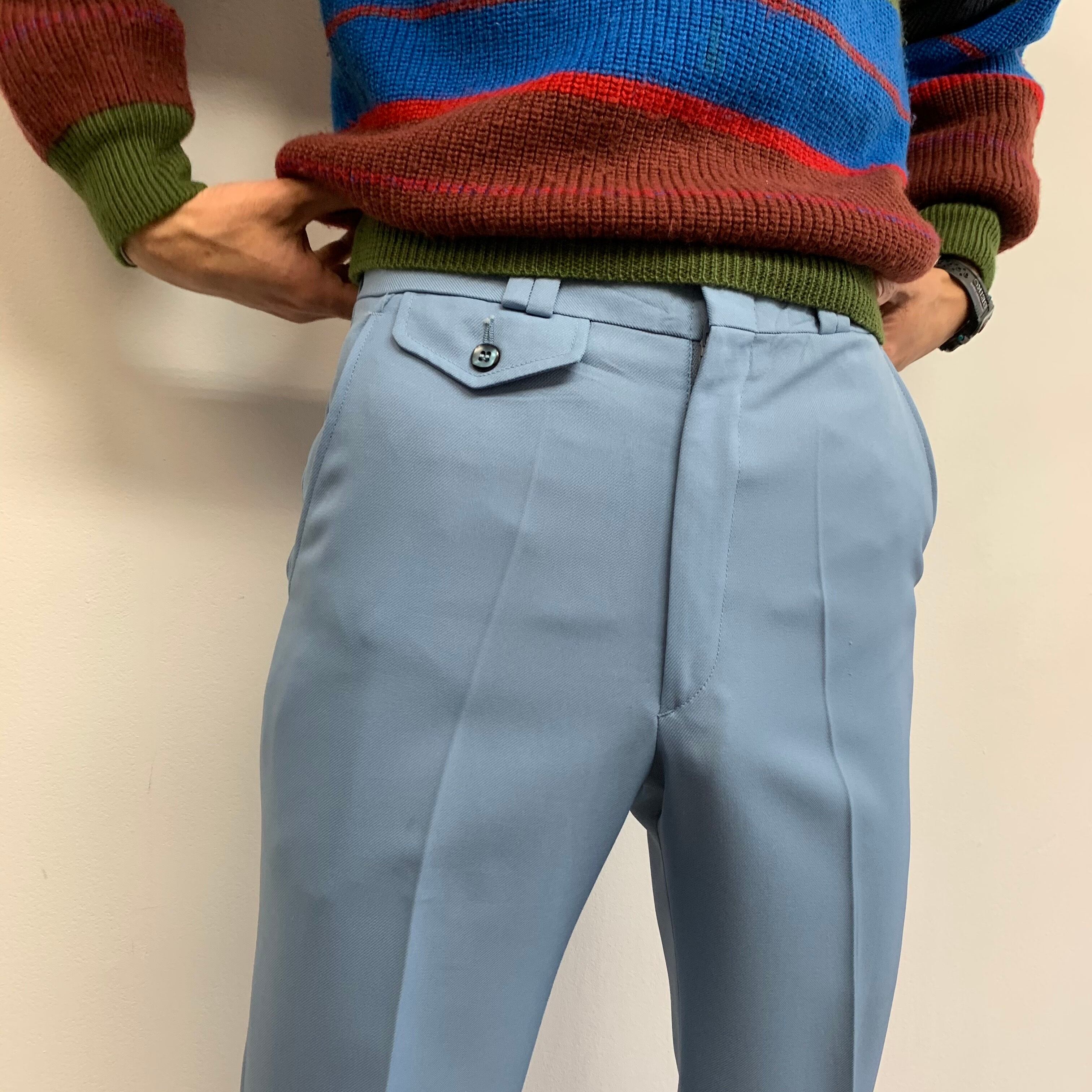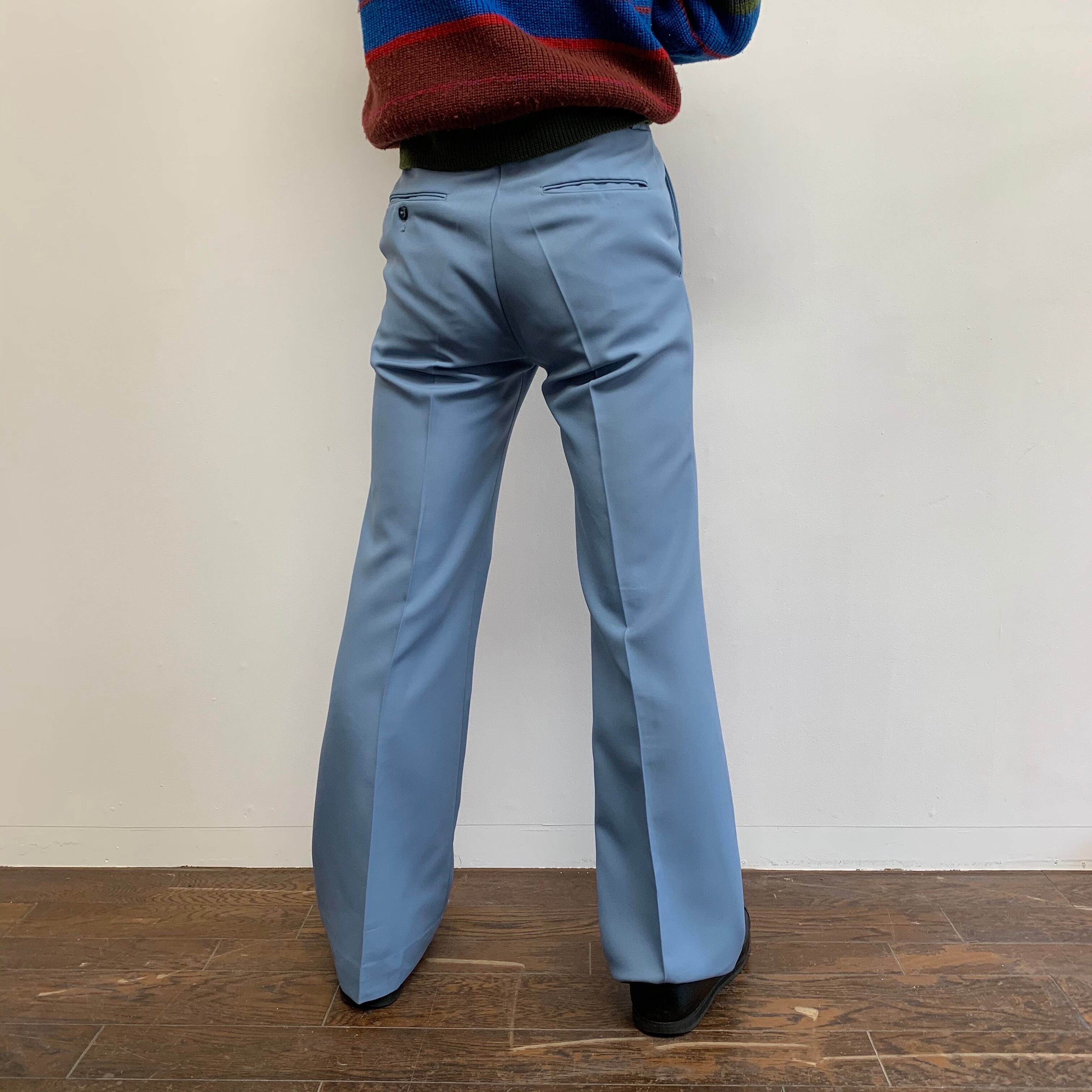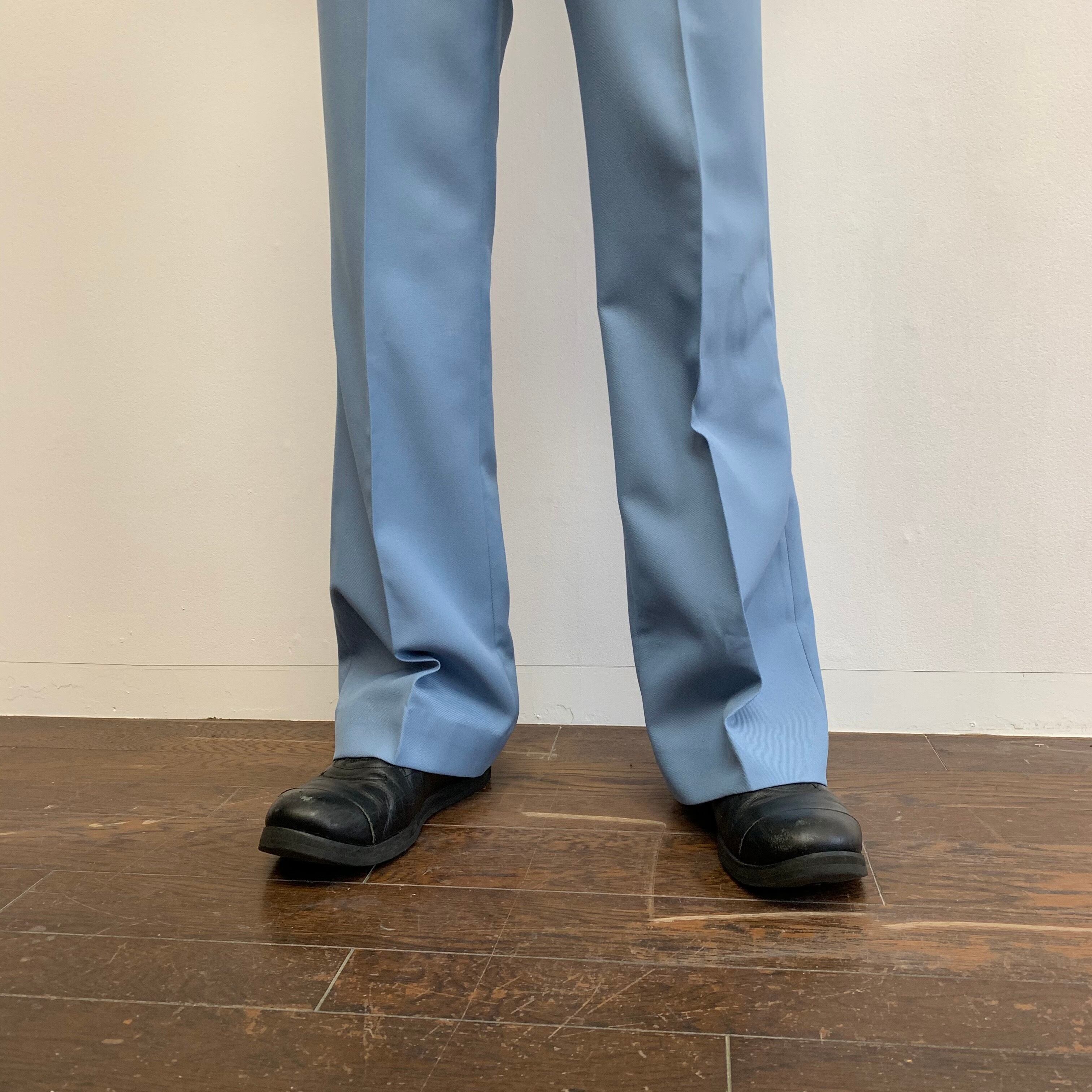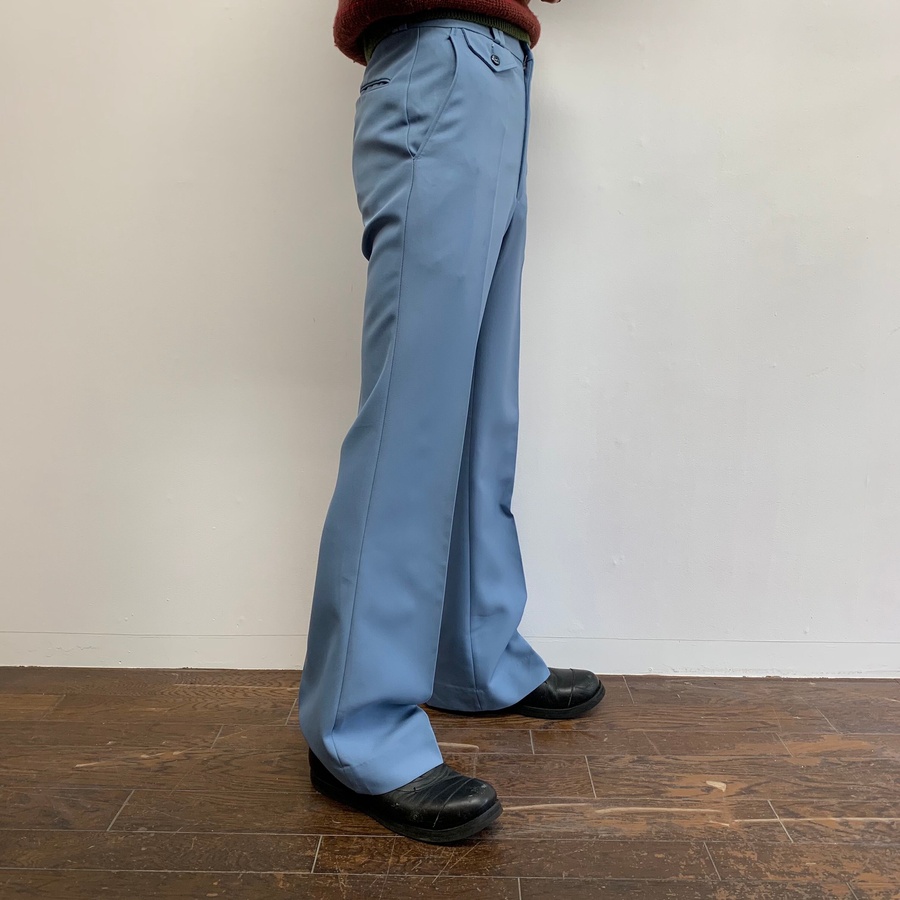 0165. 1970's poly slacks サックスブルー 水色 ポリスラックス パンツ 70s 70年代 vintage 古着