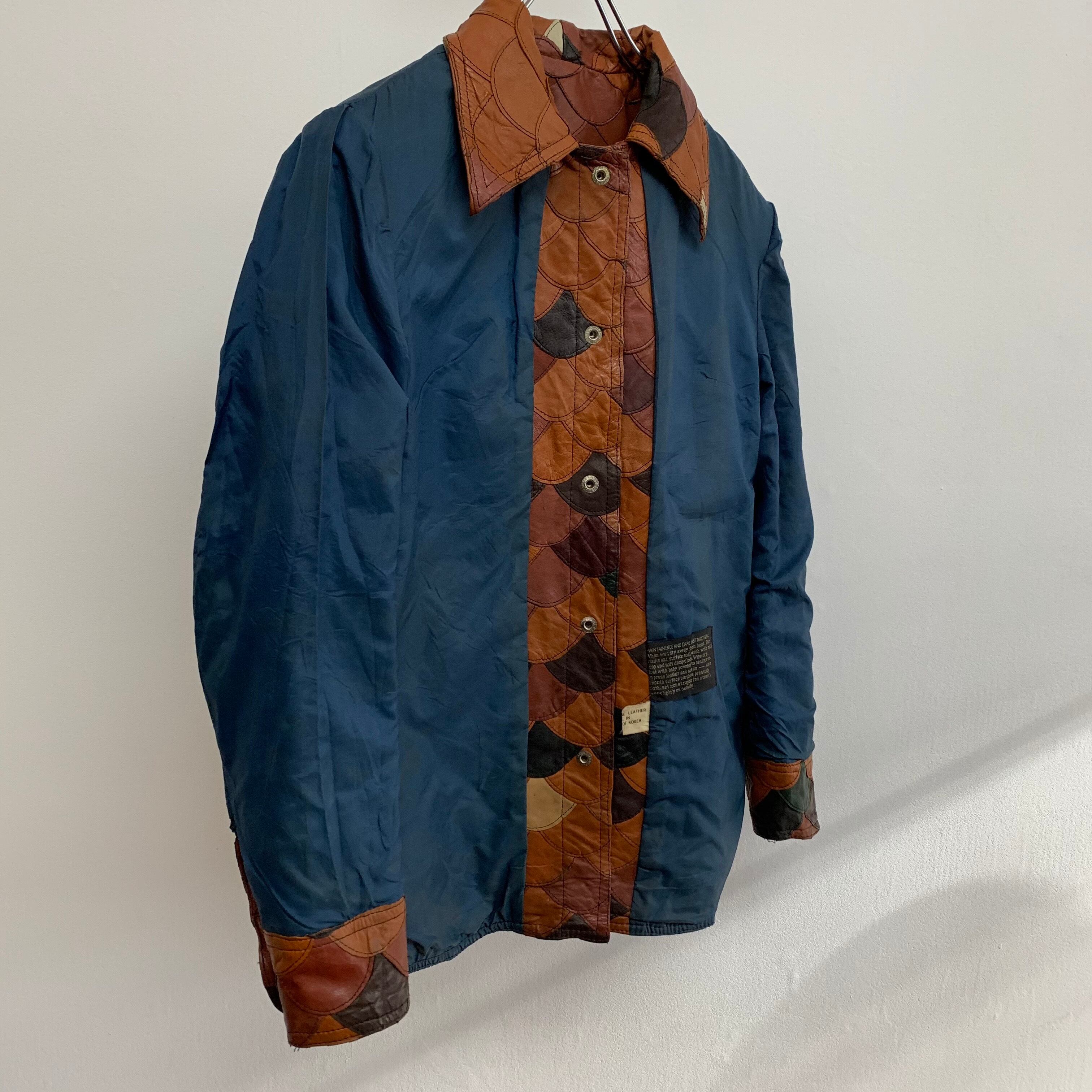0169. 1970's patchwork leather shirt ブラウン レザーシャツ ジャケット パッチワーク 70s 70年代 vintage 古着