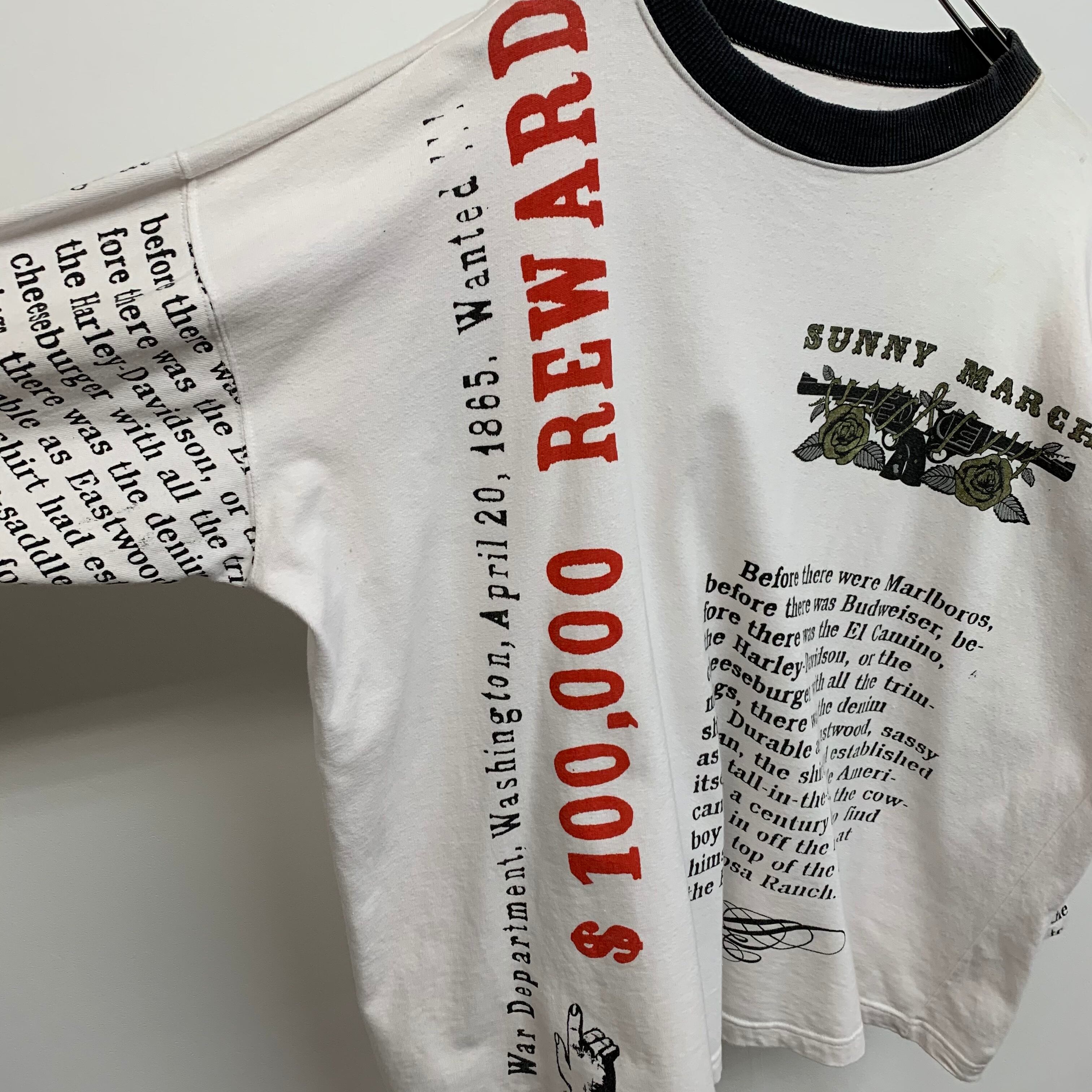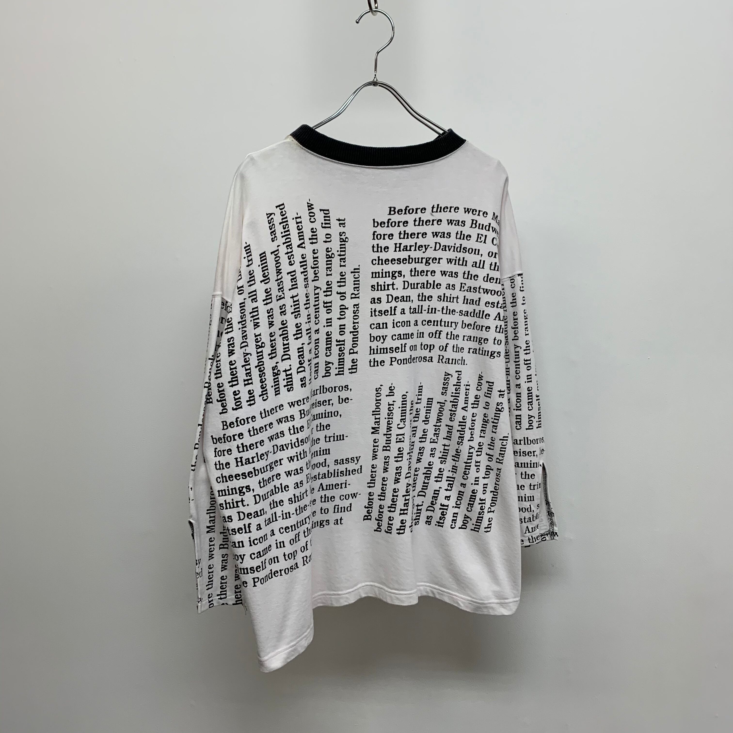0172. wanted print l/s shirt ホワイト 大判プリント 長袖Tシャツ ロンT vintage 古着
