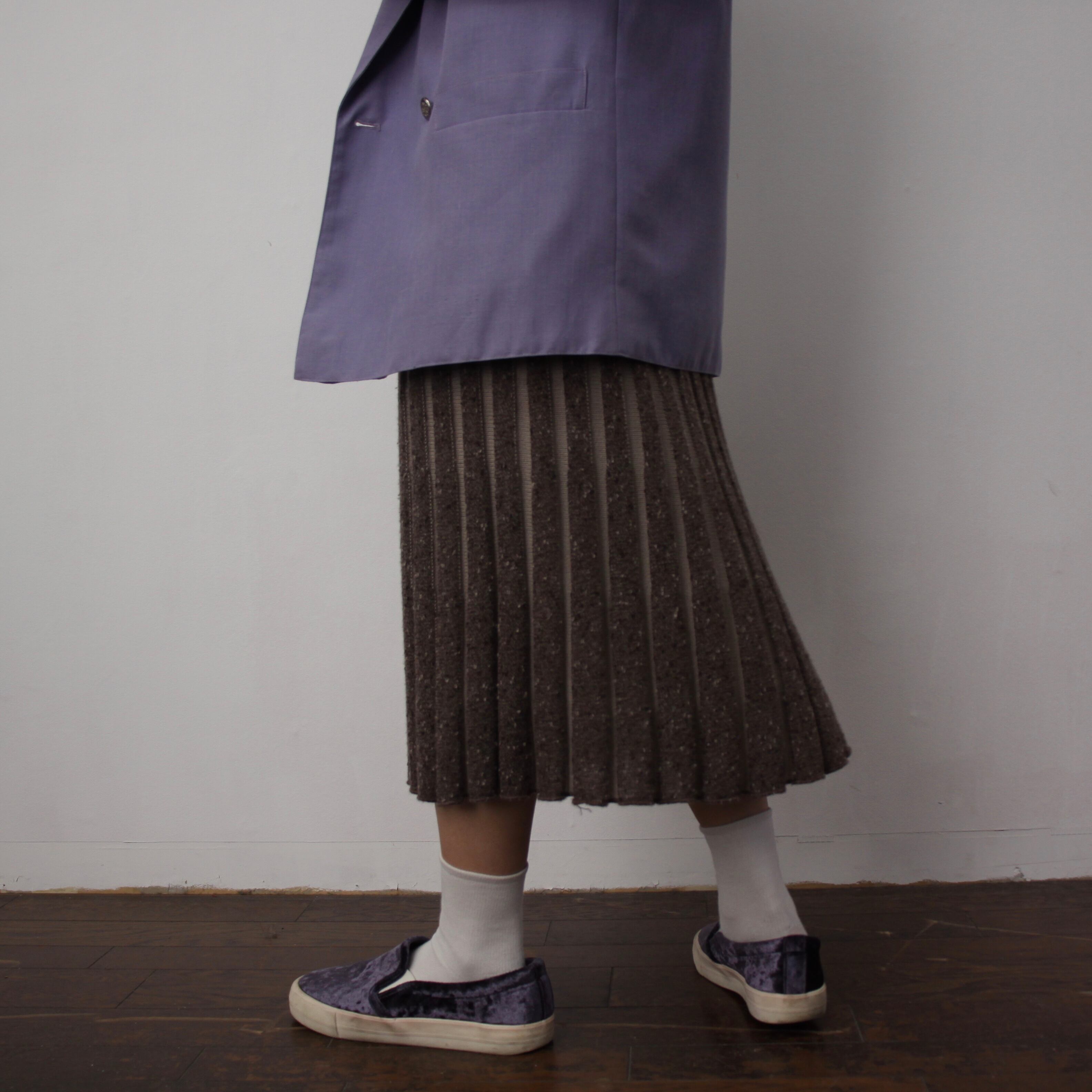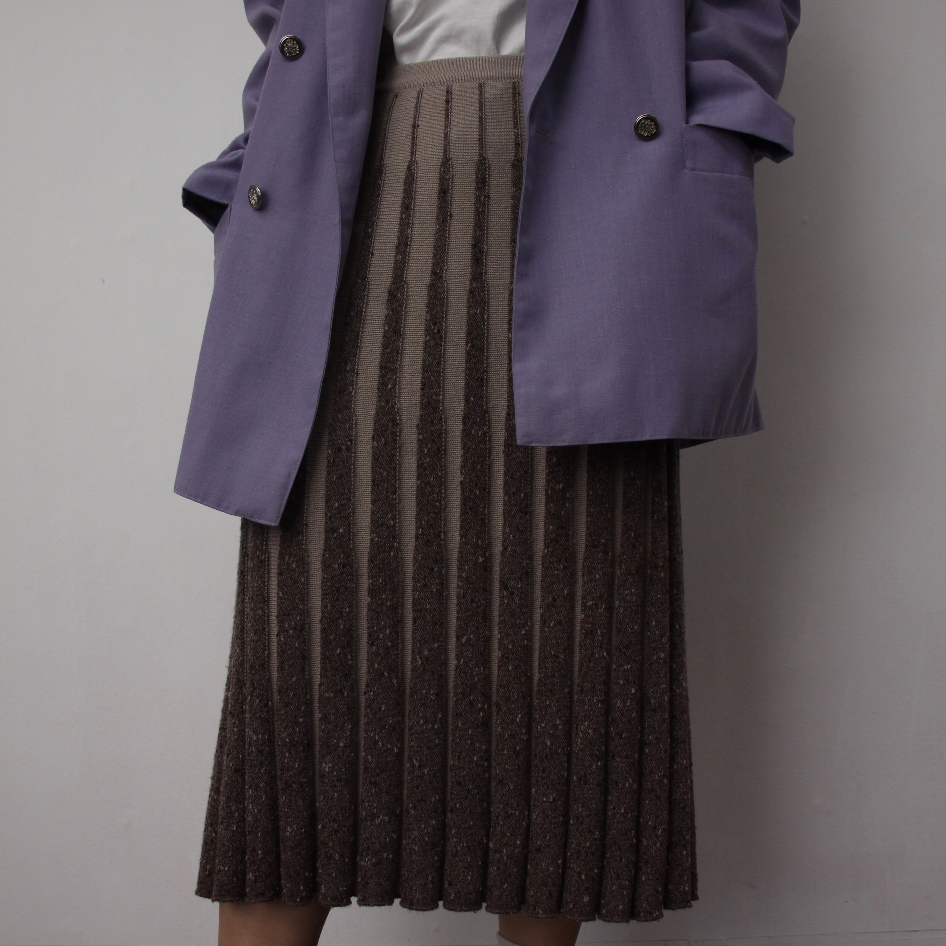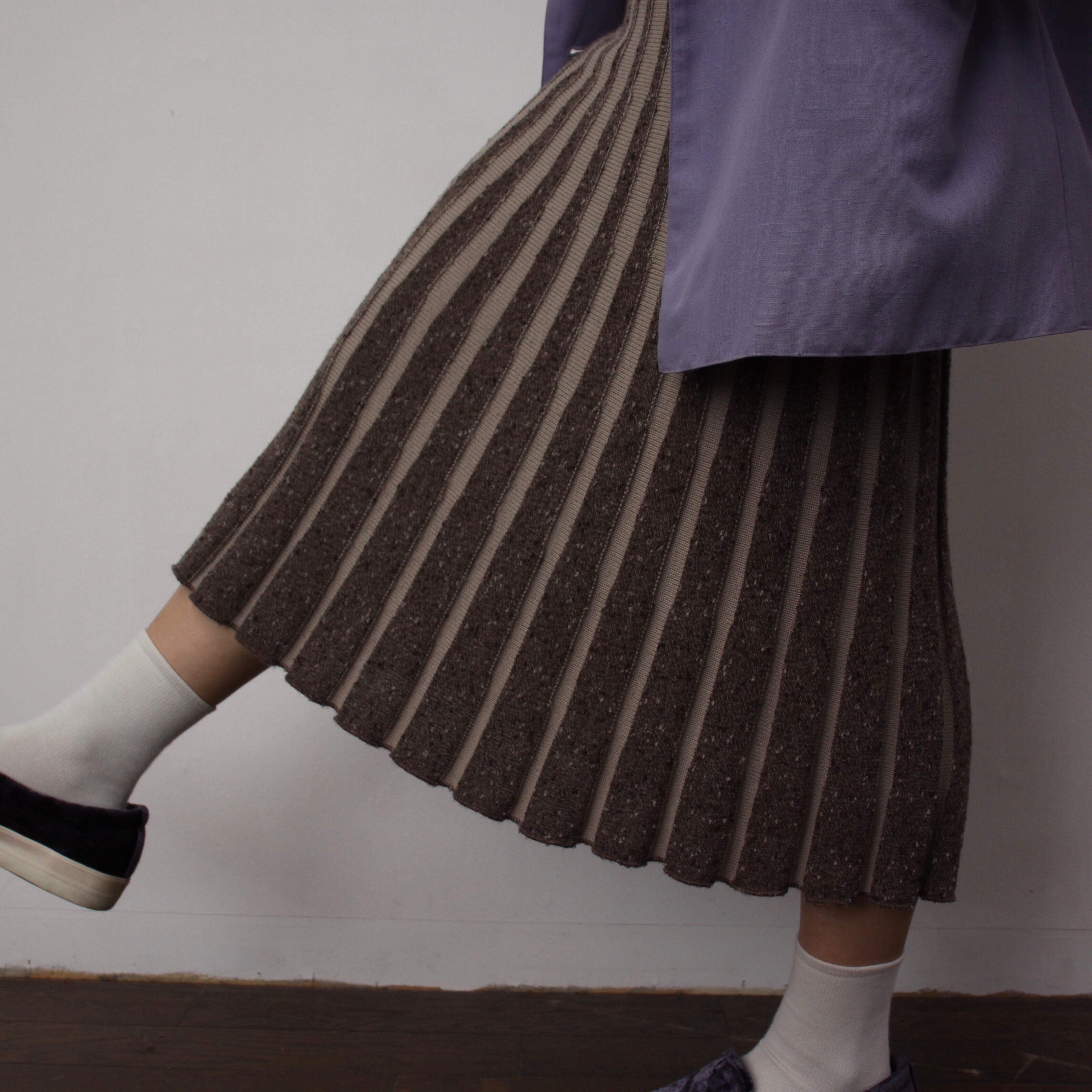 0190. euro 3D knitting pleats skirt ブラウン × ベージュ 3Dニット プリーツスカート vintage レディース ユーロ古着